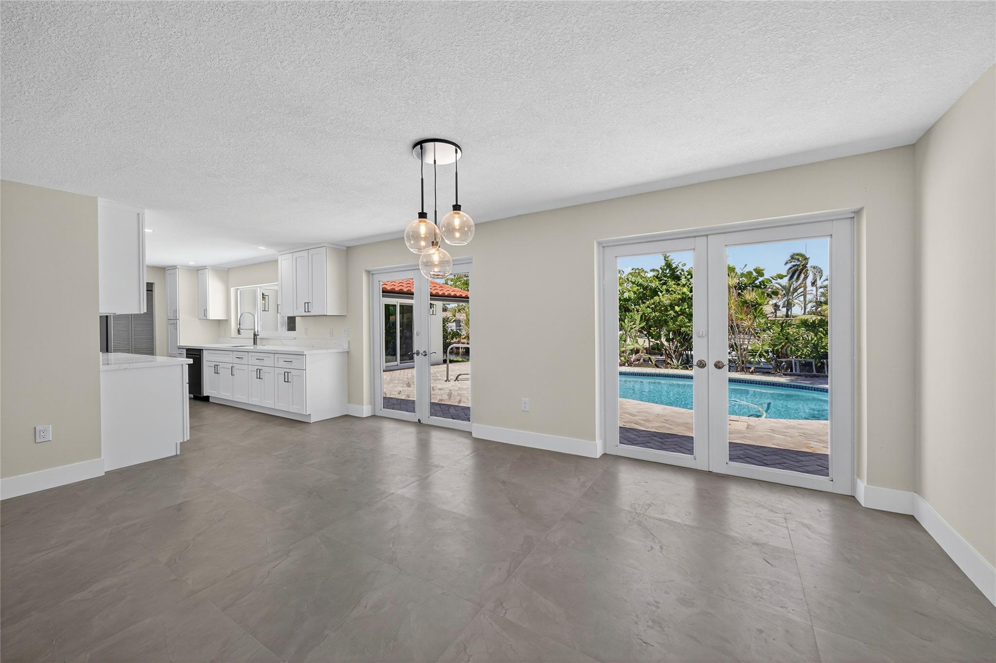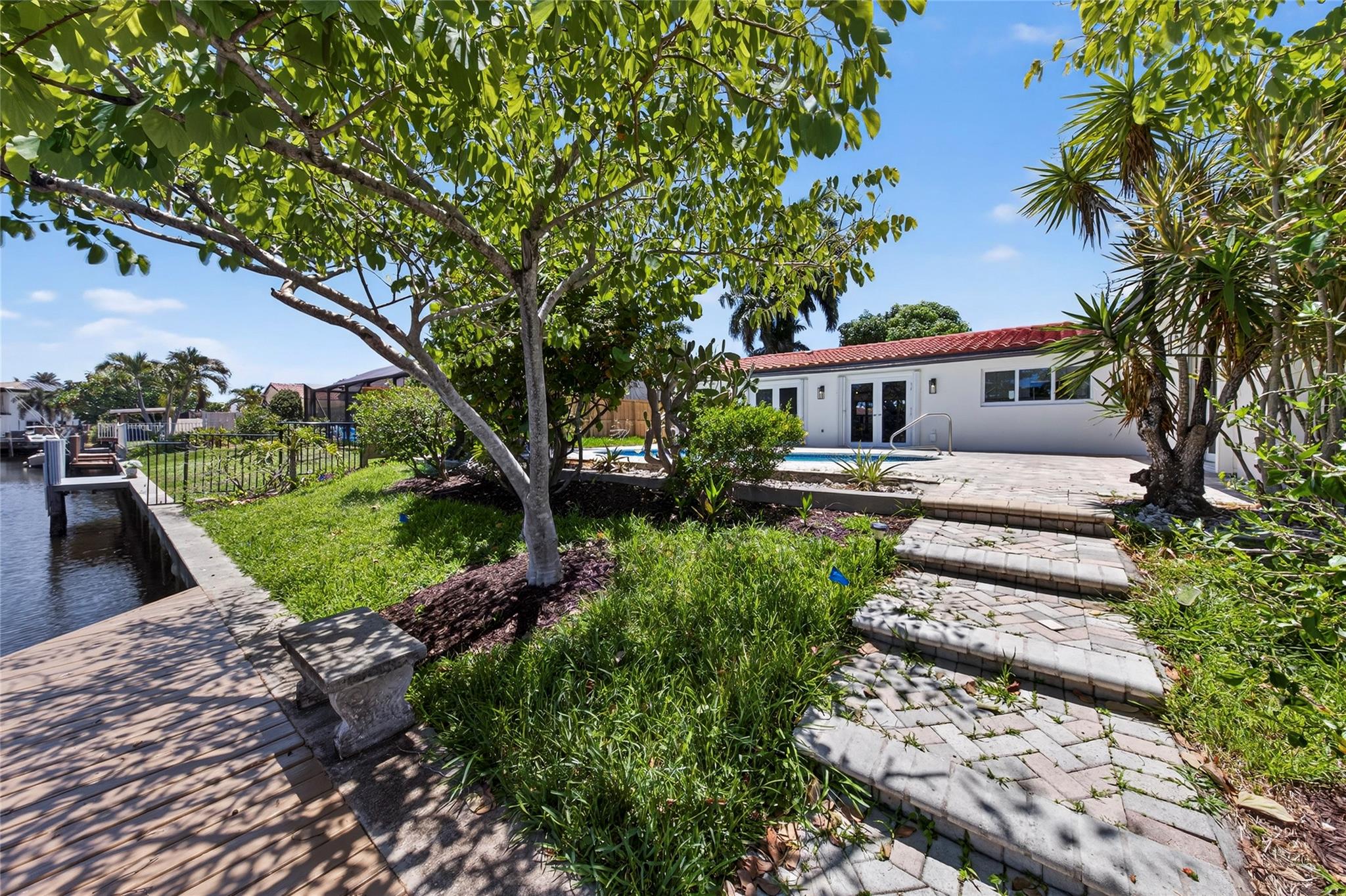 WOW! WATERFRONT POOL HOME UNDER 1 MILLION!! No expense was spared in COMPLETELY renovating this 3 bedroom, 3 bathroom home, all of which was fully PERMITTED and inspected. Ocean-access dock and 2-car garage complete all of the checked boxes. ALL new kitchen with quartz counters and upgraded NEW stainless appliances. BEAUTIFUL NEW 24x48 porcelain tile floors throughout. ALL new 3 full bathrooms, including is a CABANA bath. SPACIOUS master bedroom with high ceilings, HUGE walk-in closet and roomy master bathoom completely removed from the guest suites. All new lighting and ceiling fans. TONS of natural lighting, beautiful pool area on the water. This home is 100% turnkey and 100% hurricane ready as well! Full 2 car garage and double driveway for ample parking. TRULY a must see!