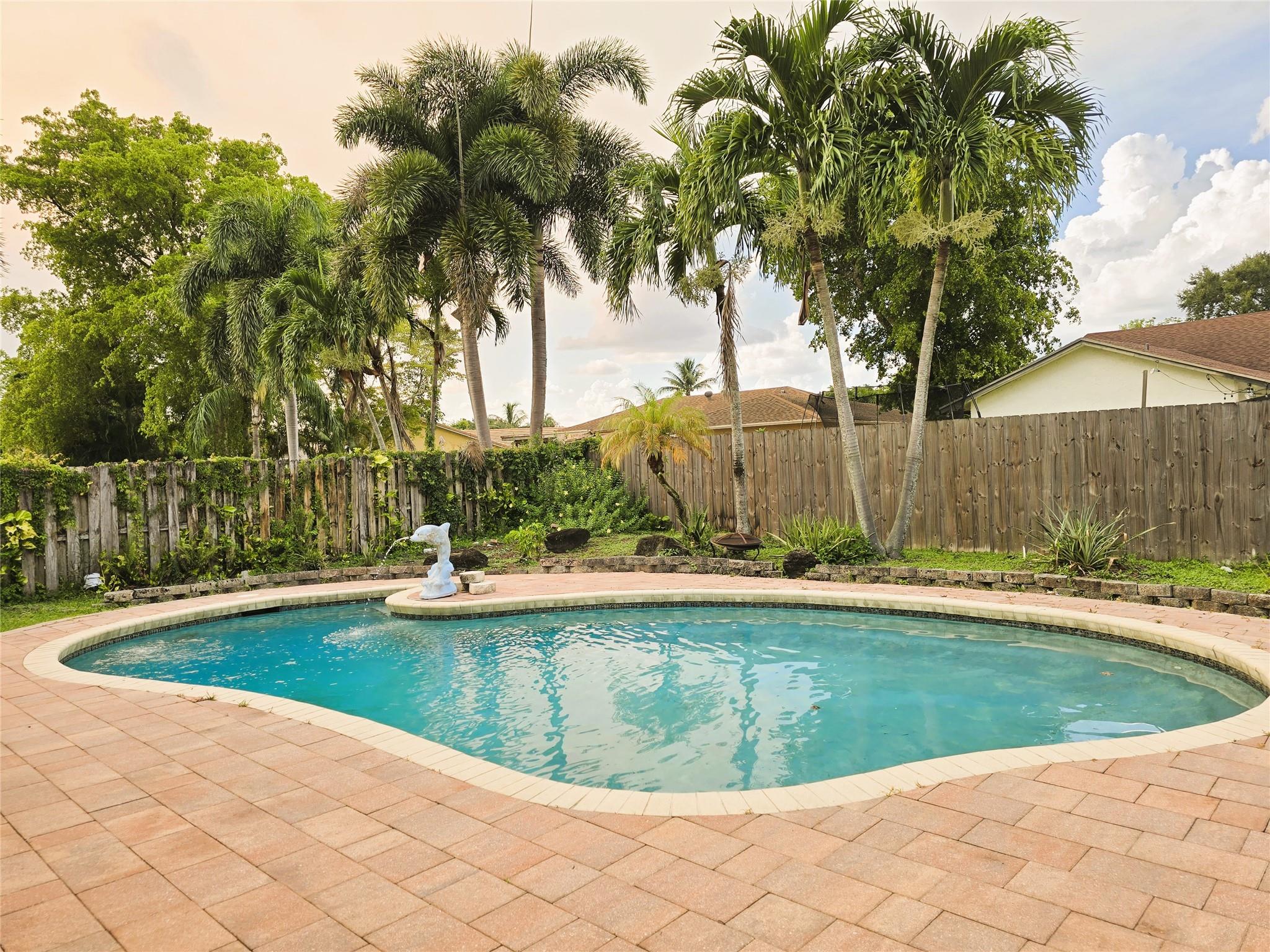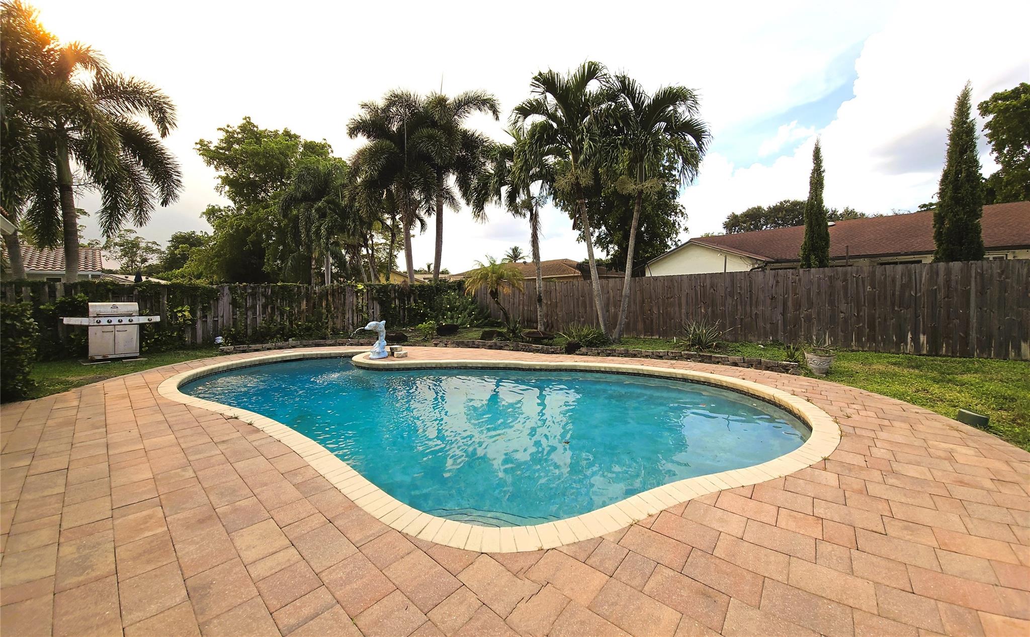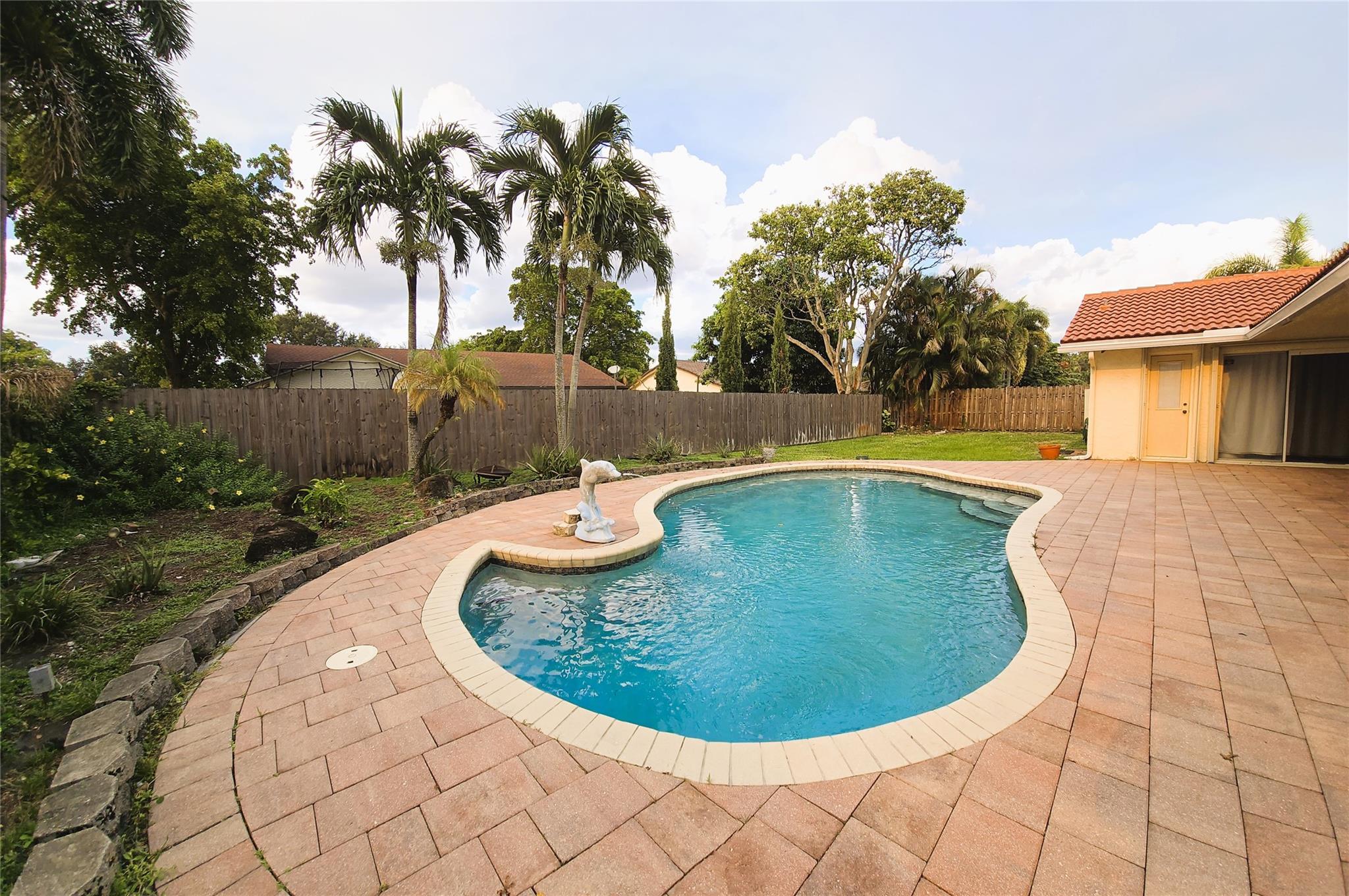 WELL MAINTAINED 4 BED 2 BATH HOME IN DESIREABLE JACARANDA LAKES WITH PRIVATE IN GROUND POOL, INTERIOR FEATURES UPGRADED KITCHEN WITH LONGATED WOOD CABINETRY, GRANITE COUNTER TOPS, ALL SAINLESS STEEL APPLIANCES, FLOORING COMBINATION OF TILE THROUGHOUT AND WOOD LAMINATE IN 2 BEDROOMS, REMODELED MASTER BATH, SPLIT BEDROOM PLAN FOR PRIVACY, NEW S-TILE ROOF,2024 FENCED YARD WITH DOUBLE GATED ON ONE SIDE FOR JET SKI OR ADDITIONAL PARKING, BEAUTIFUL OPEN POOL, PAVERS DECKING AND HUGE YARD. COMMUNITY OFFERS A JOGGING -WORKOUT TRAIL, WITH TENNIS COURTS ANF CHILD PLAY AREA. CENTRAL LOCATED COMMUNITY WITHIN MINUTES TO SAW GRASS MILLS MALL,595, I-75