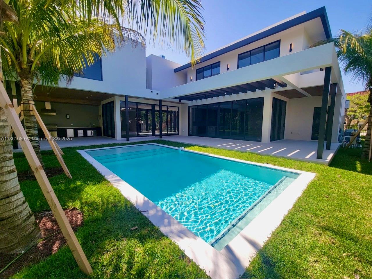 Magnificent modern home with 6-bedroom, 7.5-bathroom 2-car garage masterpiece in South Miami is the epitome of modern elegance. 5,494 SqFt under AC, it boasts a grand open floor plan overlooking the pool, high ceilings, and large impact windows that bathe the home in natural light. Italian kitchen, with top-tier stainless steel appliances and quartz countertops, is a modern chef’s dream. The primary suite features a lavish bathroom with an outside jacuzzi, a frameless glass shower, dual vanities, and a spacious walk-i n closet. Each bedroom is in-suite ensuring privacy, great den on the second floor. The home is equipped w/smart features, elevator ready. The outdoor kitchen and a large terrace epitomize the Miami lifestyle. Located, close to University of Miami and Baptist Hospital.