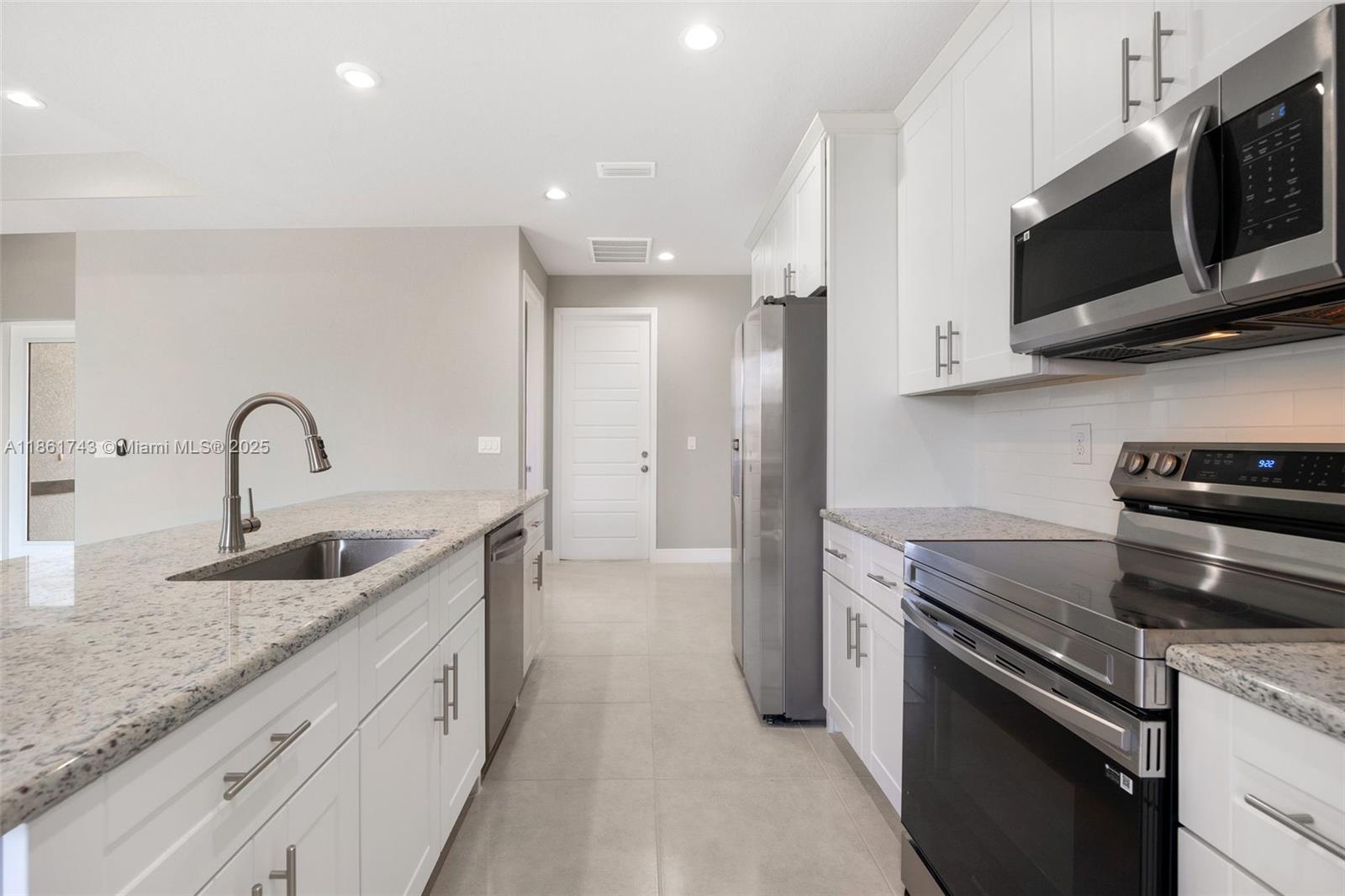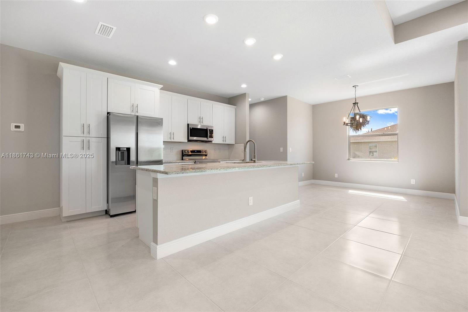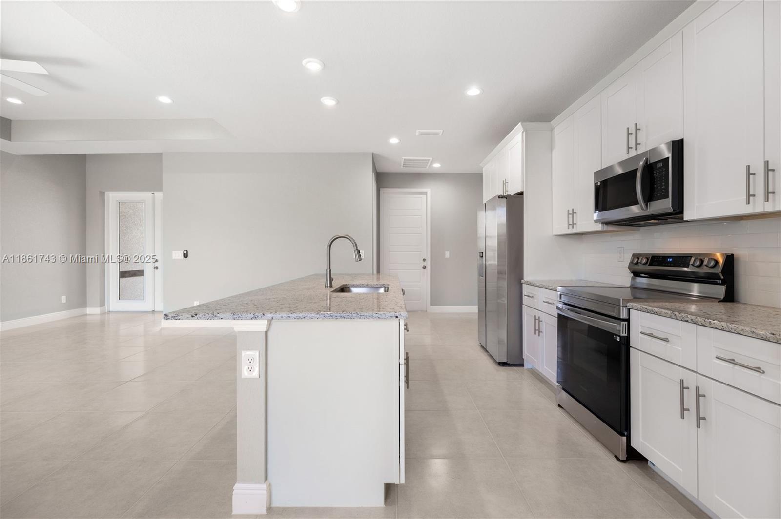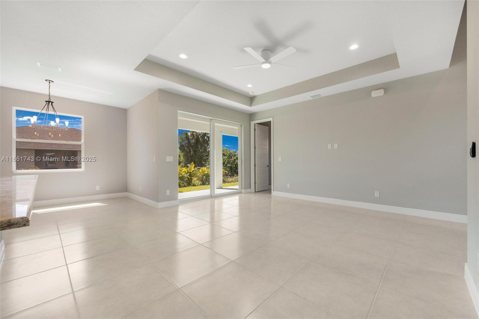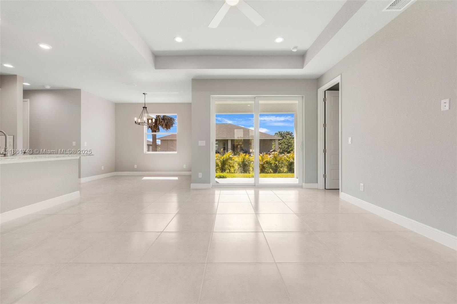 Beautiful new construction 4 BEDROOMS, 2 BATHROOMS to be completed by October 2025. This home has a modern design including many features: Double glass door, tray ceilings, impact resistant doors and windows, all tile floors, floor to ceiling tiled master shower, 8' interior doors, 9' 4 ceiling height, stainless steel appliances, granite level 2, large size charming island, soft close cabinets, chandelier above dining room, his & her walk in closets in master bathroom, a large size master shower, double sinks in master bathroom, automatic garage door opener, ceiling fans in bedrooms and great room, irrigation system, gutters in front, laundry room with sink near garage, large size lanai under trusses. A FREE 10 YEAR HOME WARRANTY!! (The fourth bedroom is a large office)