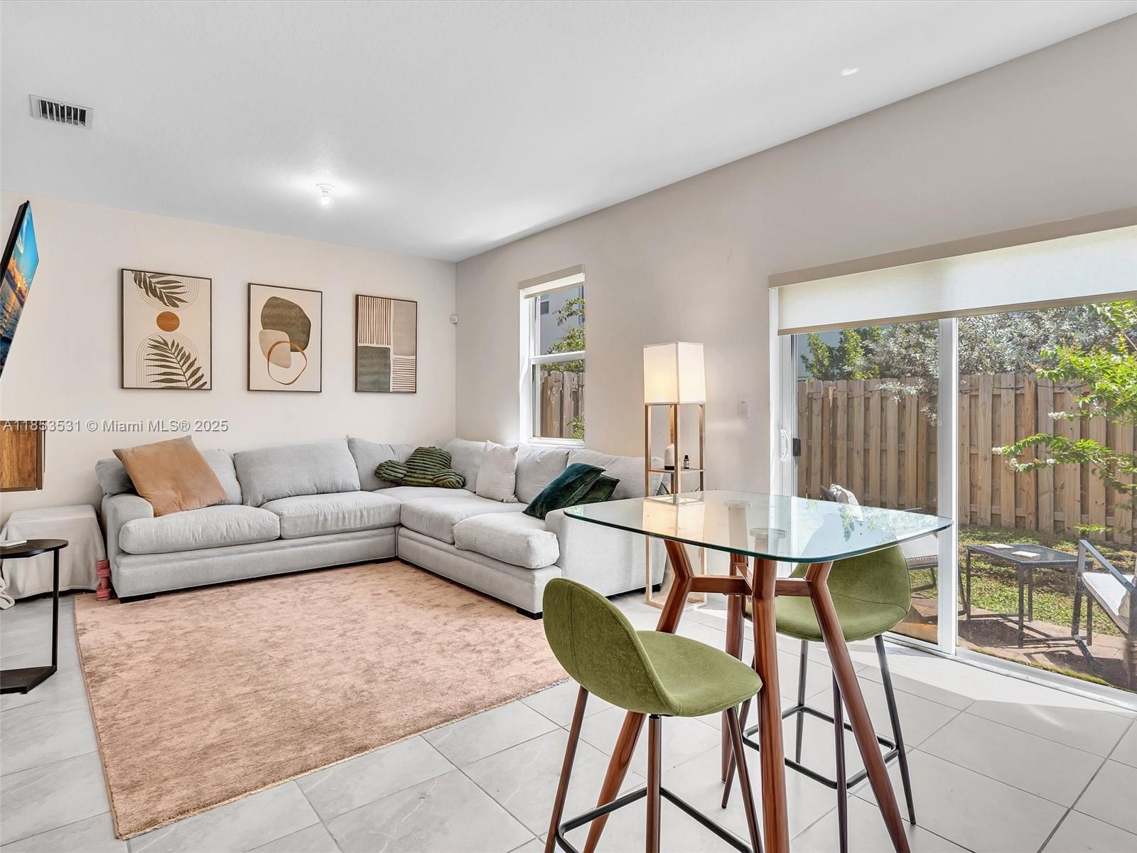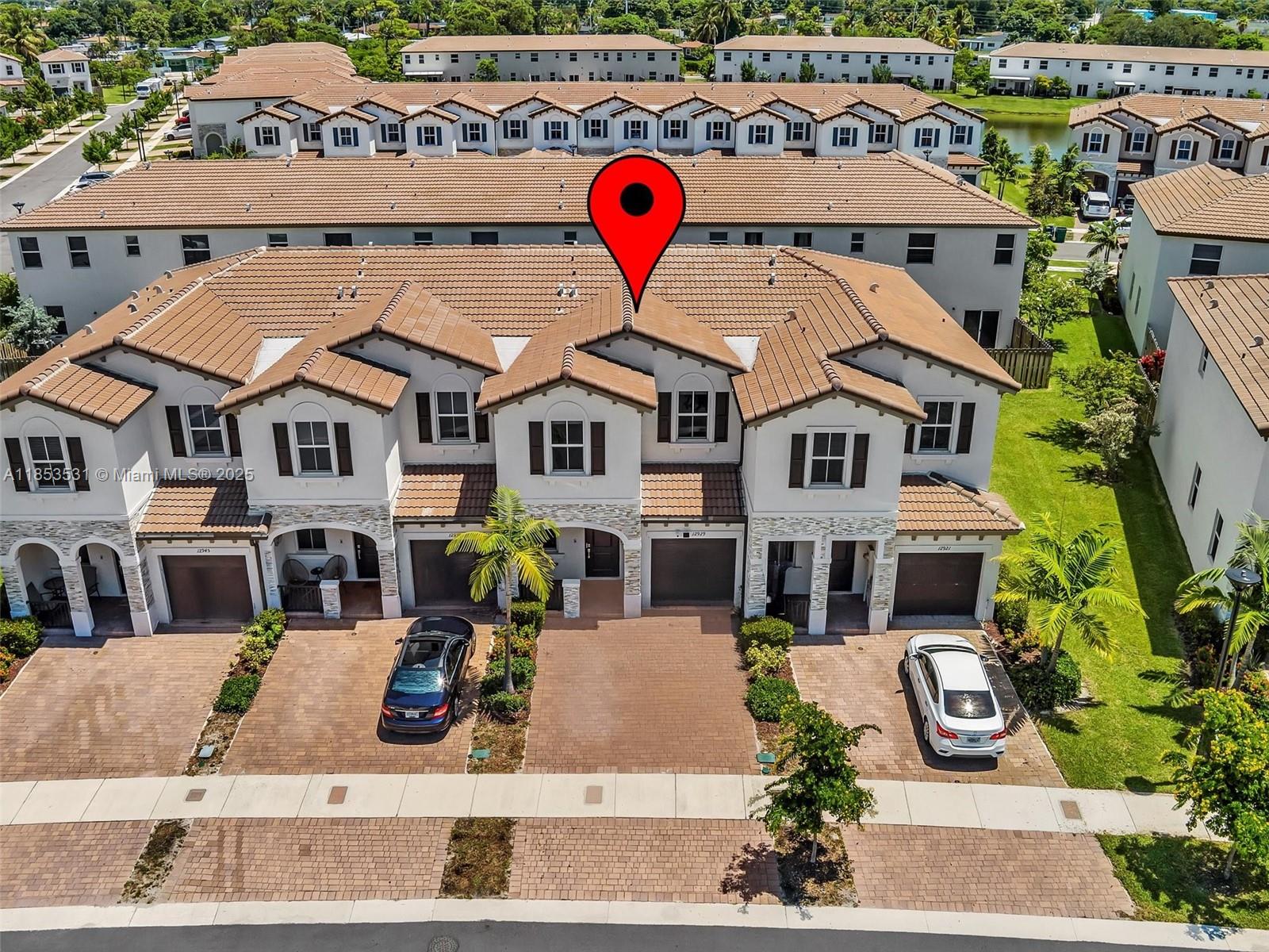 This beautiful newly built 3-bed, 2.5-bath townhome, offers chic sun-filled interiors with carpet upstairs and ceramic tile downstairs. The spacious master suite features a walk-in closet and a bathroom with dual sinks and a stand-up shower. The eat-in kitchen, complete with stainless steel appliances and a breakfast bar, seamlessly flows into the open-concept living and dining area. Step outside to a private backyard where a sitting and BBQ area awaits. Located in a gated community this home is just steps away from a dog park, kids' playground, resort-style clubhouse featuring a luxurious pool and jacuzzi lounge. Additional highlights include impact windows, a covered front porch, a 1-car garage with 4 car driveway, and it's just minutes from dining, shopping, highways, and Miami Airport.