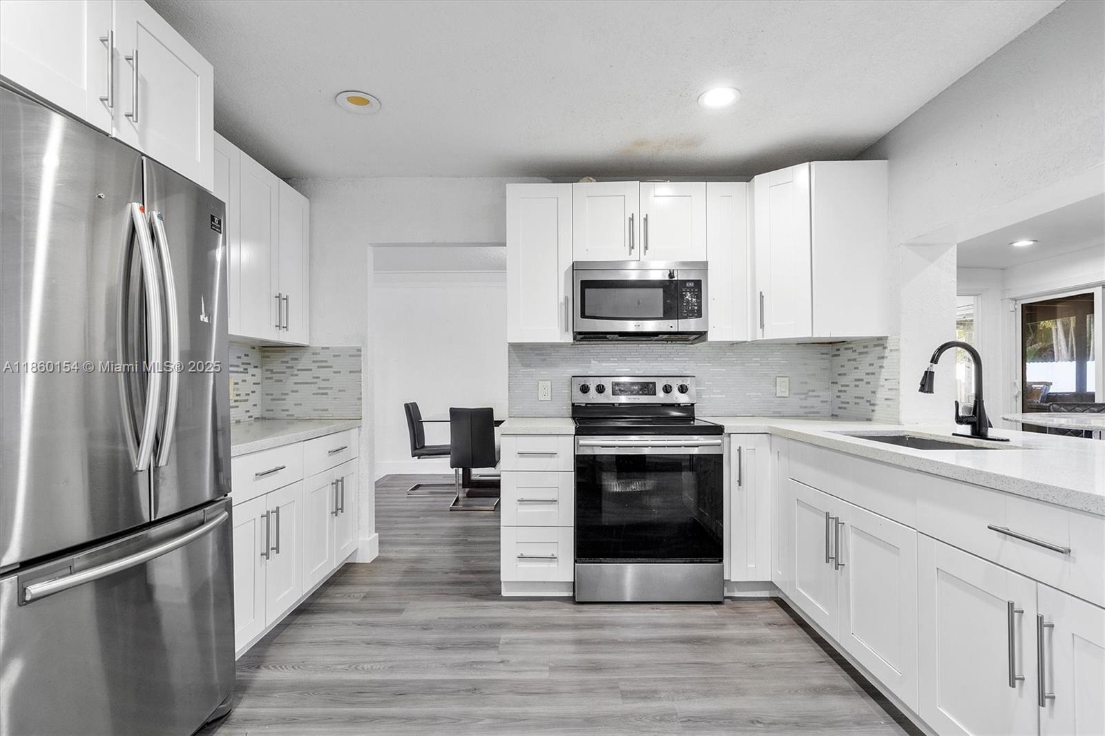 Beautifully renovated one-story home with 3 Bedrooms, 2 Bathrooms, pool, and no HOA! This home features brand new luxury vinyl floors, an updated open kitchen with granite countertops and stainless steel appliances, and updated bathrooms. Spacious living room and common areas. Primary bedroom with walk-in closet. Part of the Florida room is enclosed as a extra room, currently used as a 4th bedroom. Oversized backyard with a pool, covered wood deck, and a large lanai is perfect for entertaining. 2 car garage plus a large driveway to fit up to 5 cars and new garage door opener 2025. Impact Windows and Doors. Roof 2023. AC 2025. Water Heater 2020. Pool was resurfaced in 2021. READY TO MOVE IN! Mortgage savings may be available for buyers of this listing.