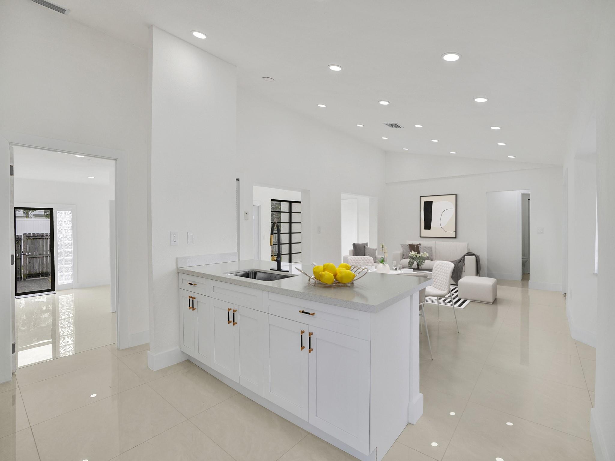 PRICED TO SELL! This completely renovated 3 bedroom 2 bathroom home sits on a corner lot with a circular driveway and large fenced backyard, offering both convenience and privacy with no HOA. The open layout features a modern white kitchen with stainless steel appliances and quartz countertops, complemented by high ceilings, recessed lighting, and sleek flooring throughout. Just minutes from the beach, this move-in ready home blends coastal living with comfort and style, making it ideal for relaxing at home or enjoying family gatherings.