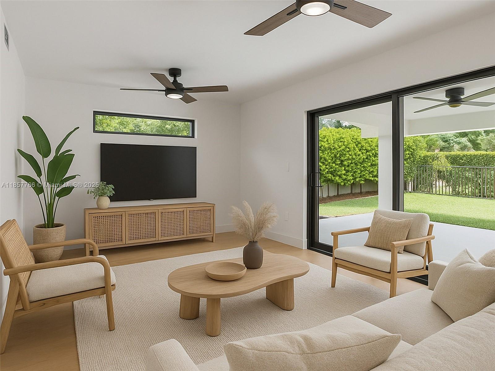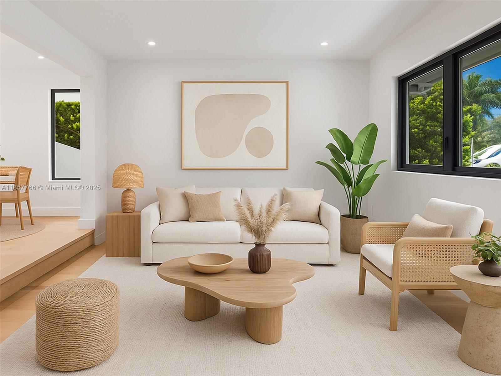 Stunning 3,248 sq. ft. completely remodeled move-in ready home. Featuring four bedrooms and three bathrooms (1 bedroom and bath on first level). The home features updated bathrooms, new wood floors, new HVAC, curated finishes and impact doors and windows. The striking kitchen boasts contemporary cabinetry, quartzite countertops and KitchenAid appliances, ideal for entertaining. The home includes a garage and updated landscaping. Experience vibrant Coral Gables living with lush greenery, dining, and shopping nearby. Perfect for modern, stylish living.