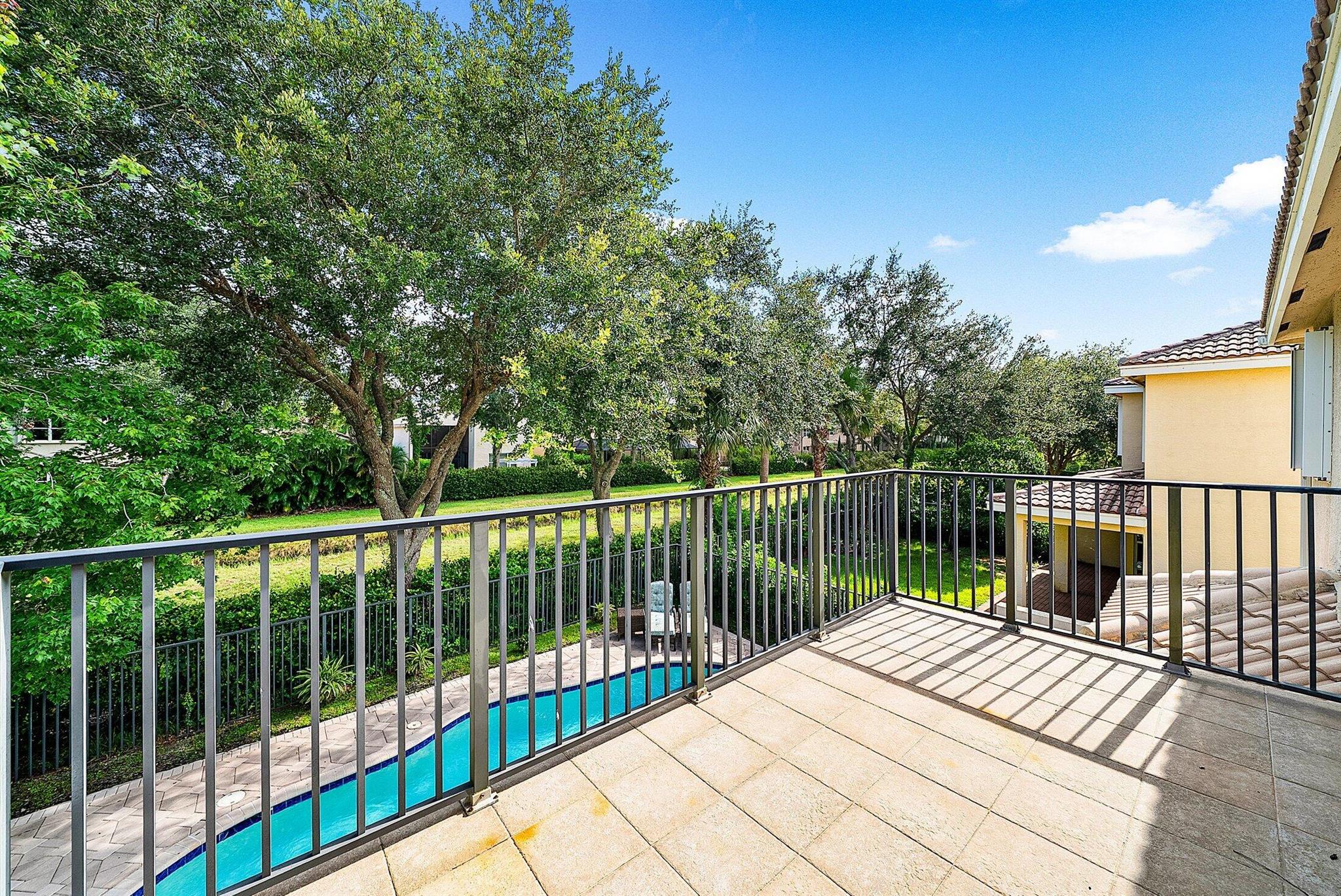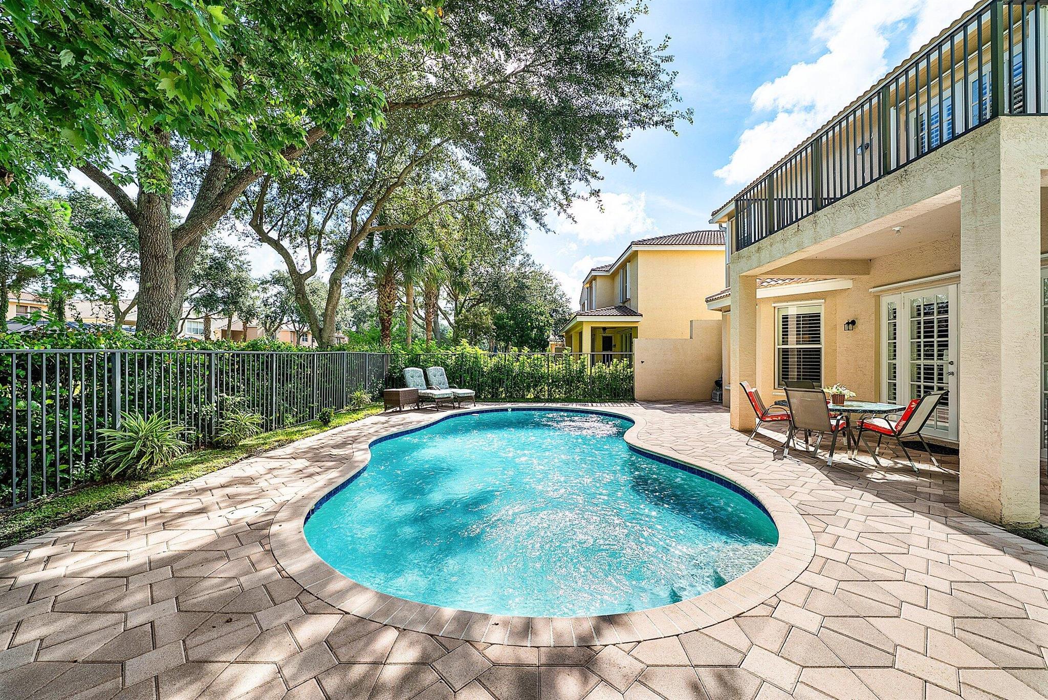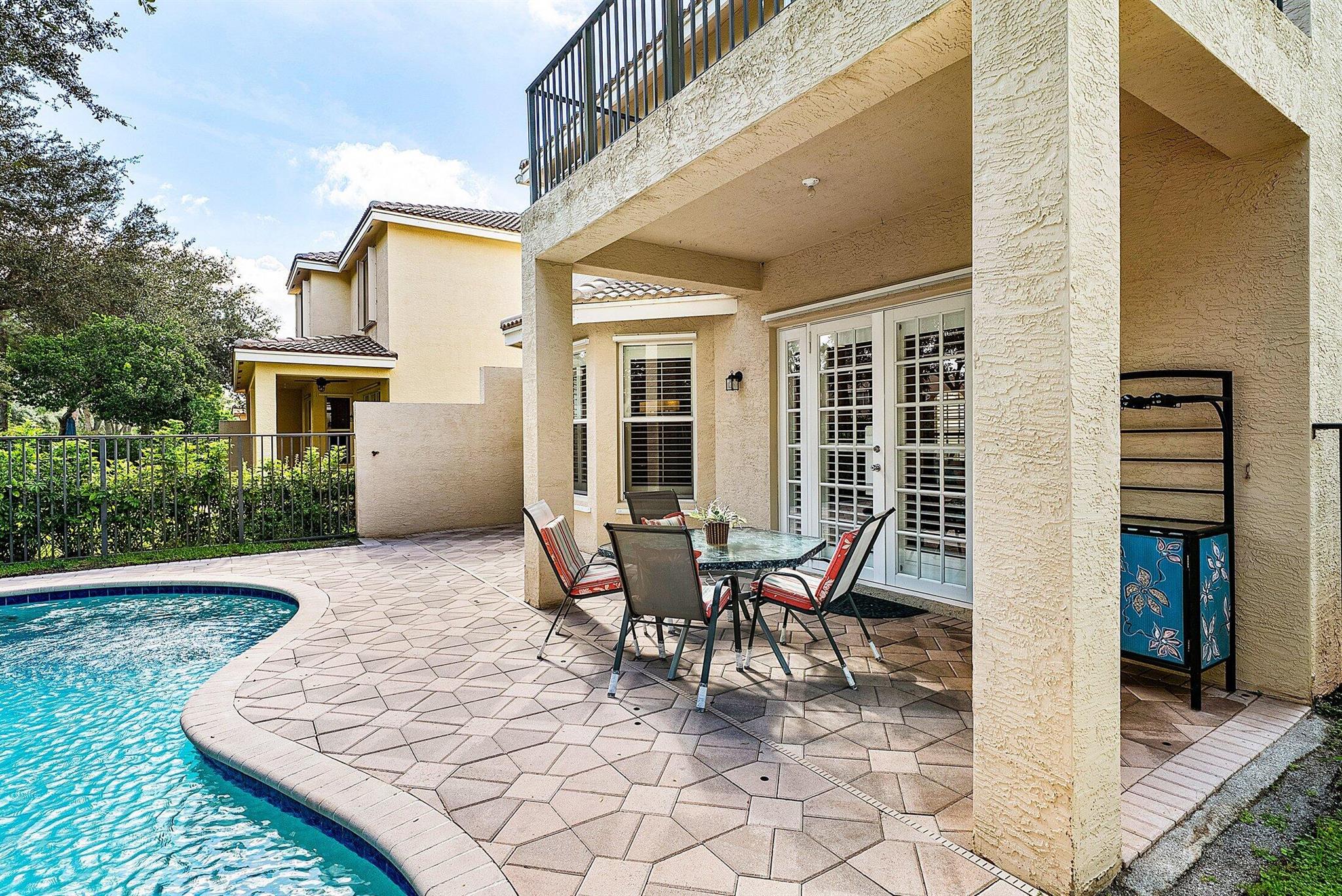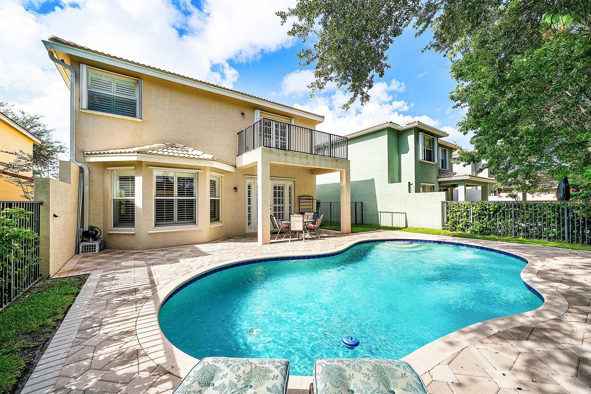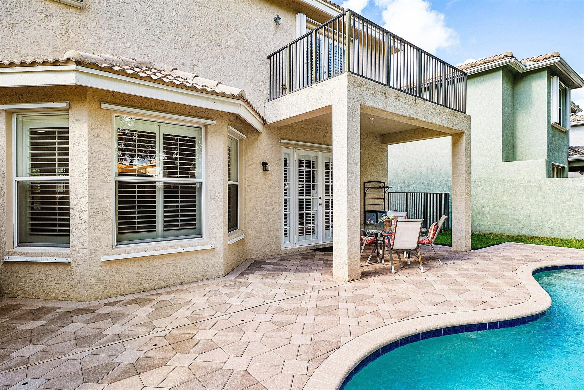 Beautiful 4 Bedroom Pool Home in Canyon Springs. This Home is Includes Accordion Hurricane Shutters for the Second Floor. Inside there is Crown Molding Throughout and Plantation Shutters Everywhere. The Chef's Kitchen Includes 42'' Wood Cabinets with an Extended Pantry Cabinet, Granite Counters and Stainless Steel Appliances. The Breakfast Area has Bay Windows with Beautiful Views of the Pool Area. The Comfortable Family Room Has French Doors that Lead Out to the Covered Patio Overlooking the Beautiful Freeform Pool. Relax and Unwind in Your Secluded Backyard with Tons Of Landscaping for Privacy. Heading Upstairs an Upgraded Wrought Iron Staircase Leads to a Primary Suite with the Addition of a Veranda Overlooking the Property. There are 2 Large Walk In Closets & a Luxurious Primary Bath.