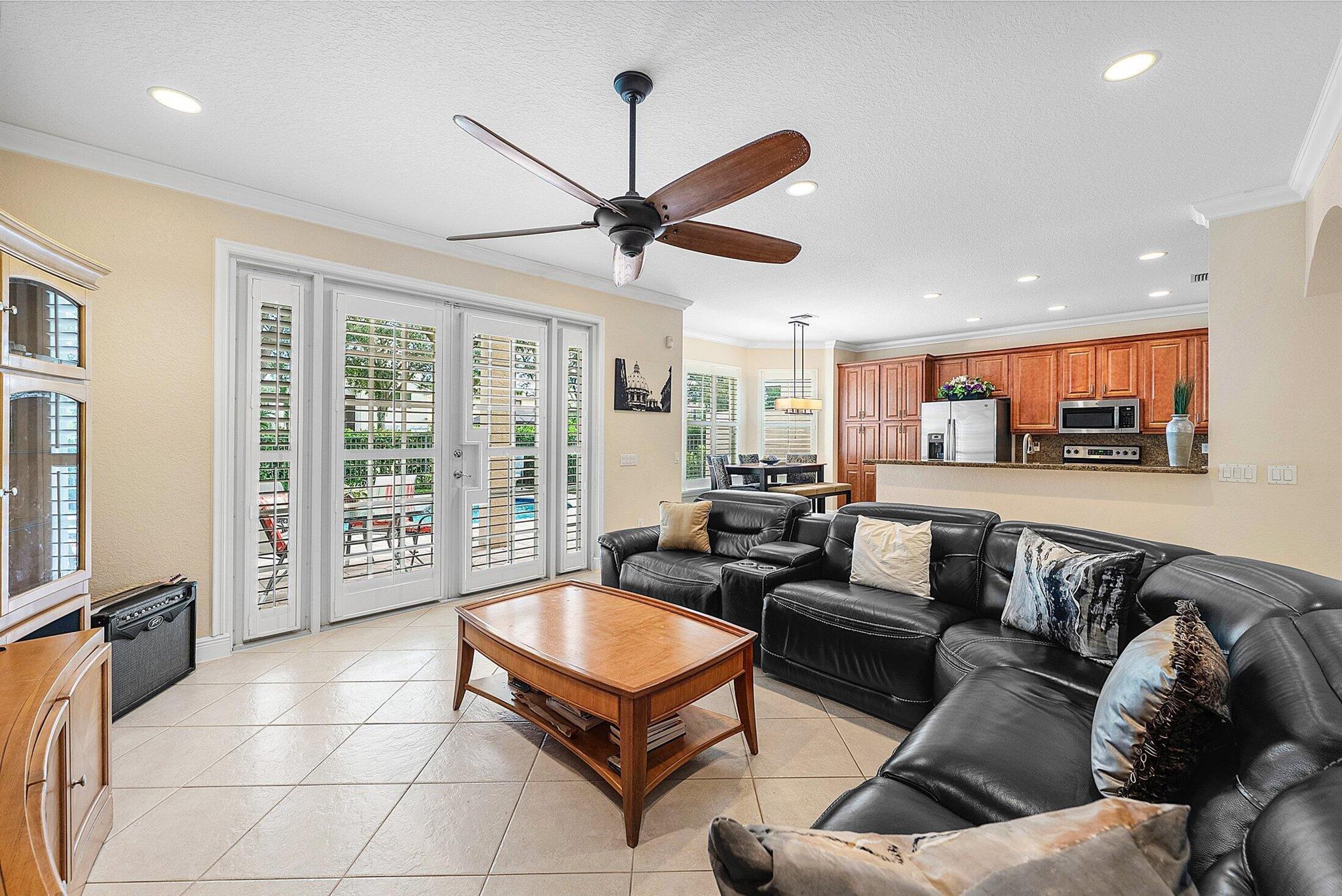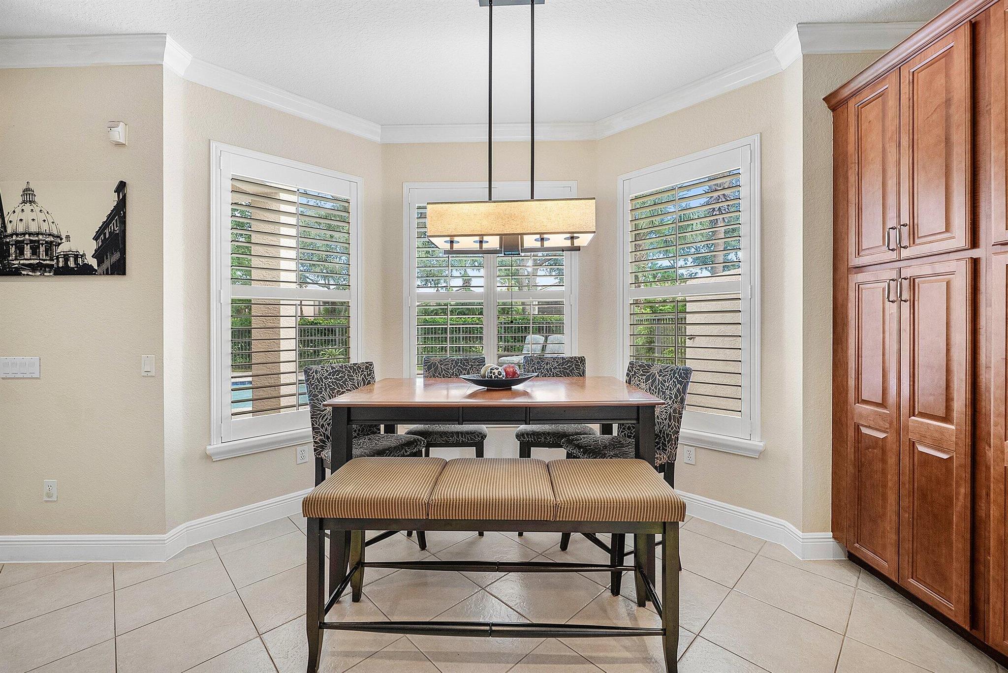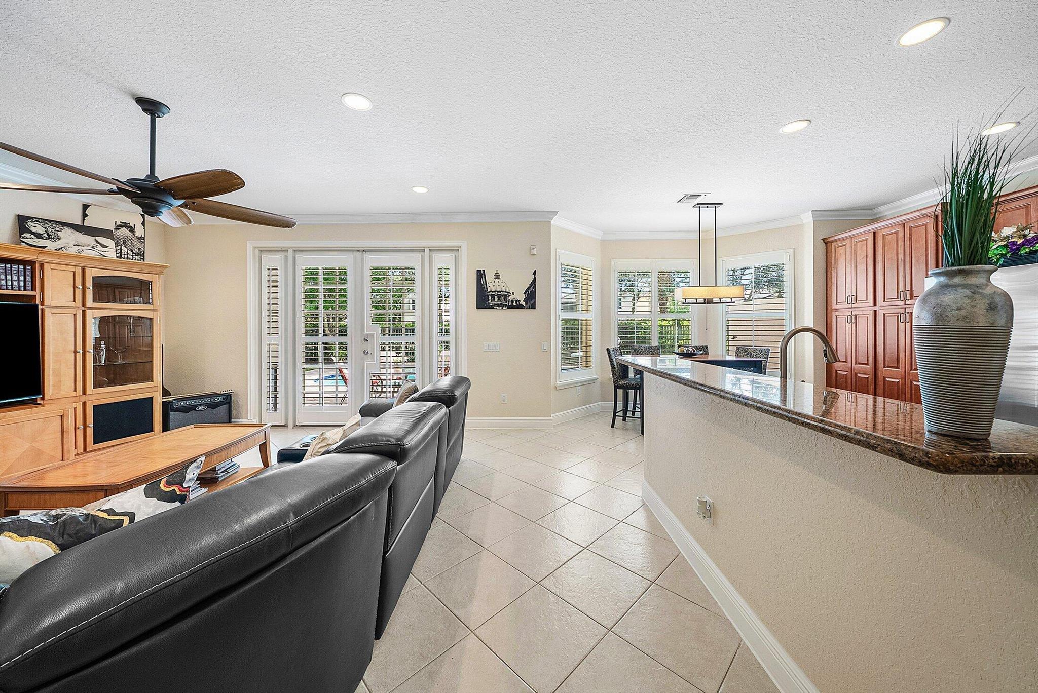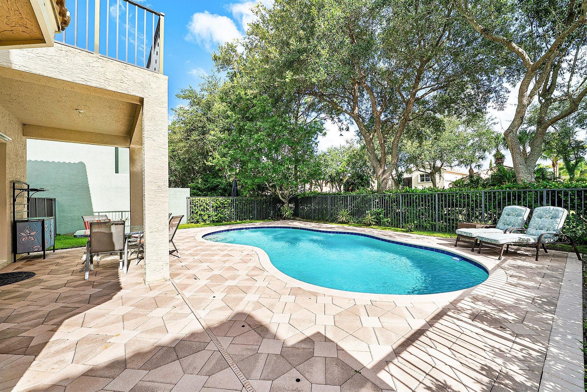 Beautiful 4 Bedroom Pool Home in Canyon Springs. This Home is Includes Accordion Hurricane Shutters for the Second Floor. Inside there is Crown Molding Throughout and Plantation Shutters Everywhere. The Chef's Kitchen Includes 42'' Wood Cabinets with an Extended Pantry Cabinet, Granite Counters and Stainless Steel Appliances. The Breakfast Area has Bay Windows with Beautiful Views of the Pool Area. The Comfortable Family Room Has French Doors that Lead Out to the Covered Patio Overlooking the Beautiful Freeform Pool. Relax and Unwind in Your Secluded Backyard with Tons Of Landscaping for Privacy. Heading Upstairs an Upgraded Wrought Iron Staircase Leads to a Primary Suite with the Addition of a Veranda Overlooking the Property. There are 2 Large Walk In Closets & a Luxurious Primary Bath.