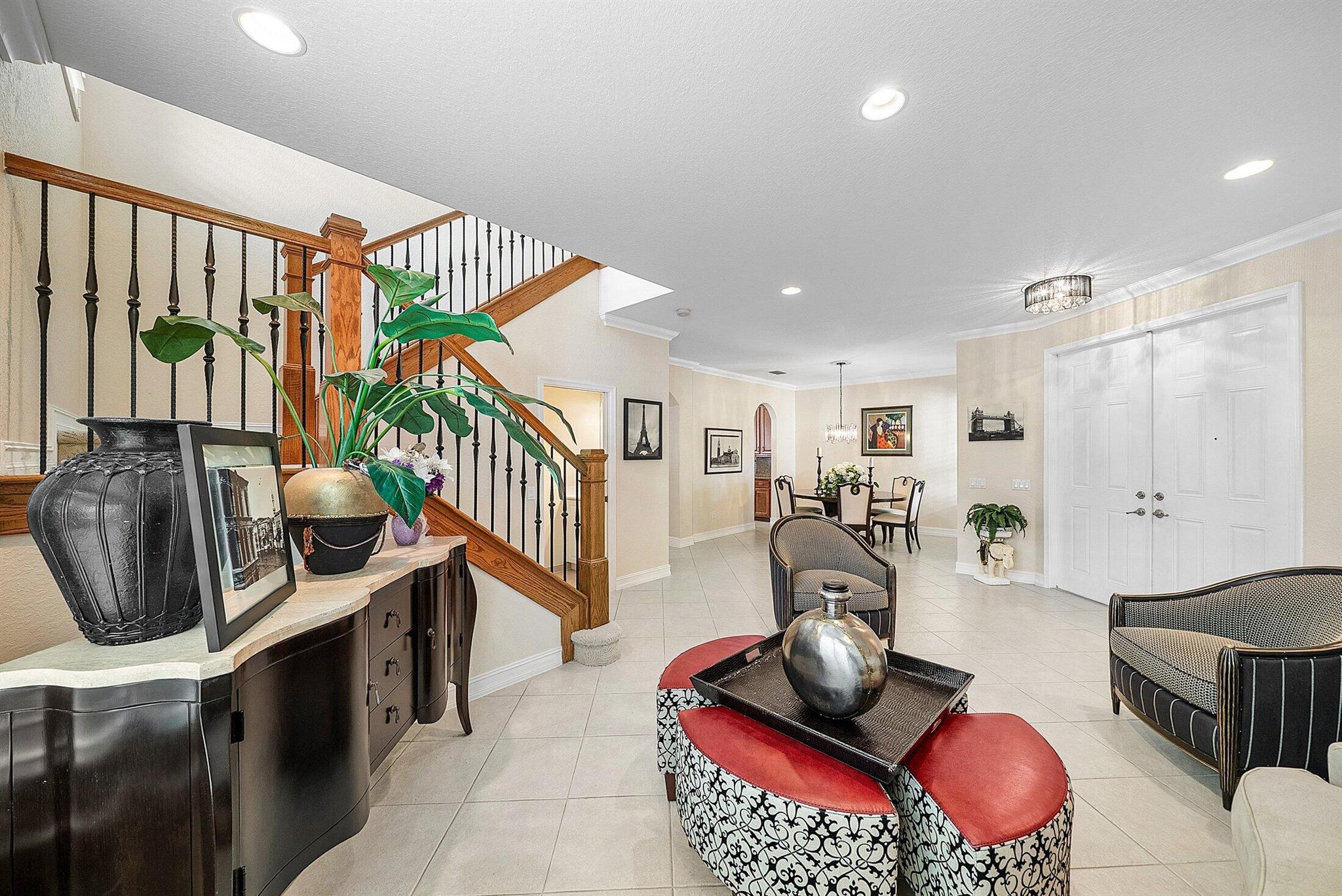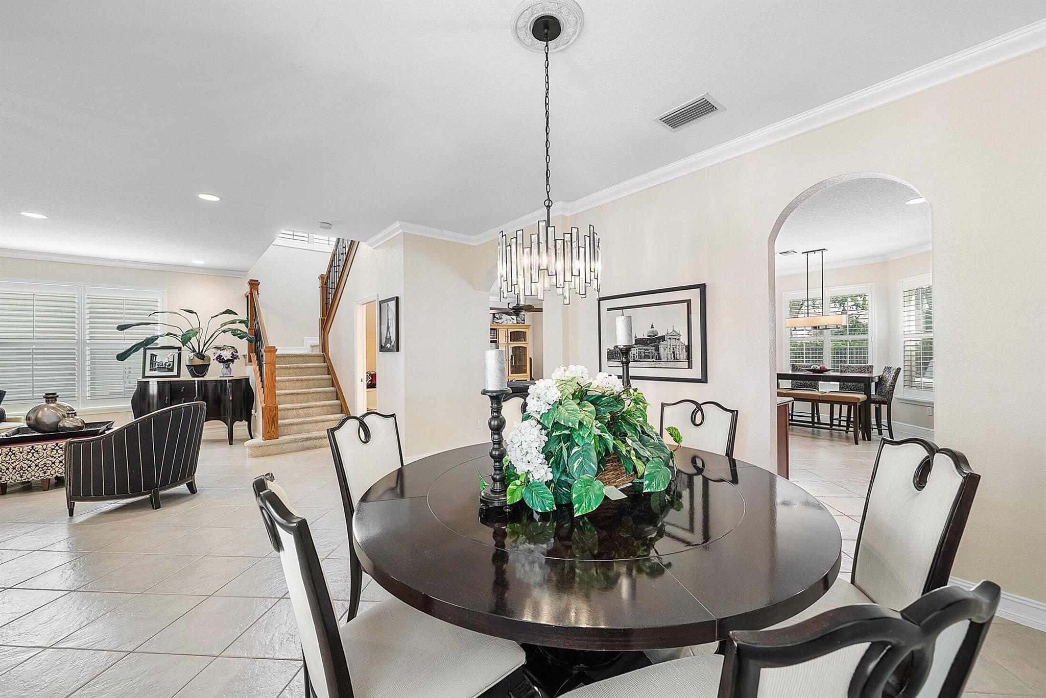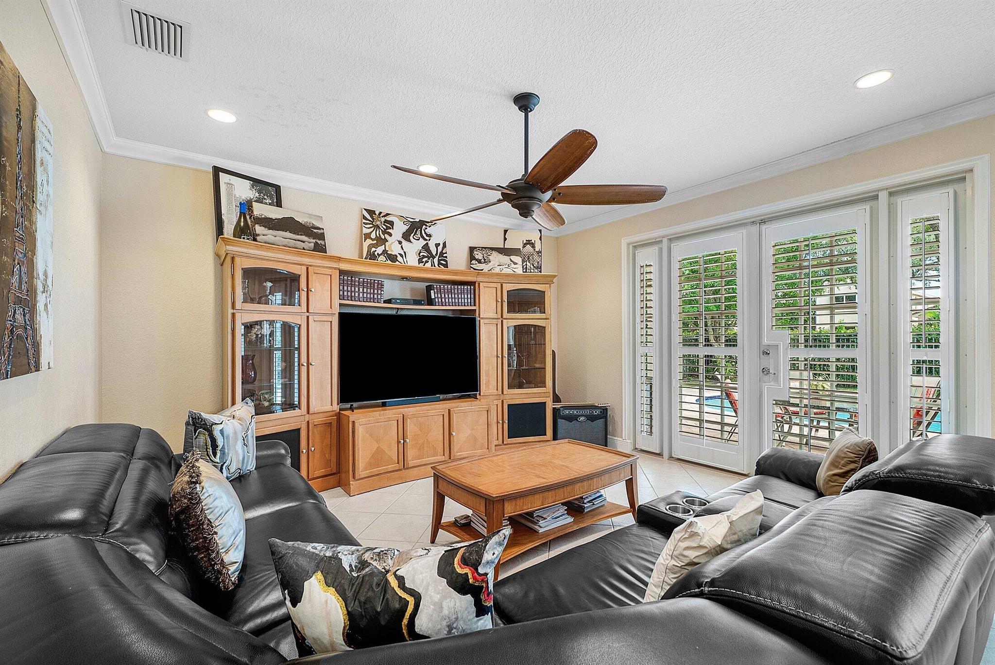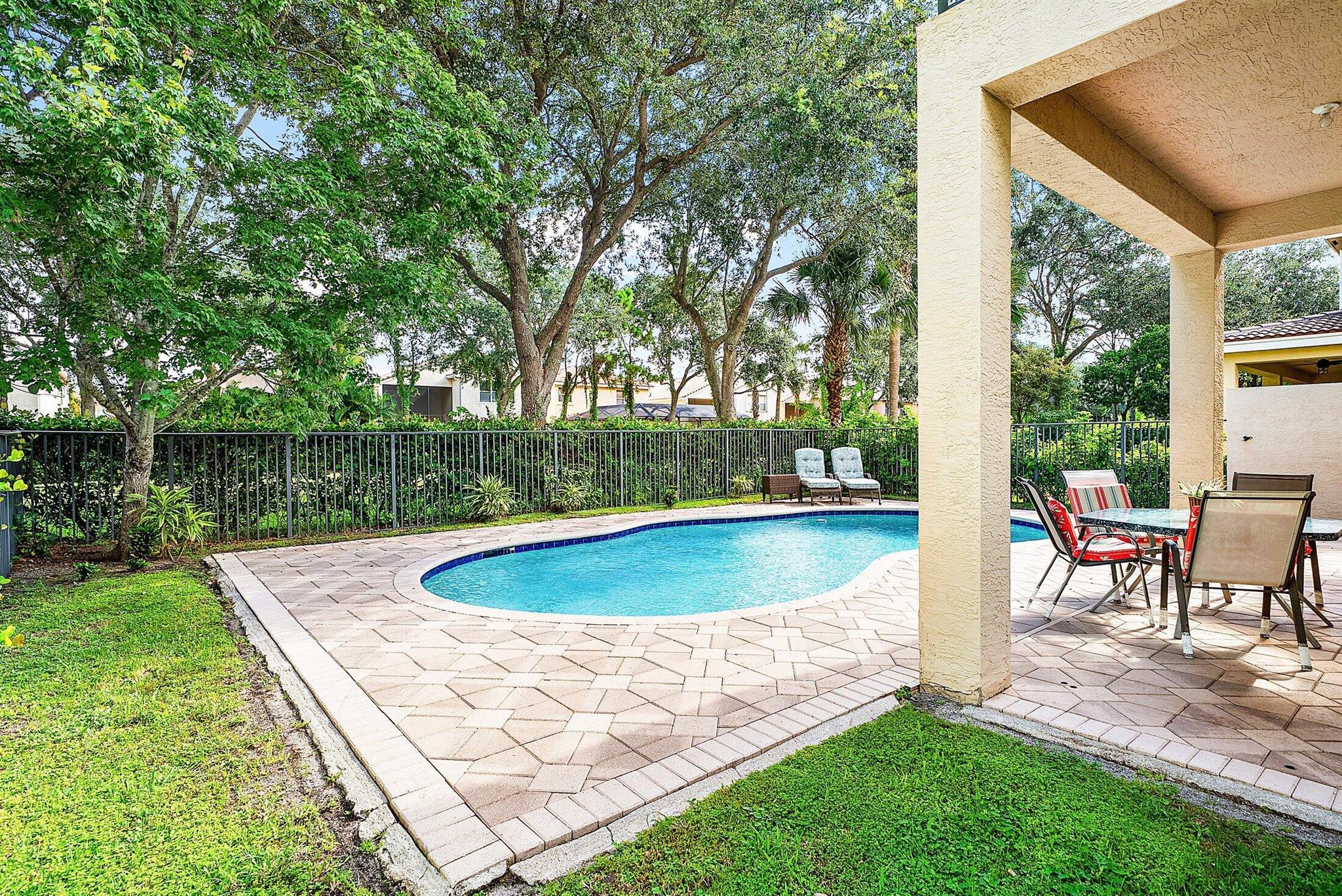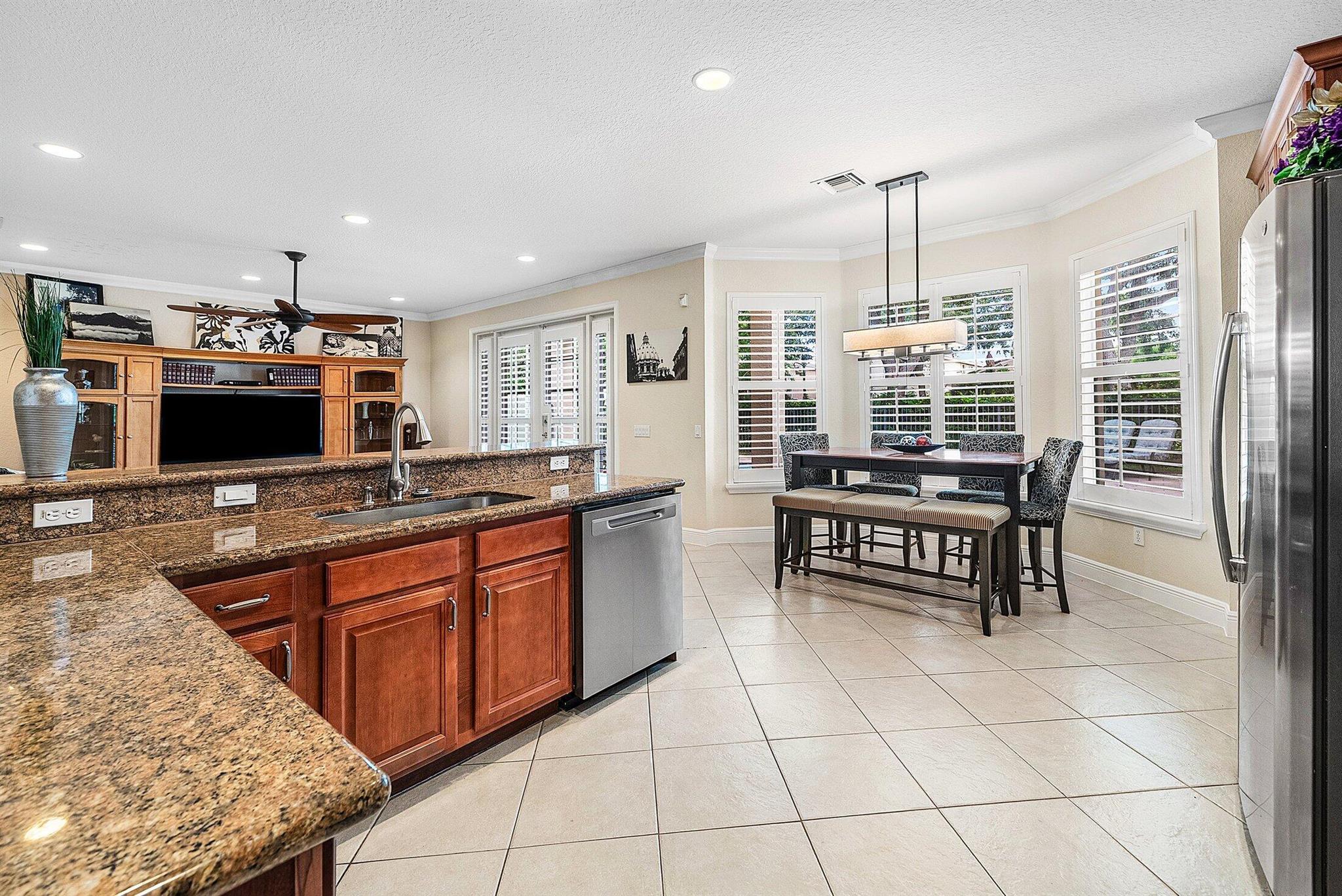 Beautiful 4 Bedroom Pool Home in Canyon Springs. This Home is Includes Accordion Hurricane Shutters for the Second Floor. Inside there is Crown Molding Throughout and Plantation Shutters Everywhere. The Chef's Kitchen Includes 42'' Wood Cabinets with an Extended Pantry Cabinet, Granite Counters and Stainless Steel Appliances. The Breakfast Area has Bay Windows with Beautiful Views of the Pool Area. The Comfortable Family Room Has French Doors that Lead Out to the Covered Patio Overlooking the Beautiful Freeform Pool. Relax and Unwind in Your Secluded Backyard with Tons Of Landscaping for Privacy. Heading Upstairs an Upgraded Wrought Iron Staircase Leads to a Primary Suite with the Addition of a Veranda Overlooking the Property. There are 2 Large Walk In Closets & a Luxurious Primary Bath.