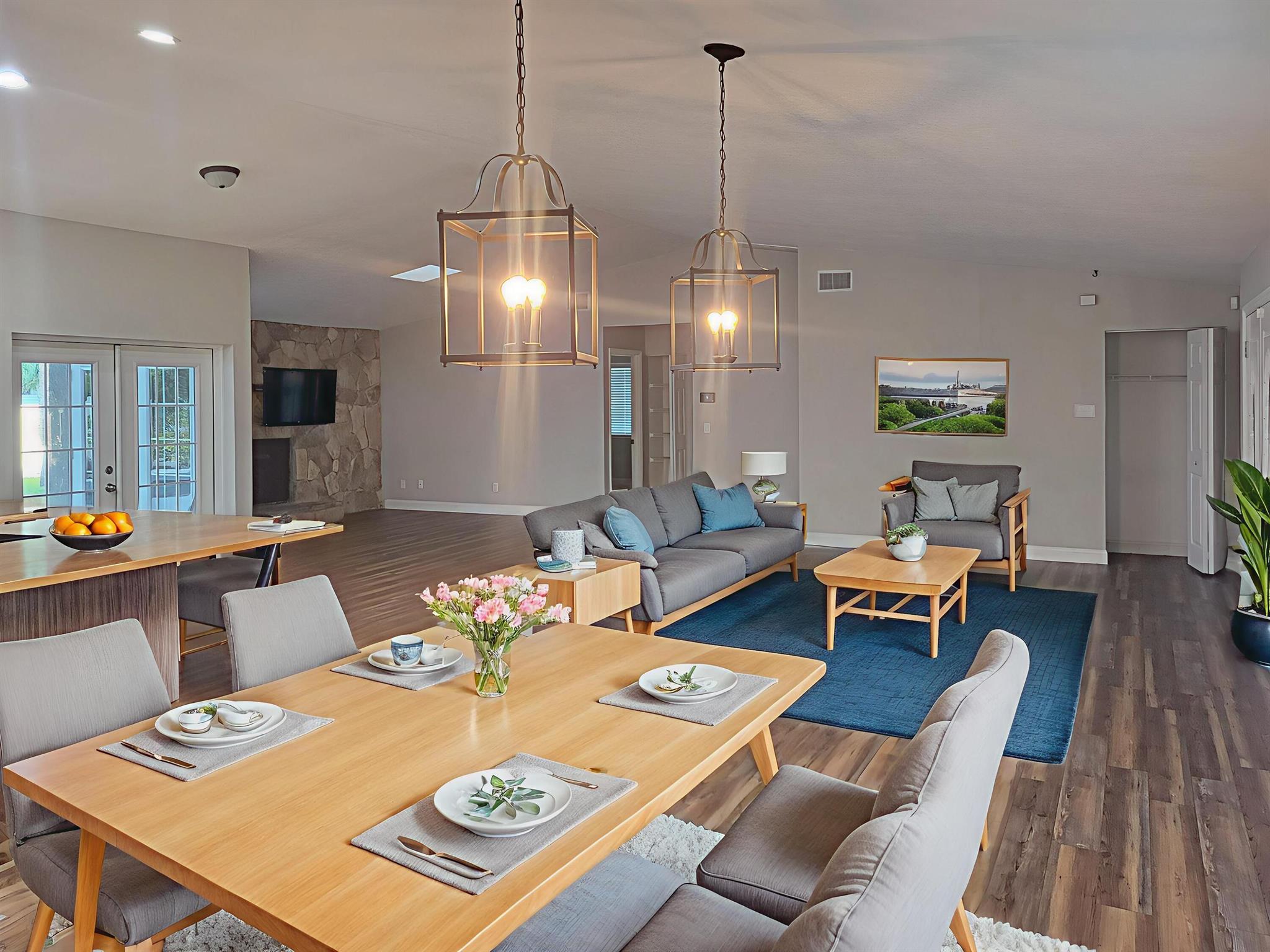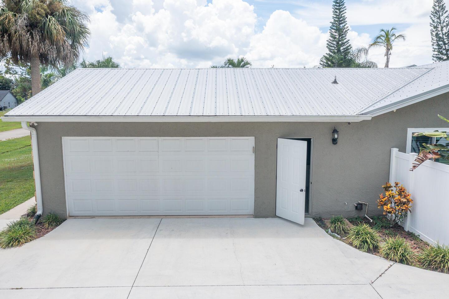 PRICE REDUCED!!!! CORPORATE OWNED PROPERTY. ONLY STANDARD OFFERS WILL BE CONSIDERED-no seller or creative financing. Lovely updated 3 bedroom/2 bath/2 car garage home on a 1/2-acre lot in the Sandpiper Bay area. This home boasts an open floor plan and split bedrooms. Kitchen is remodeled with white cabinets, granite counters, stainless-steel appliances and large breakfast bar. Home has upgrades including but not limited to impact glass, fabric shutters, humidity-controlled A/C, newer metal roof, new electrical panel 2021, newer hot water heater, cathedral ceilings, wood burning fireplace, water-proof luxury vinyl flooring. Backyard has a heated saltwater pool. Large, covered patio area and privacy fence. No HOA. Close to shopping and so much more. Some photos have been virtually stag