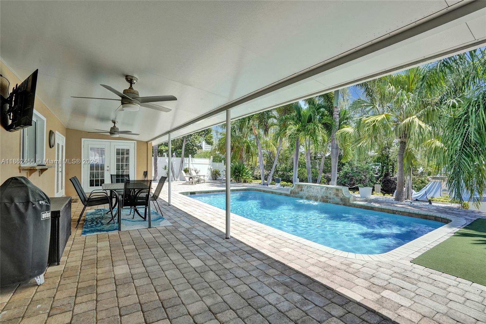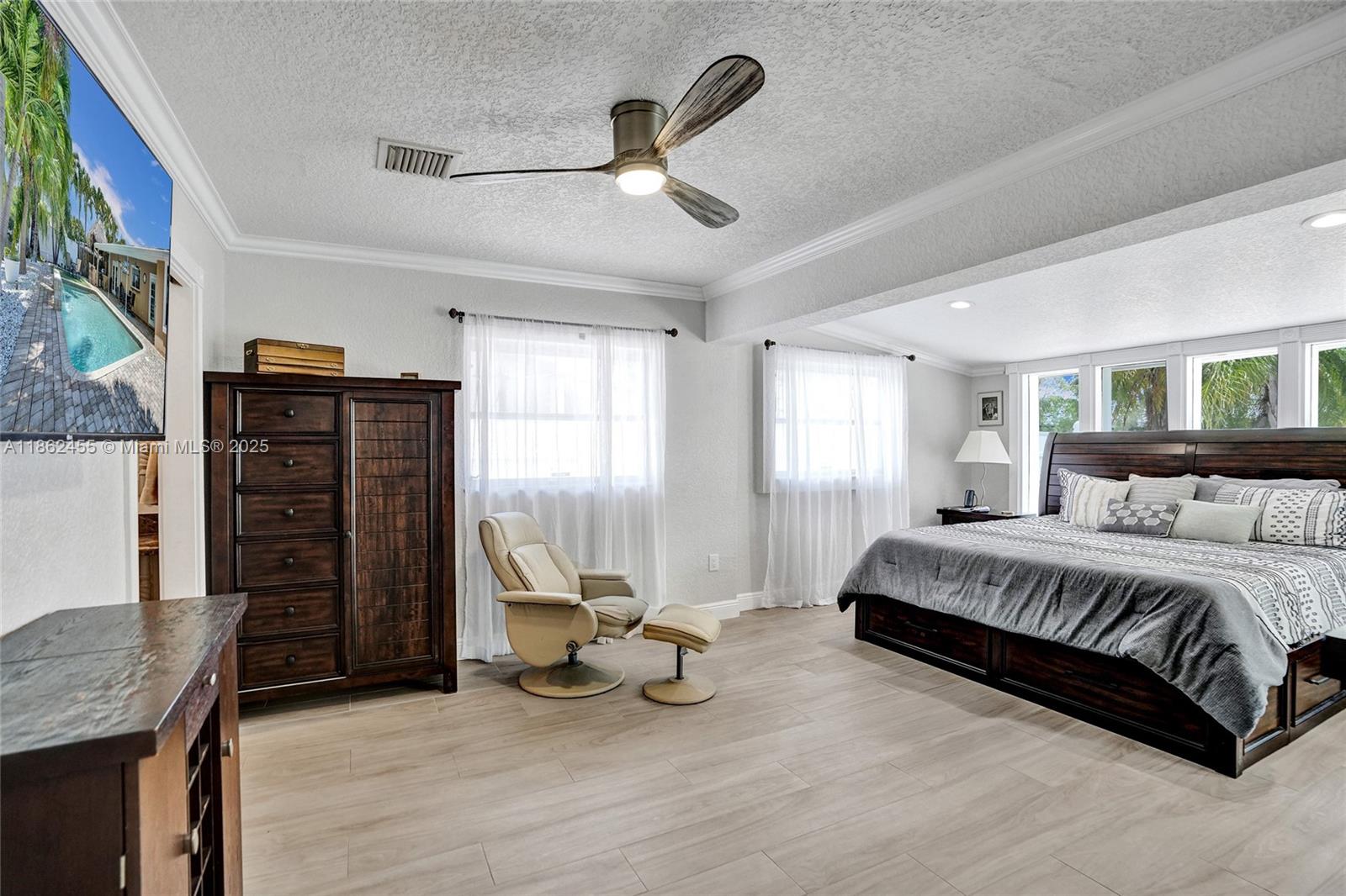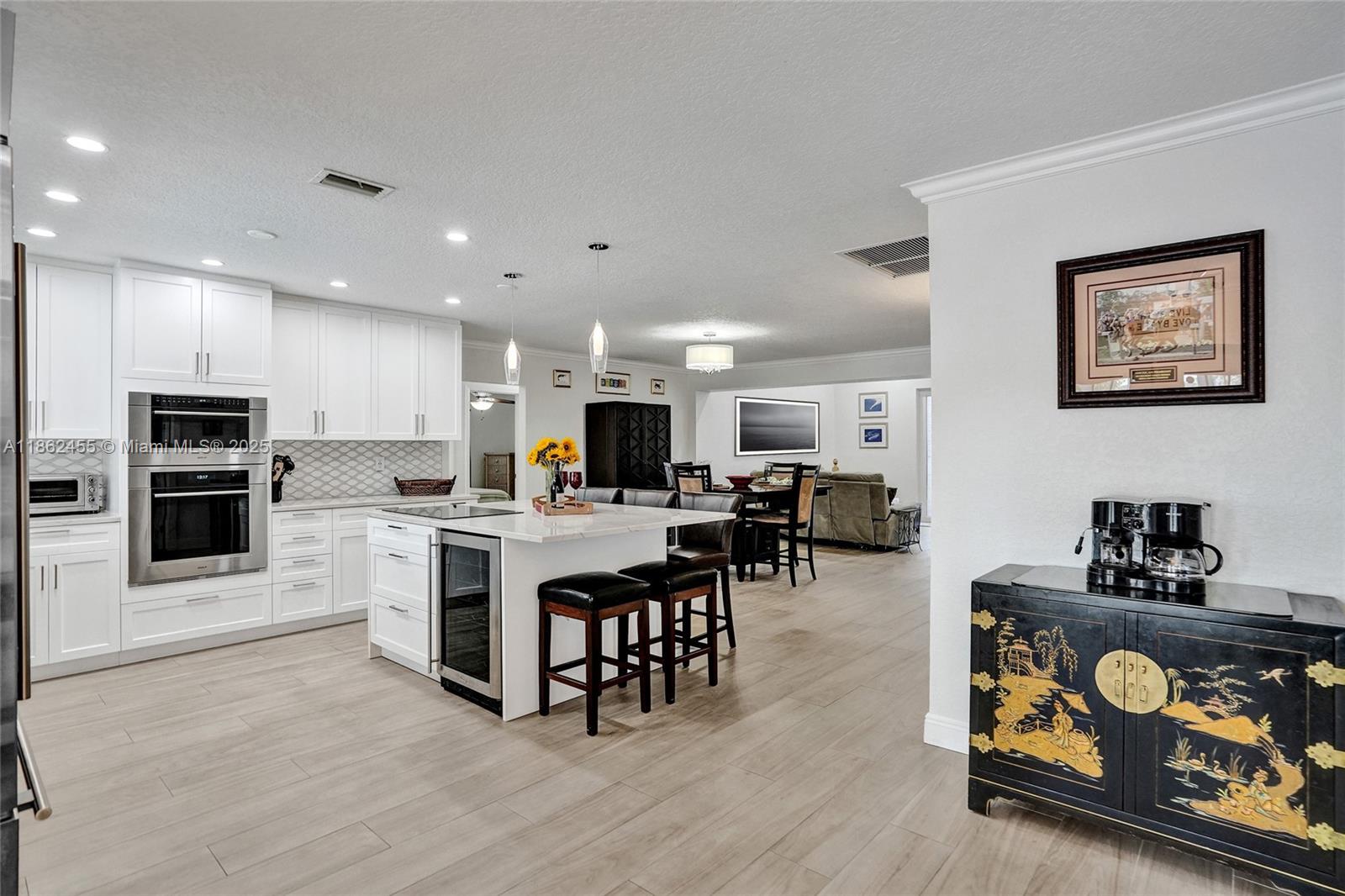 Waterfront Boaters Paradise with only one fixed bridge to the Ocean! Beautifully updated canal-front home features include tile flooring in main areas, vaulted ceilings, knockdown textured walls/ceilings, & crown molding. Chef’s kitchen with Stainless Steel appliances- Sub-Zero fridge, Wolf double oven, microwave/confection, center island, extra icemaker & wine cooler. Spacious bedrooms all with large closets, updated bathrooms including cabana bath for convenience in/out to the pool. Step outside to your backyard Oasis- oversized patio, heated saltwater pool with waterfall, paved deck, custom tiki bar w/ grill, 70’ dock with water, electric, shower & 14,000lb Neptune boat lift, dock Circular driveway& Fenced yard, this home is move-in-ready—perfect for year-round waterfront living!
