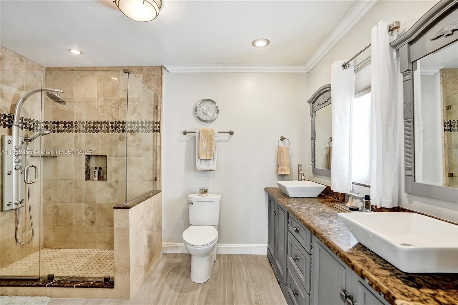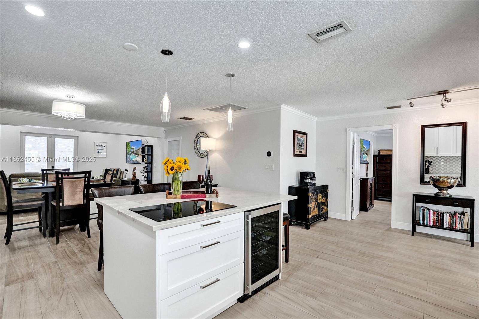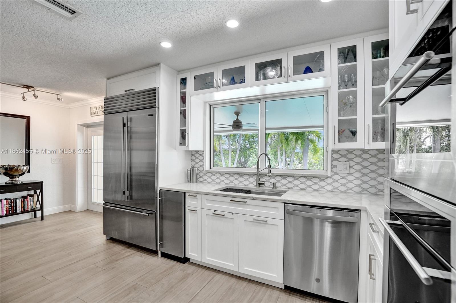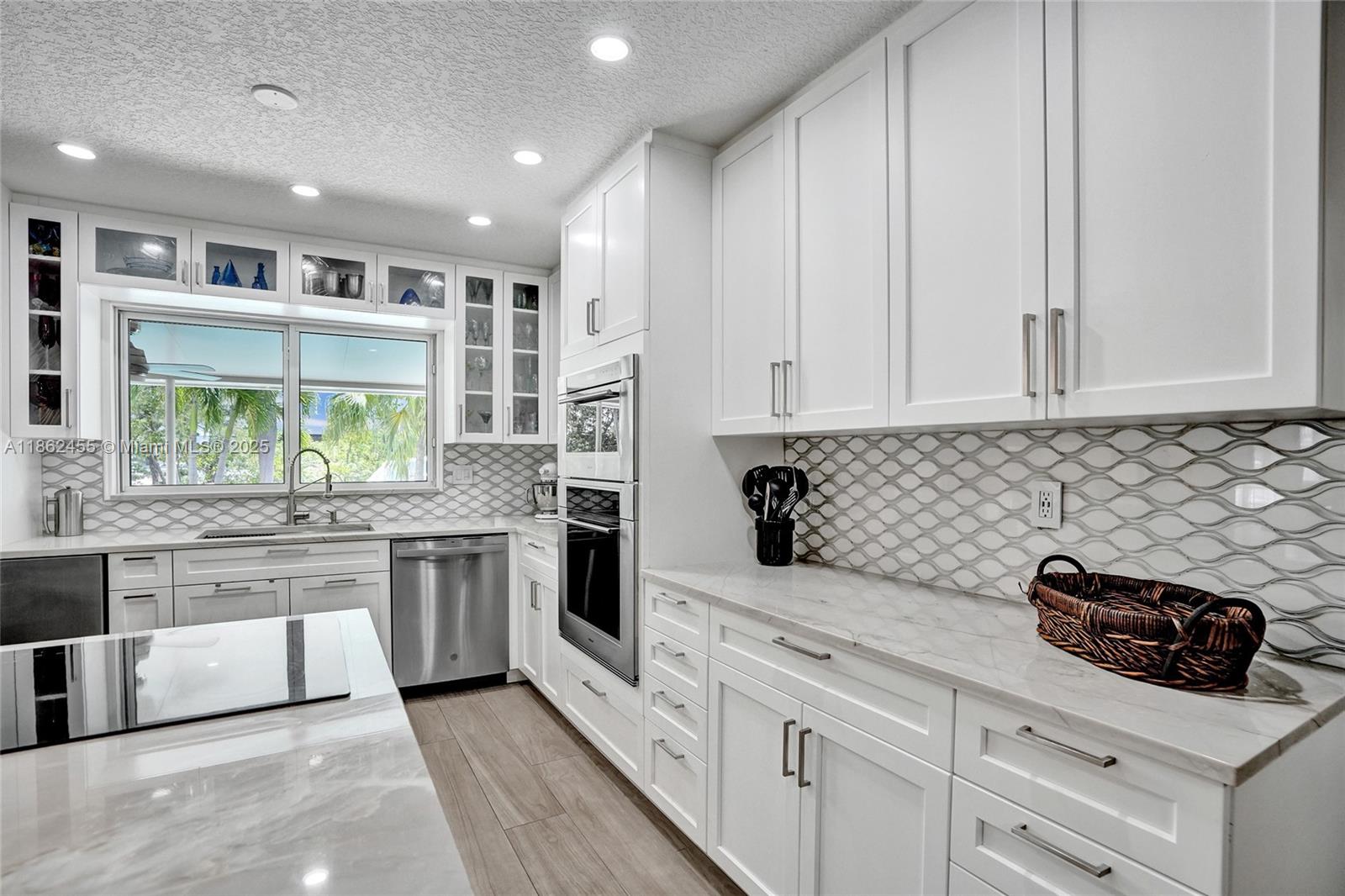 Waterfront Boaters Paradise with only one fixed bridge to the Ocean! Beautifully updated canal-front home features include tile flooring in main areas, vaulted ceilings, knockdown textured walls/ceilings, & crown molding. Chef’s kitchen with Stainless Steel appliances- Sub-Zero fridge, Wolf double oven, microwave/confection, center island, extra icemaker & wine cooler. Spacious bedrooms all with large closets, updated bathrooms including cabana bath for convenience in/out to the pool. Step outside to your backyard Oasis- oversized patio, heated saltwater pool with waterfall, paved deck, custom tiki bar w/ grill, 70’ dock with water, electric, shower & 14,000lb Neptune boat lift, dock Circular driveway& Fenced yard, this home is move-in-ready—perfect for year-round waterfront living!
