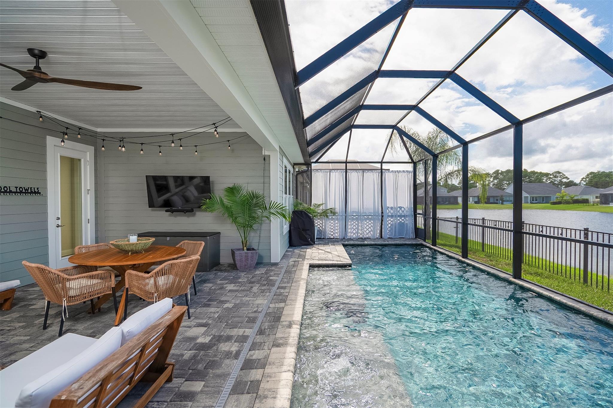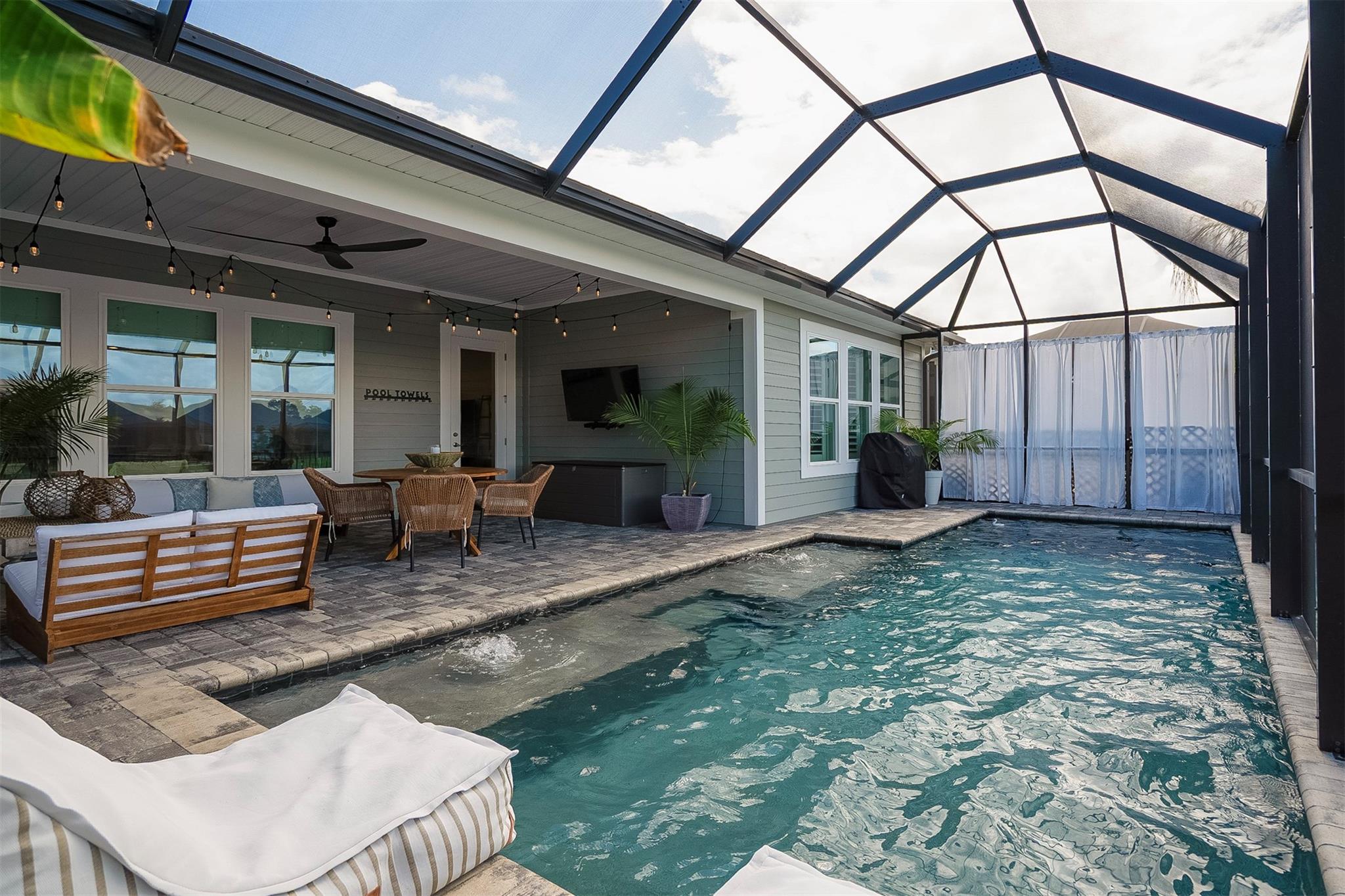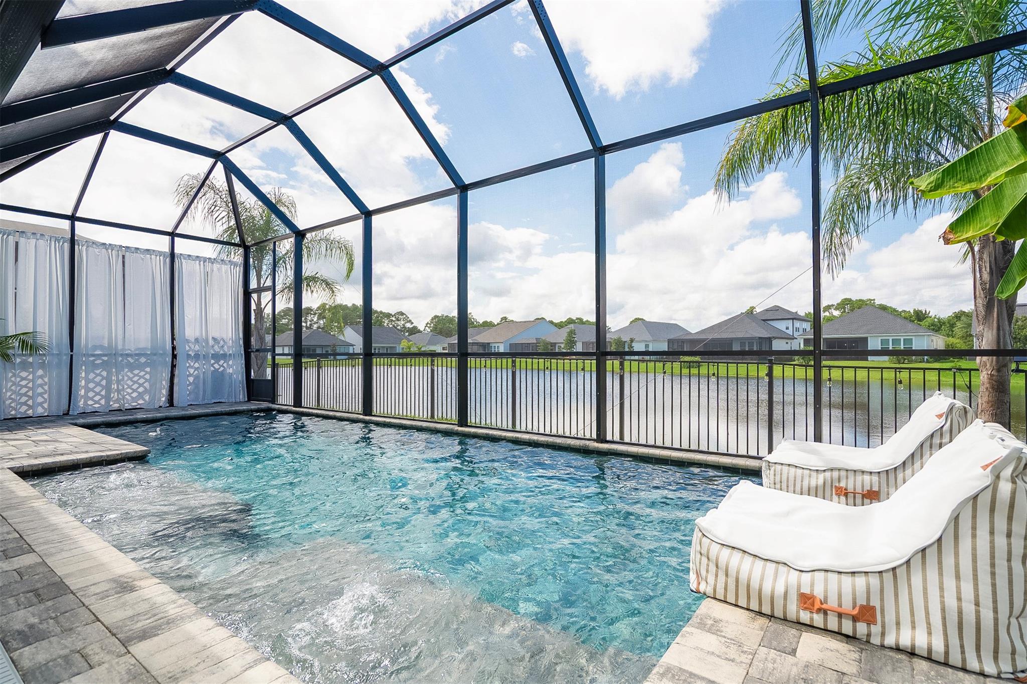 FLEEING NEW YORK? YOUR SEARCH ENDS HERE! THIS IS A DESIGNER DECORATED, POOL HOME, FOR THE MOST DISCERNING BUYERS!! Minutes to historic downtown & beaches, and located in a great school district, this home has it all! A screen enclosed, heated, saltwater pool w/ LED pool lights & sundecks. Natural GAS Upgraded Kitchen and baths. Plantation shutters & electronic smart shades throughout. Cameras on exterior of property w/ SMART LED lighting & whole home security system. A fenced yard with landscape updates & Rachio SMART irrigation system. Ethernet wired. Gutters installed & EZ Garage Solutions transformation (storage, work bench & flooring) Attic ladder with wood flooring over garage for storage. Fourth bedroom with French doors is a flex room used as an office. Furnishings negotiable.