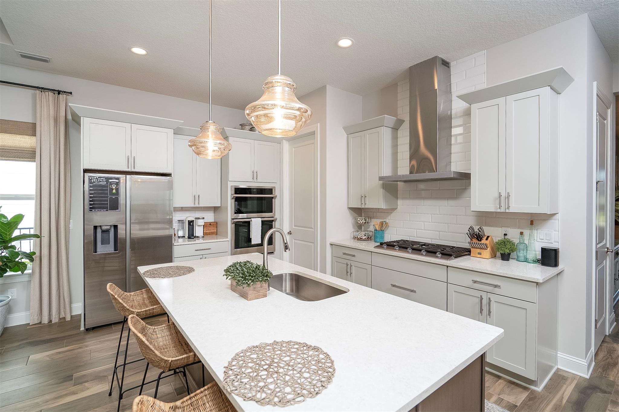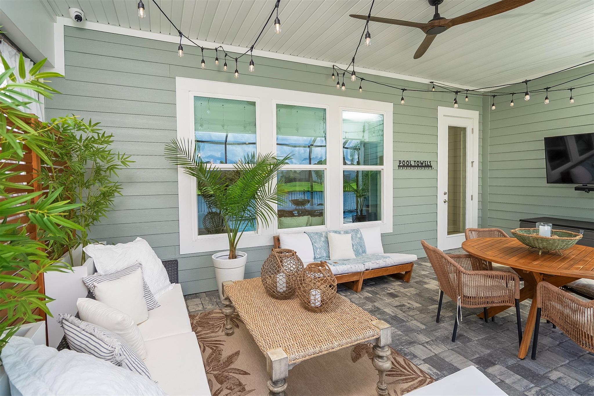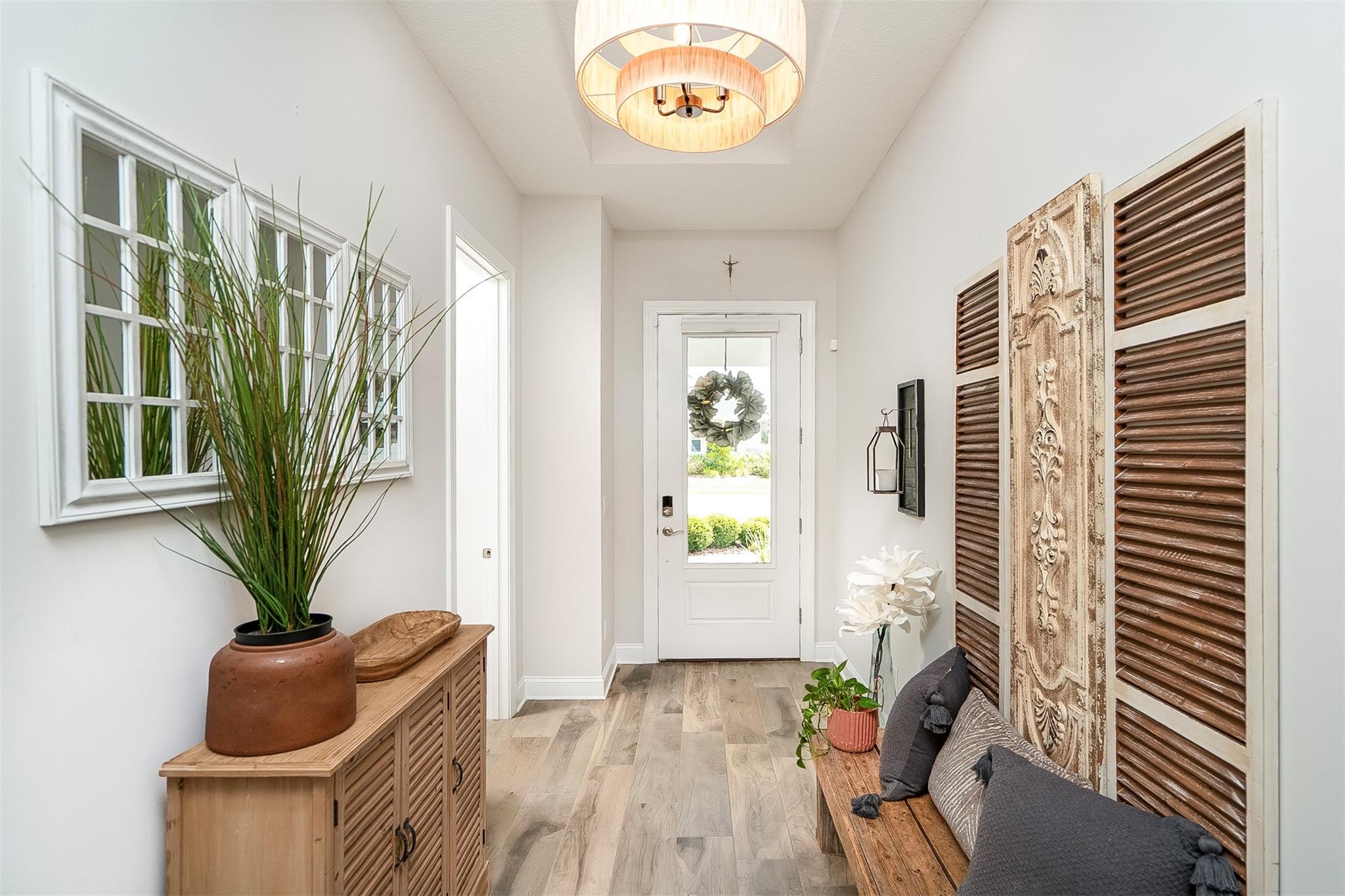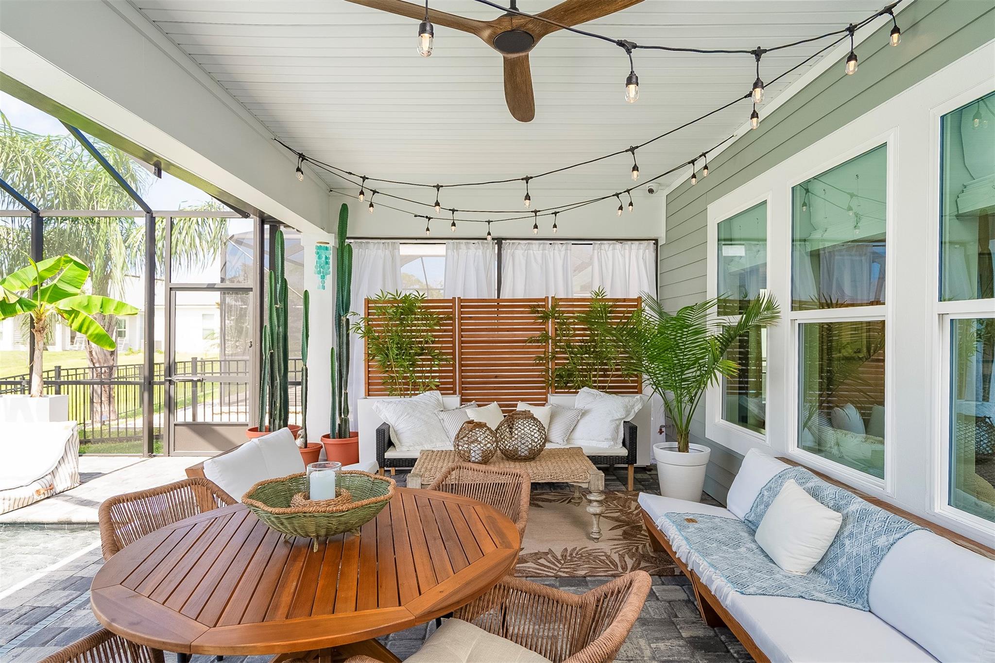 FLEEING NEW YORK? YOUR SEARCH ENDS HERE! THIS IS A DESIGNER DECORATED, POOL HOME, FOR THE MOST DISCERNING BUYERS!! Minutes to historic downtown & beaches, and located in a great school district, this home has it all! A screen enclosed, heated, saltwater pool w/ LED pool lights & sundecks. Natural GAS Upgraded Kitchen and baths. Plantation shutters & electronic smart shades throughout. Cameras on exterior of property w/ SMART LED lighting & whole home security system. A fenced yard with landscape updates & Rachio SMART irrigation system. Ethernet wired. Gutters installed & EZ Garage Solutions transformation (storage, work bench & flooring) Attic ladder with wood flooring over garage for storage. Fourth bedroom with French doors is a flex room used as an office. Furnishings negotiable.