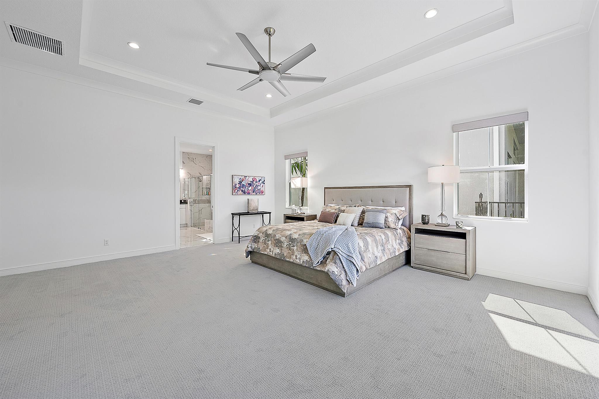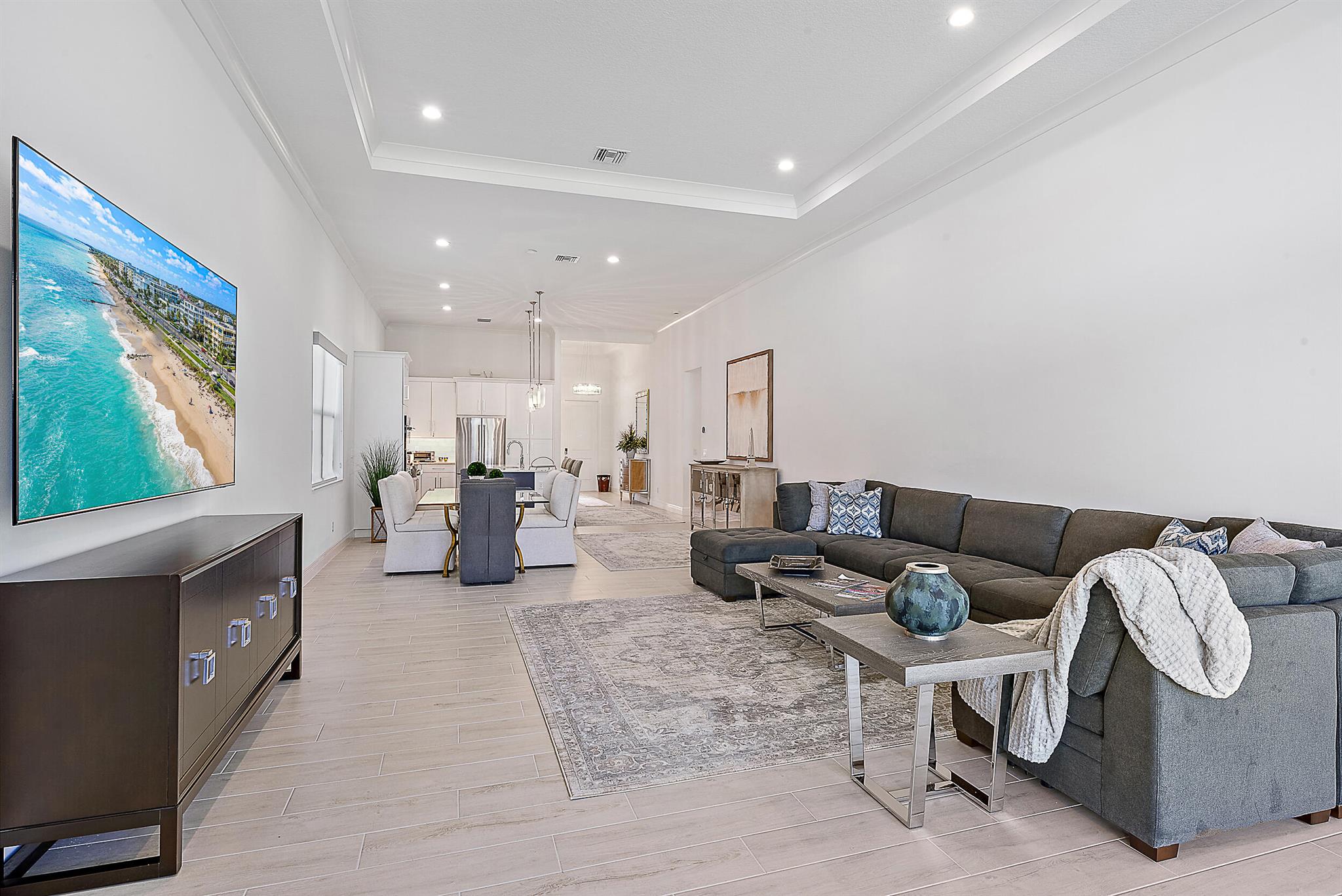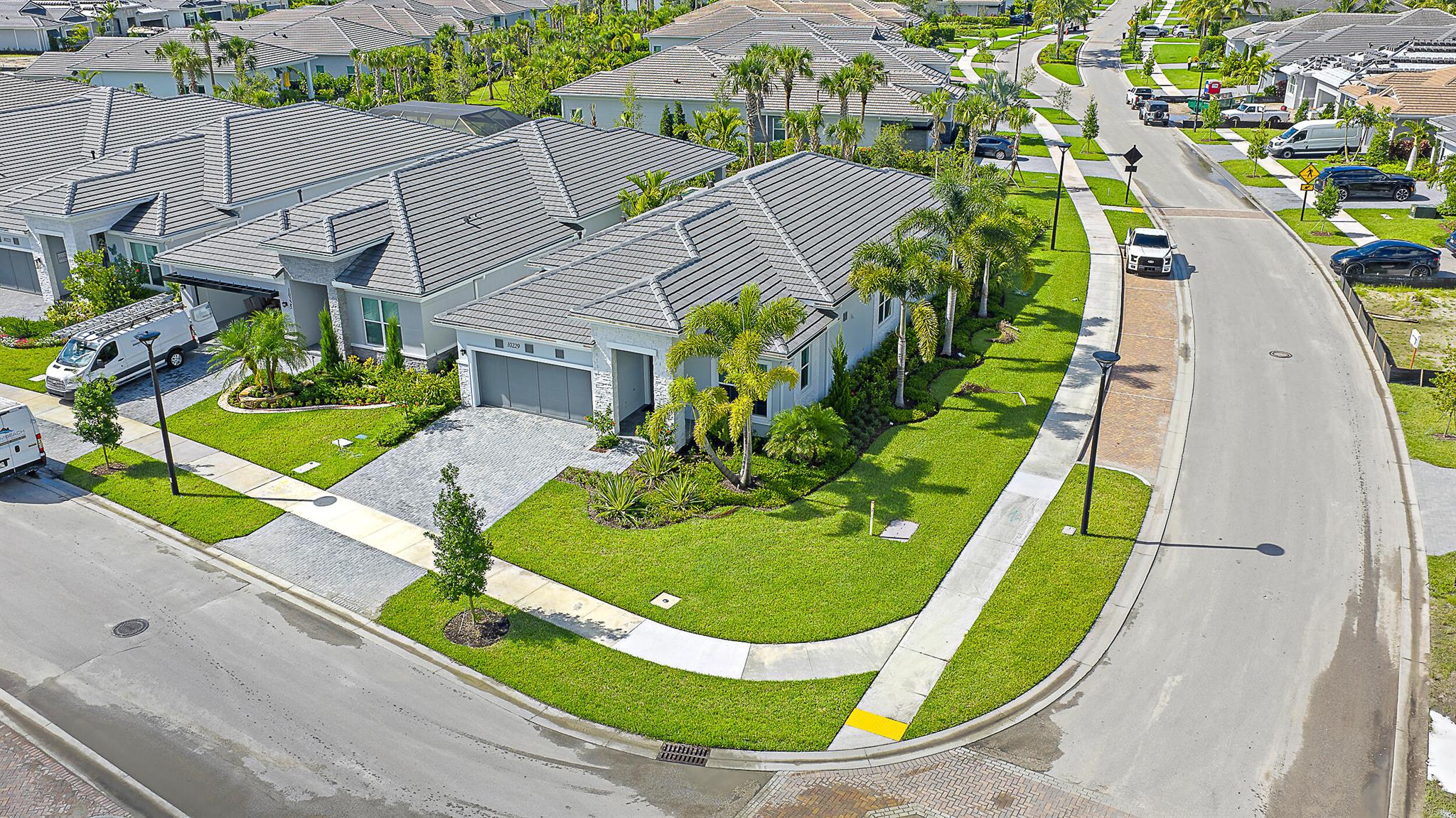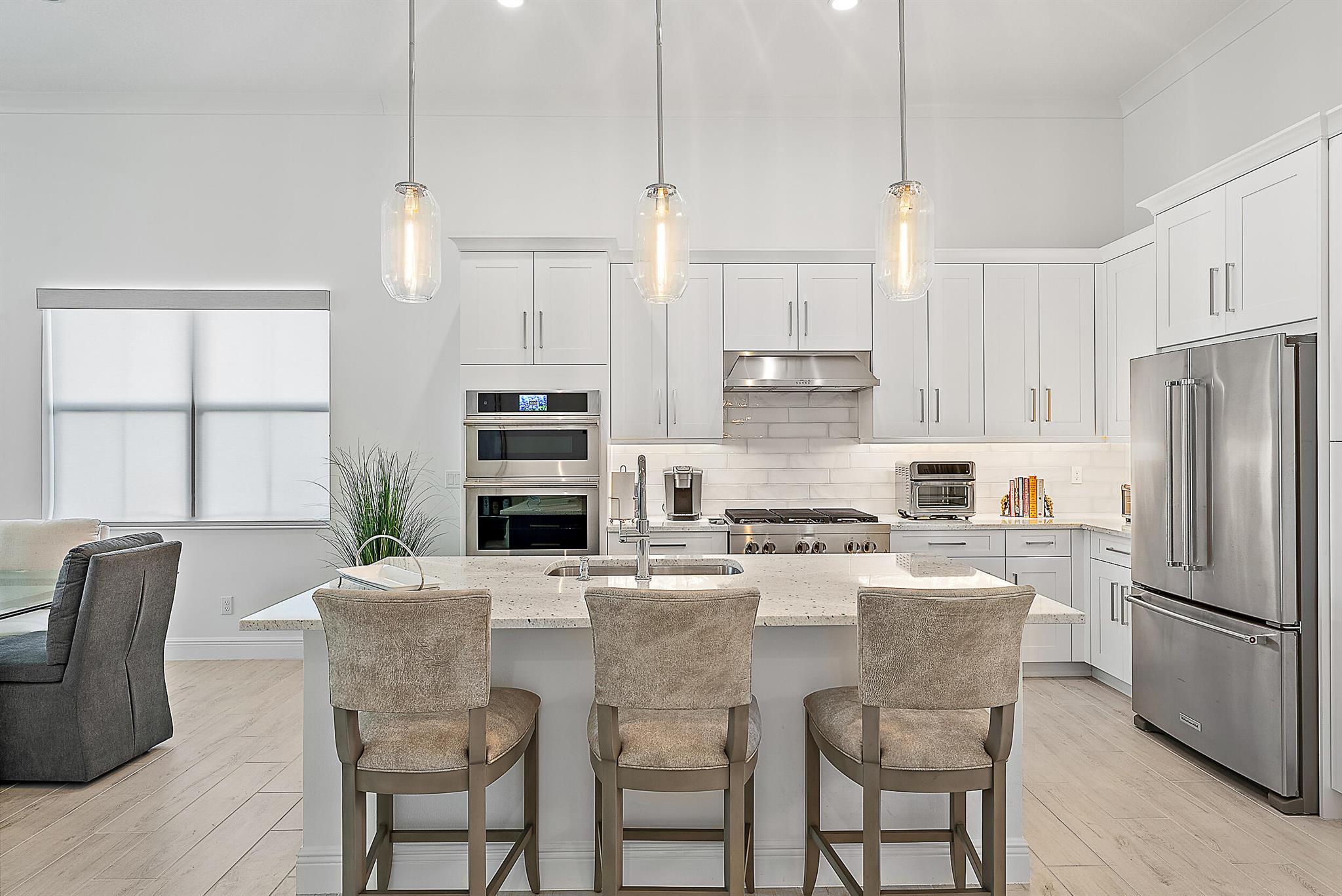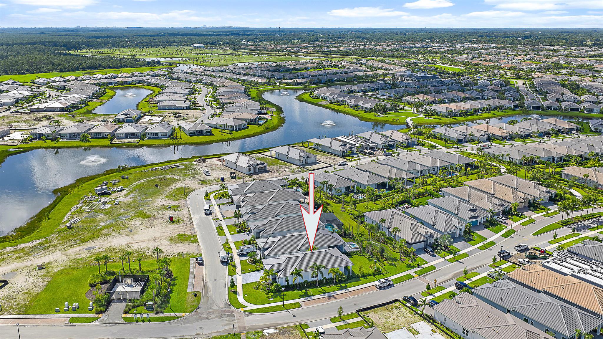 Set on a premium corner lot with lush landscaping and upgraded exterior finishes, this expanded Samantha model blends space, style, and easy single-level living. The great room and primary suite were enlarged for everyday comfort and effortless entertaining. A flexible den with a beautiful bookcase works as an office, library, or potential third bedroom. The open plan showcases a tray-ceiling great room and dining area anchored by a gourmet kitchen with an oversized island, professional-grade appliances, and a reach-in pantry. A spa-style primary suite and covered lanai create seamless indoor-outdoor living. Enjoy country-club-style amenities--no equity membership required--in Regency at Avenir's resort-style 55+ community.