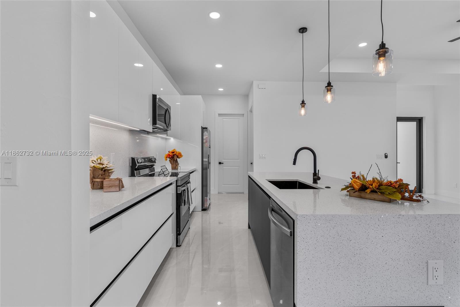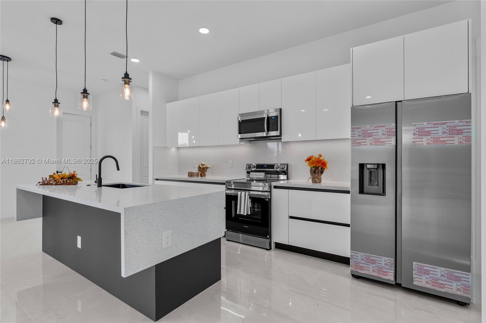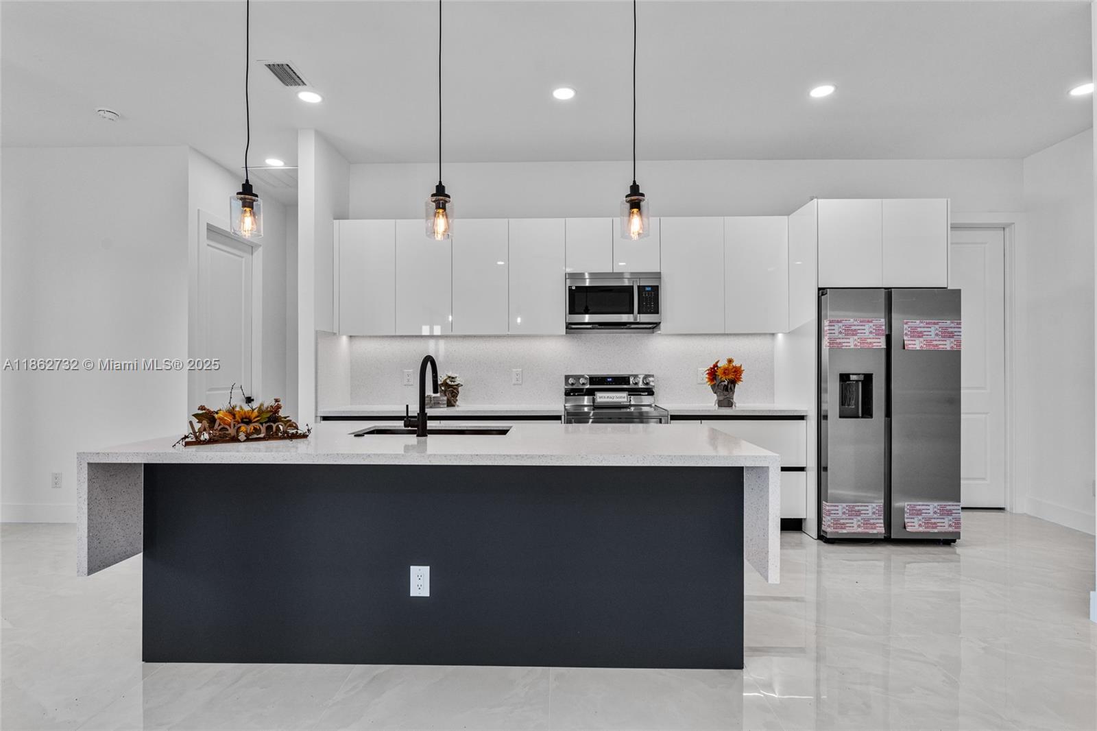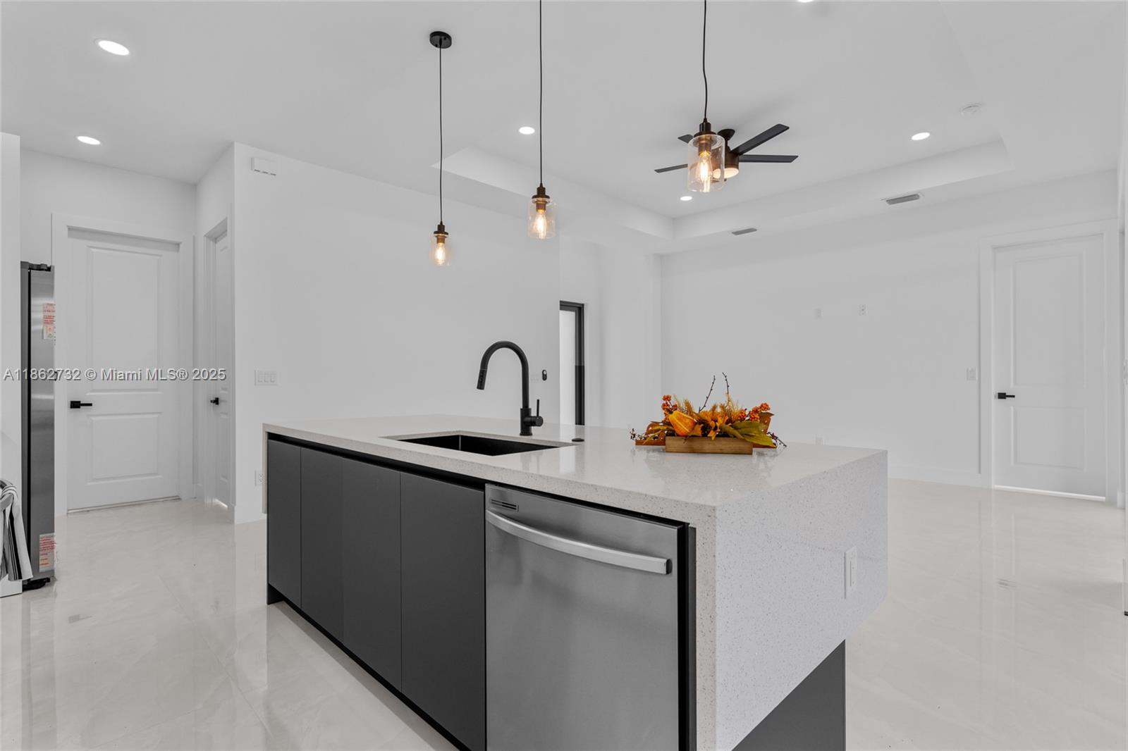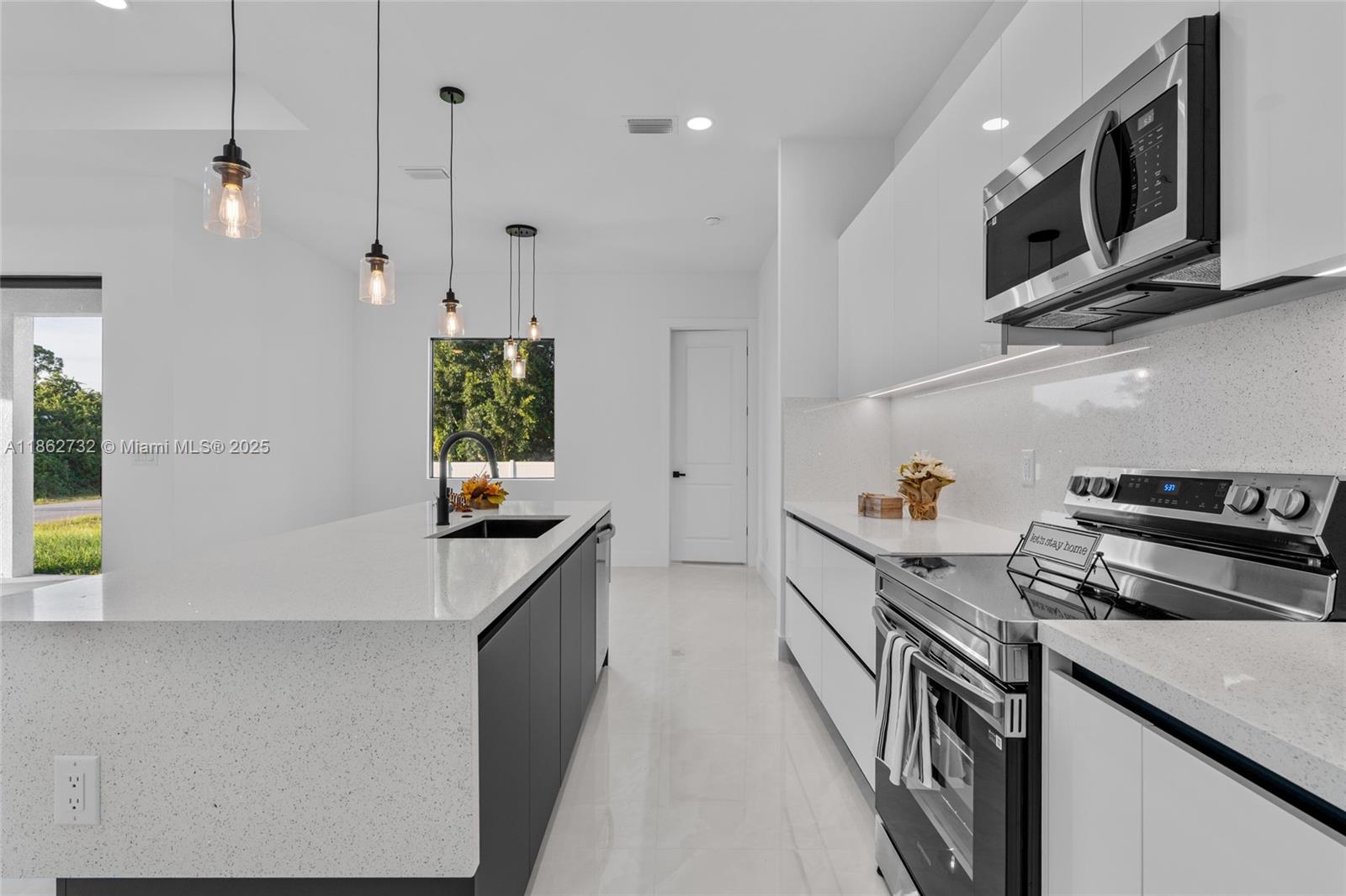 Discover this beautiful new contemporary 3 beds + den, 2.5 baths home on a prime corner lot in Lehigh Acres, Florida. Enjoy quartz countertops, porcelain floors, stainless steel appliances, and a stunning Chef's kitchen. The versatile den can be a 4th bedroom or office. Features include a guest bath with outdoor access, in-house laundry and a large driveway/walkway. Close to shops and dining — schedule your tour today!
