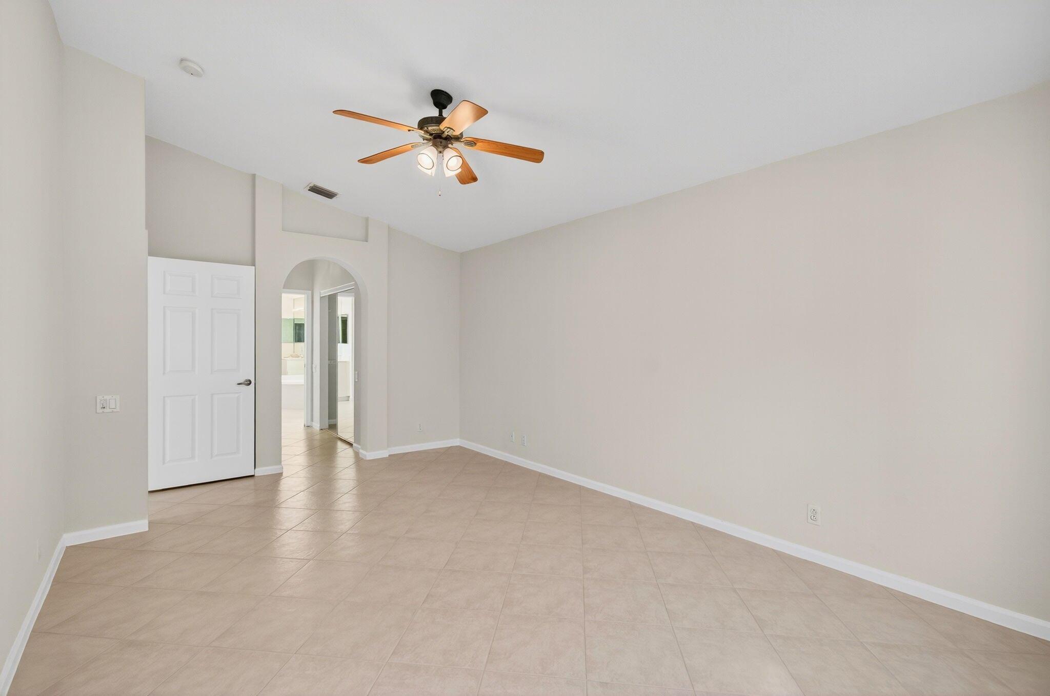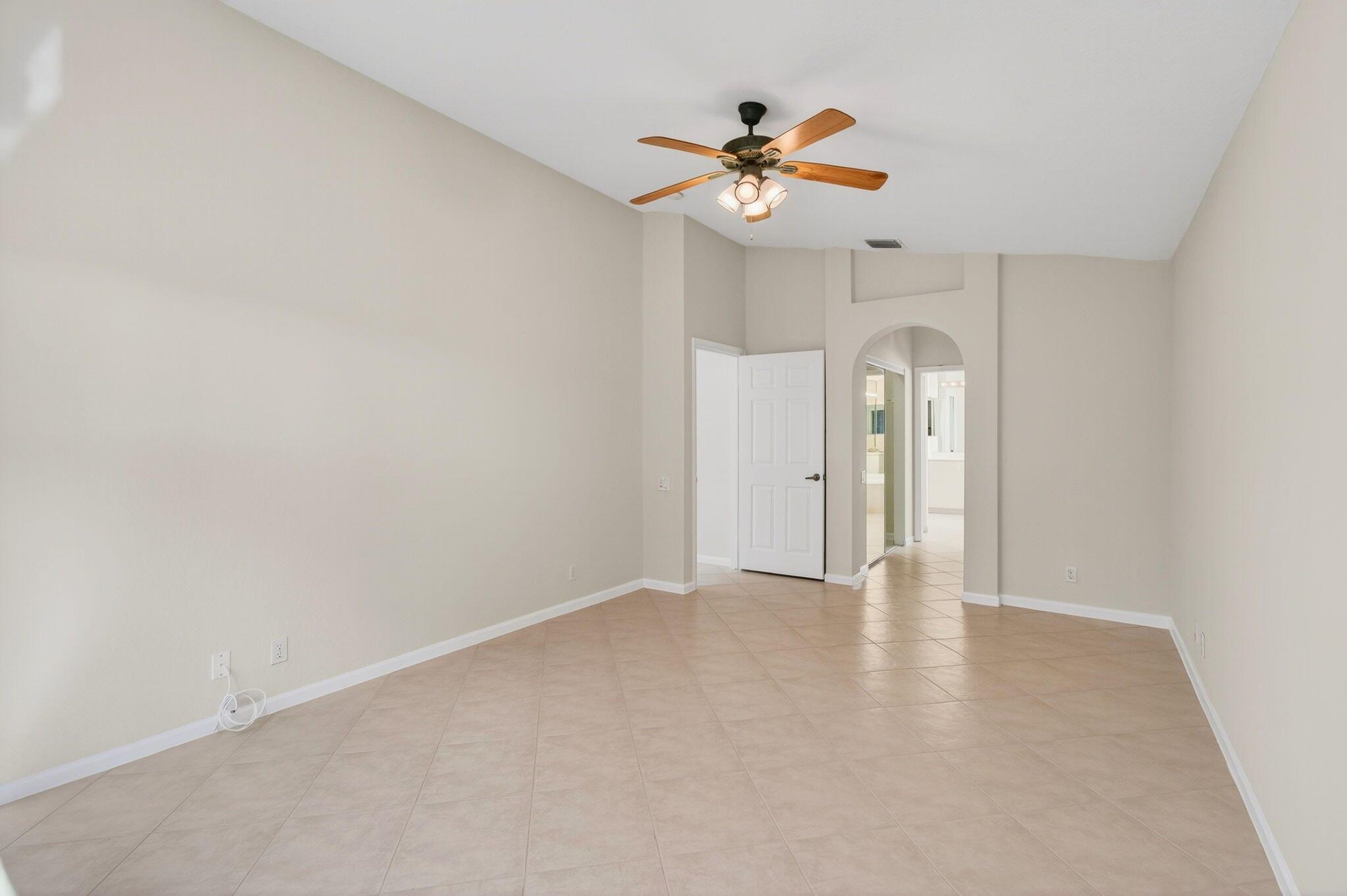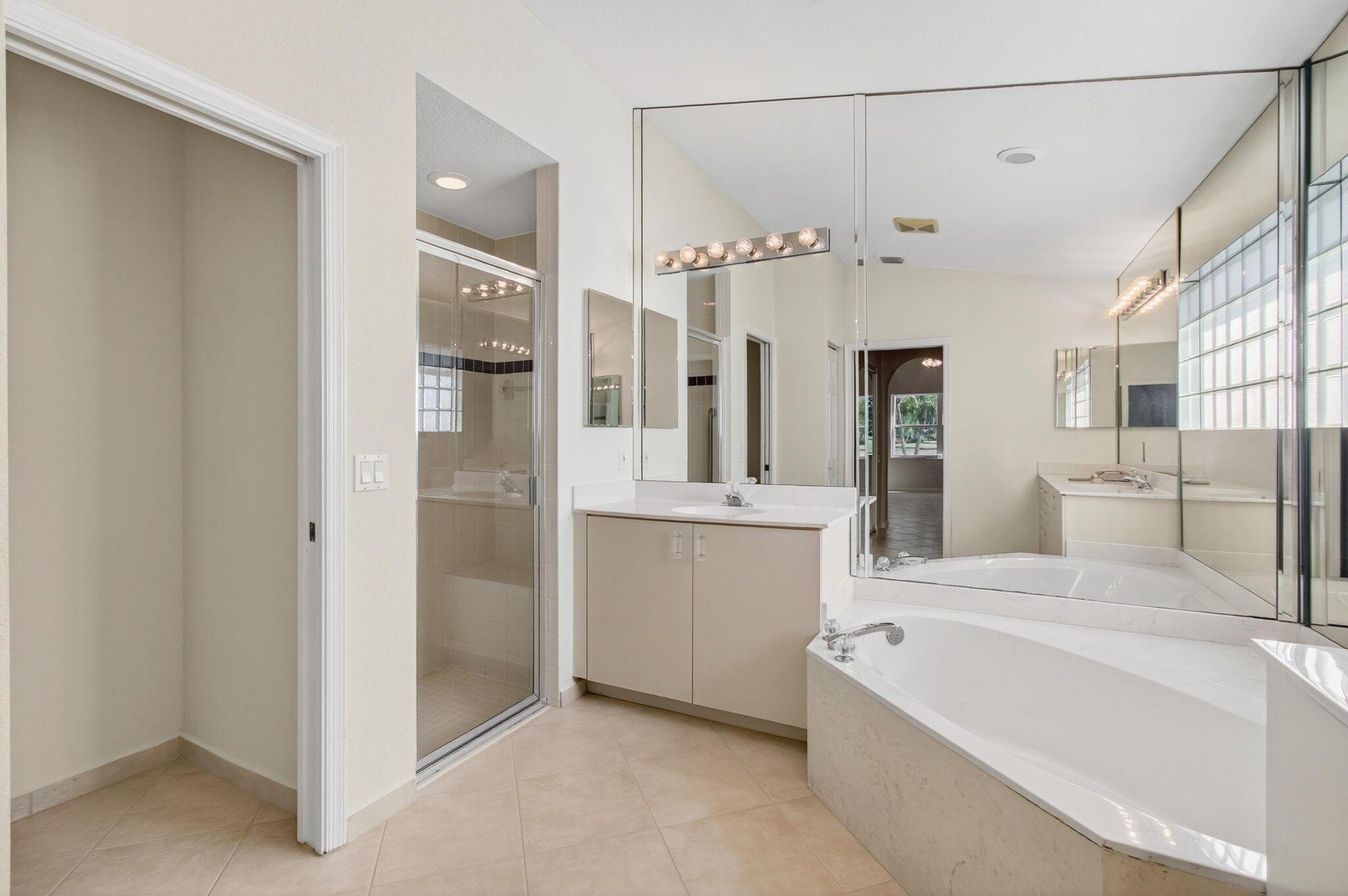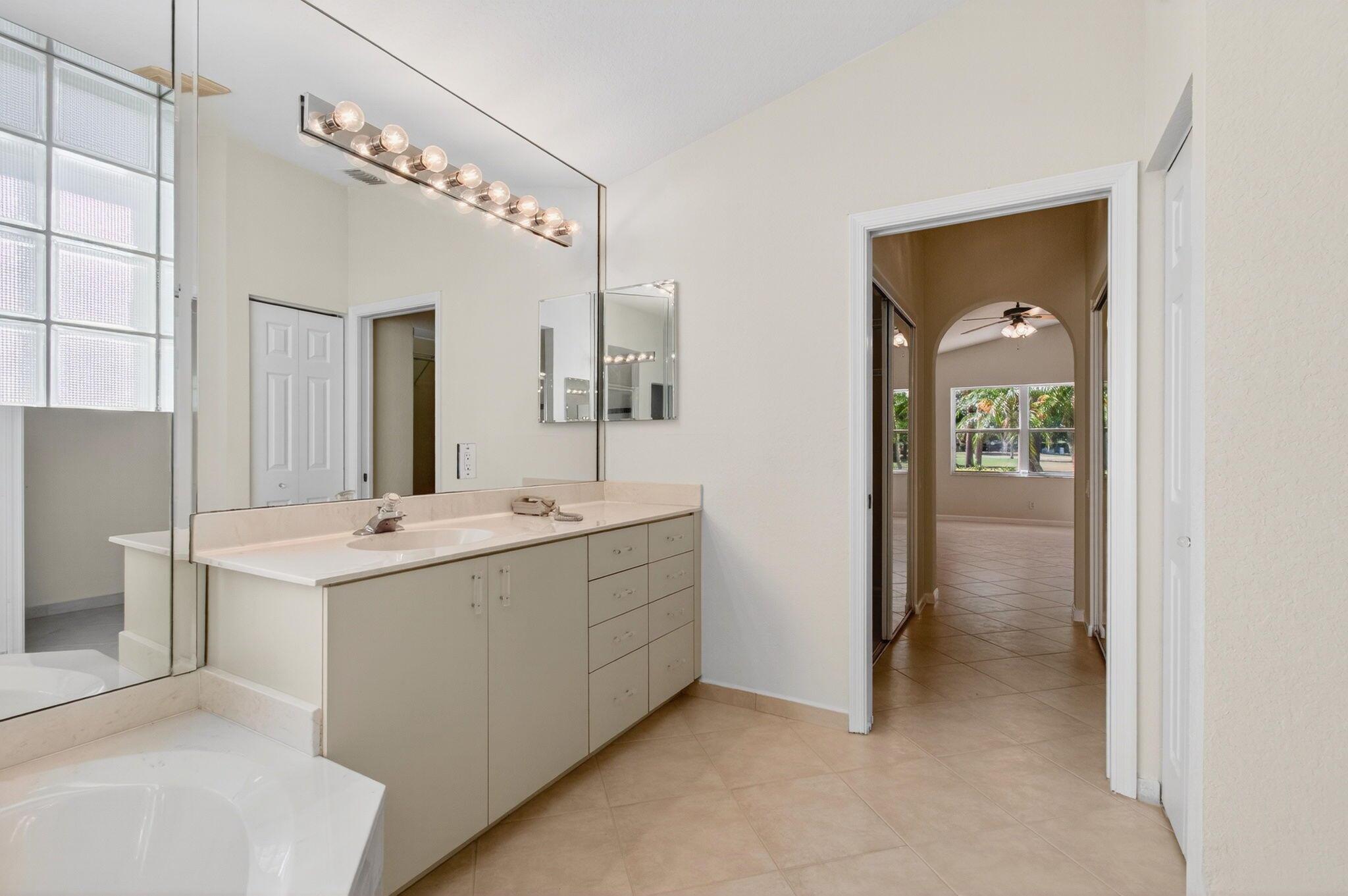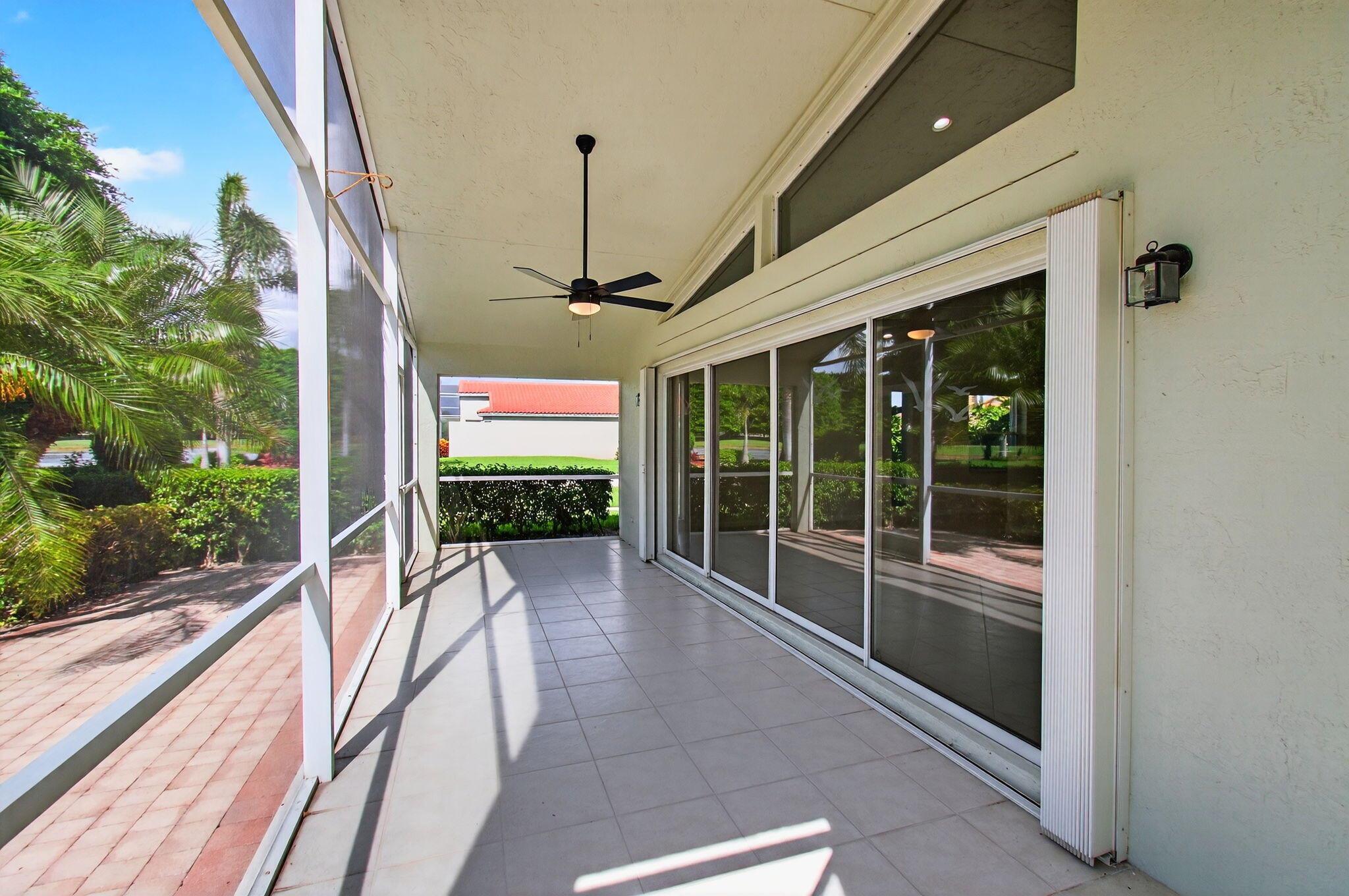 Wake up to gorgeous golf course views in this 2-bedroom plus den Balmoral floor plan home in the desirable Cascades community of Boynton Beach. This corner home offers over 1,800 sq. ft. of open living space with tile flooring throughout and a bright, airy layout that seamlessly connects the living, dining, and kitchen areas.The kitchen features black stainless steel appliances and an eat-in area that overlooks the golf course, making it the perfect spot to enjoy your morning coffee or host casual meals with friends. The split bedroom layout ensures privacy, with the second bedroom and full bath located at the front of the home. The primary suite includes a walk-in closet, double sinks, and a separate tub and shower, creating a serene retreat.
