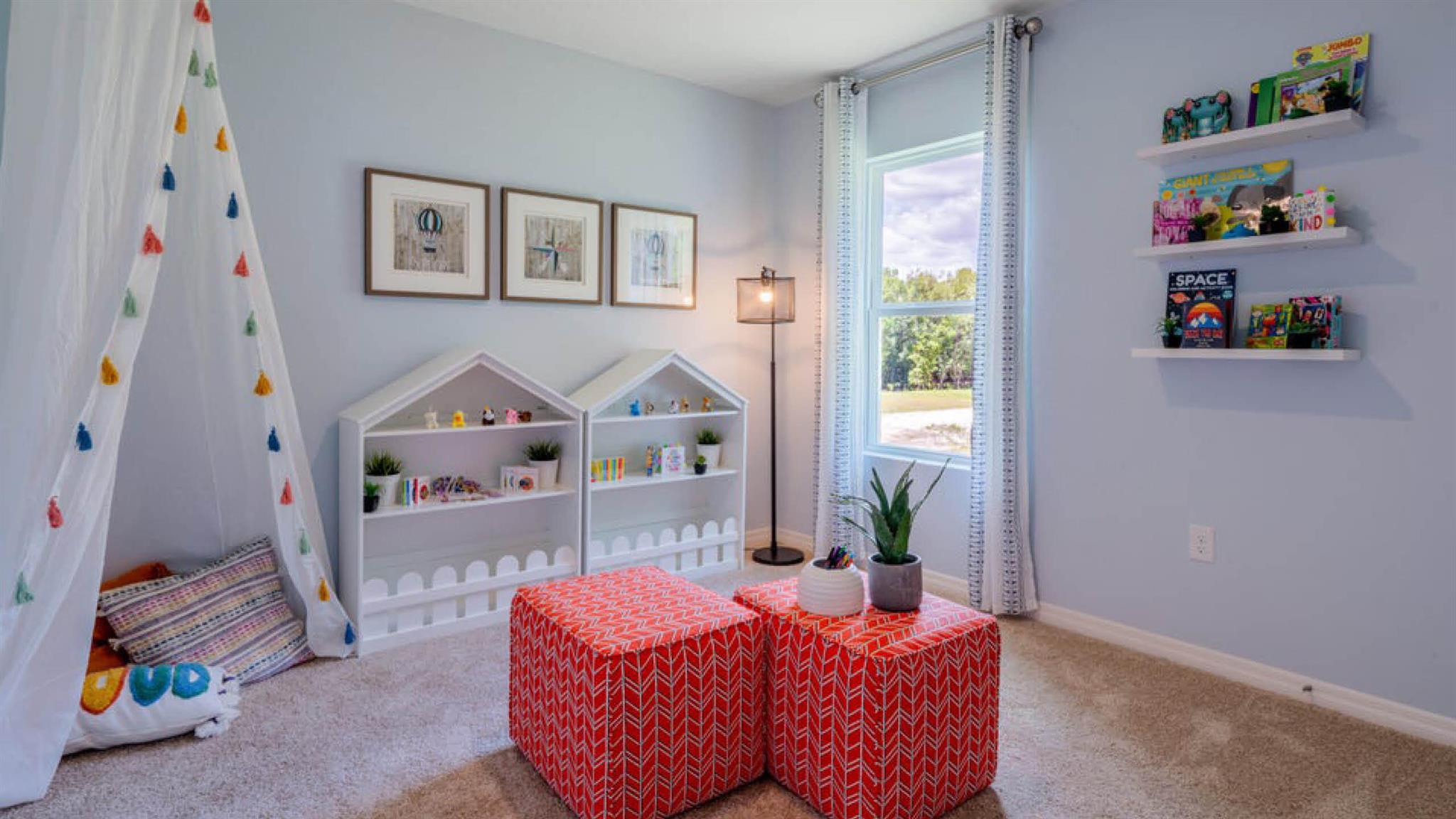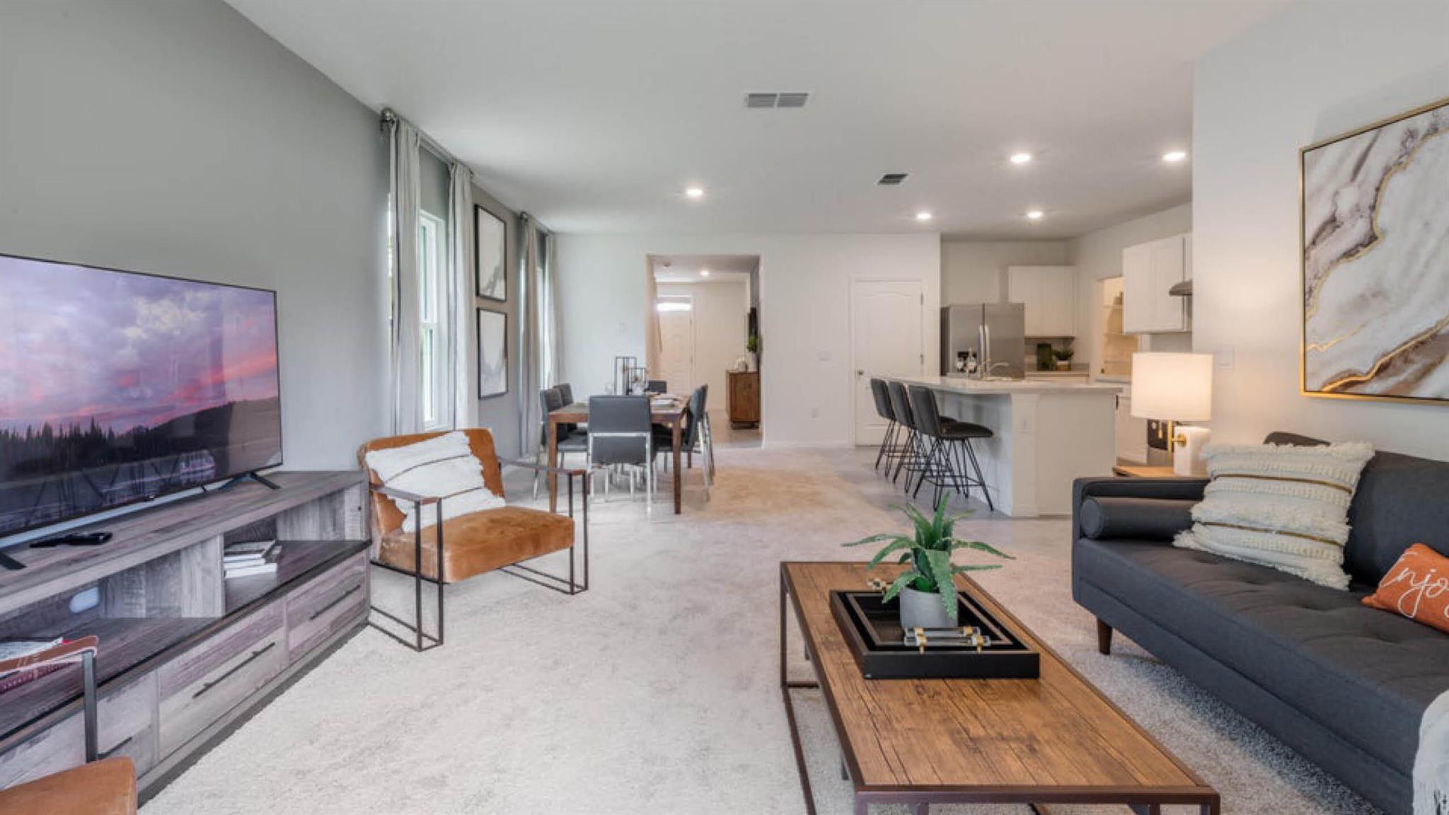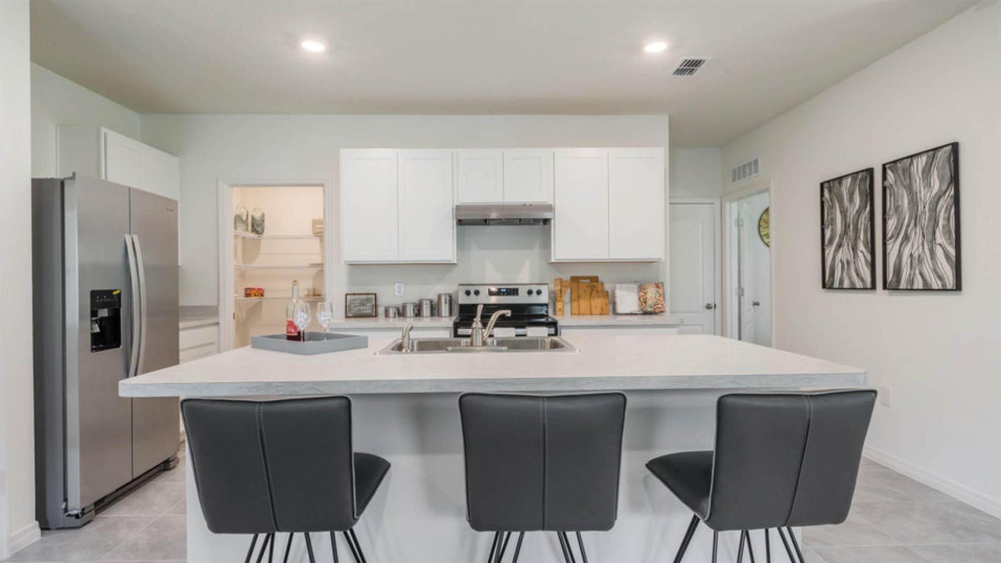 The Robie is a beautiful two-story floorplan at Morningside in Fort Pierce, Florida. This 5-bedroom, 3-bathroom home offers 2,447 sq. ft. of living space. The open-concept first floor features oversized tile in the main living and wet areas, plus a kitchen with quartz countertops, an oversized single-bowl undermount sink, and sleek stainless-steel appliances. A downstairs bedroom and full bathroom add convenience. Upstairs, the primary bedroom boasts a walk-in closet and ensuite, while three additional bedrooms share a full bathroom. Smart home technology is included.