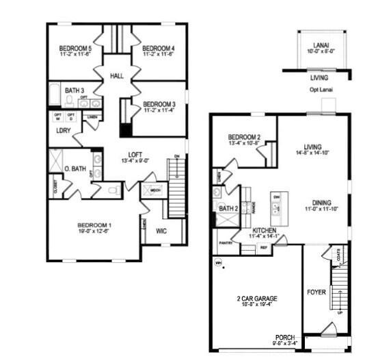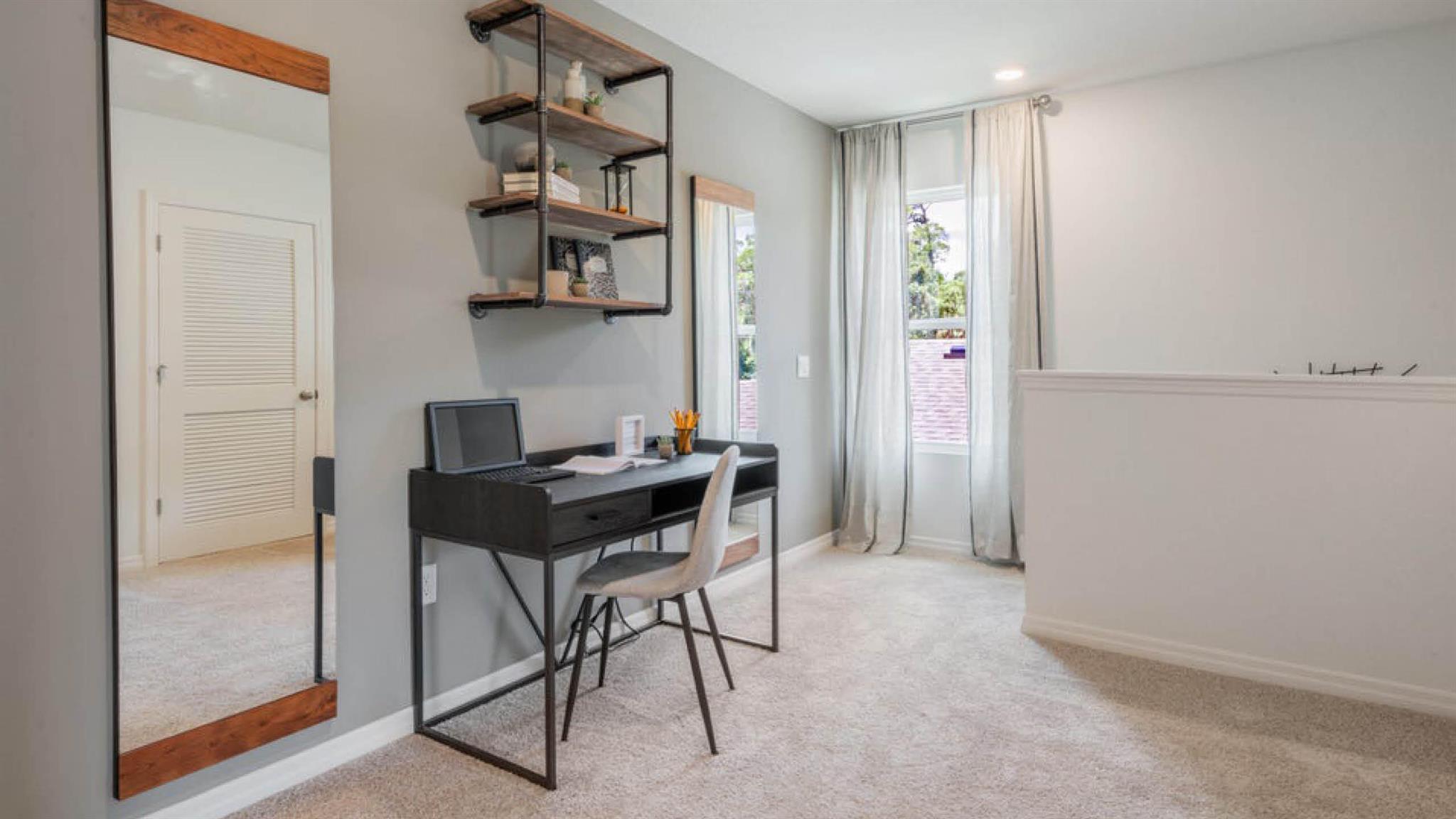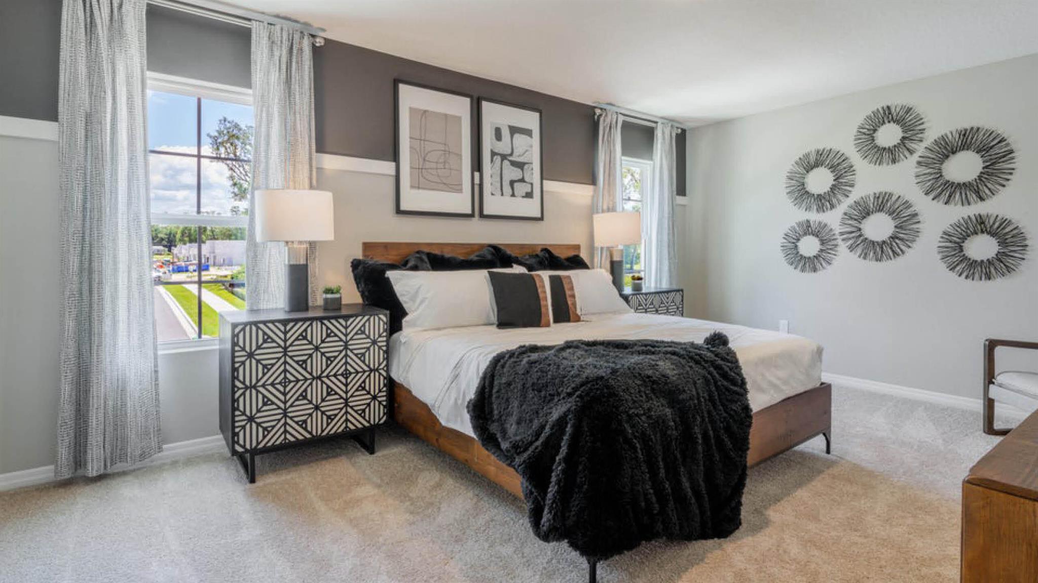 The Robie is a beautiful two-story floorplan at Morningside in Fort Pierce, Florida. This 5-bedroom, 3-bathroom home offers 2,447 sq. ft. of living space. The open-concept first floor features oversized tile in the main living and wet areas, plus a kitchen with quartz countertops, an oversized single-bowl undermount sink, and sleek stainless-steel appliances. A downstairs bedroom and full bathroom add convenience. Upstairs, the primary bedroom boasts a walk-in closet and ensuite, while three additional bedrooms share a full bathroom. Smart home technology is included.