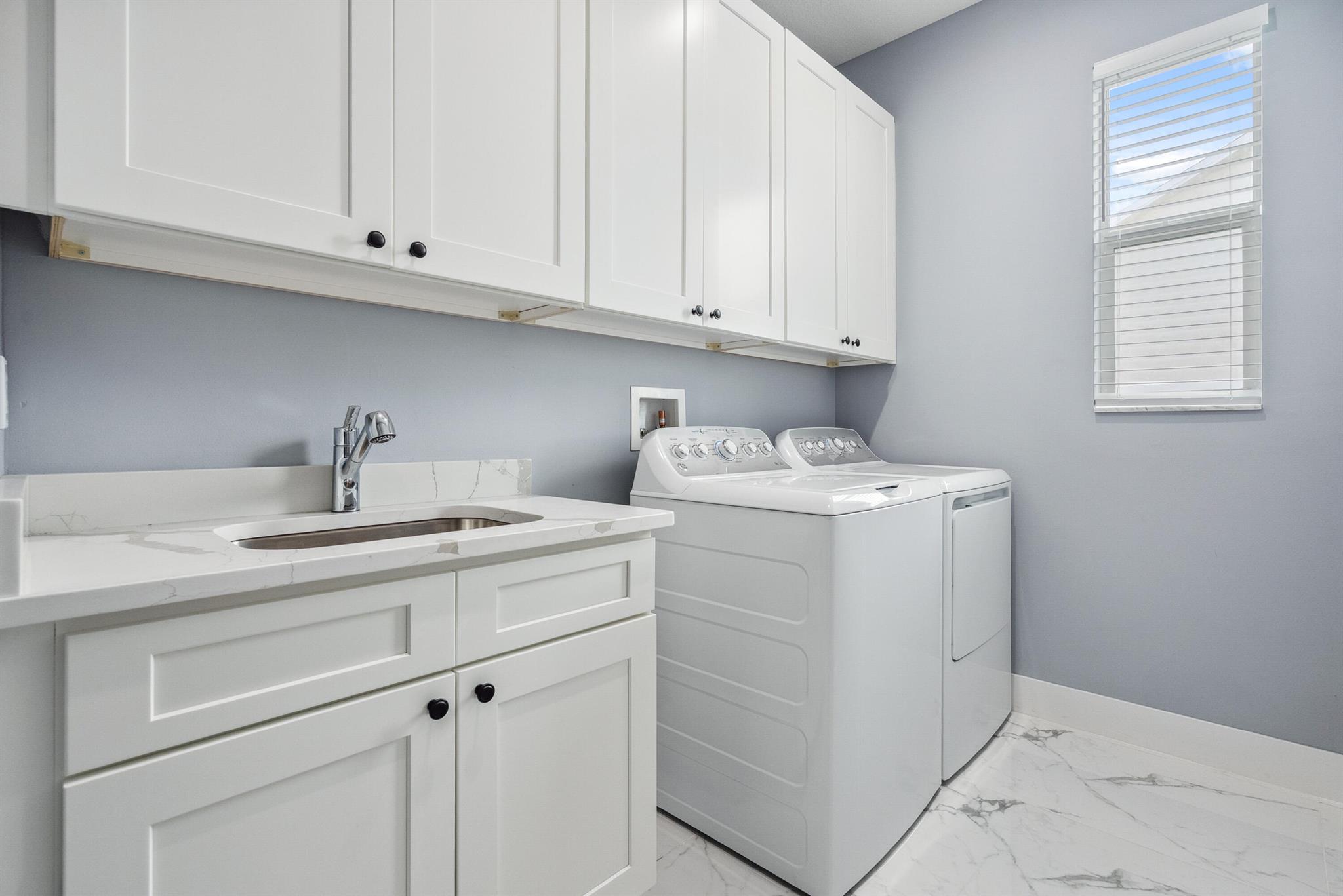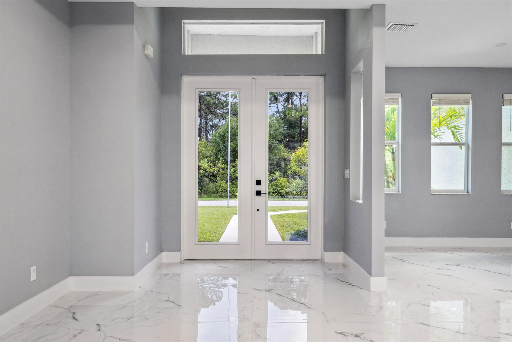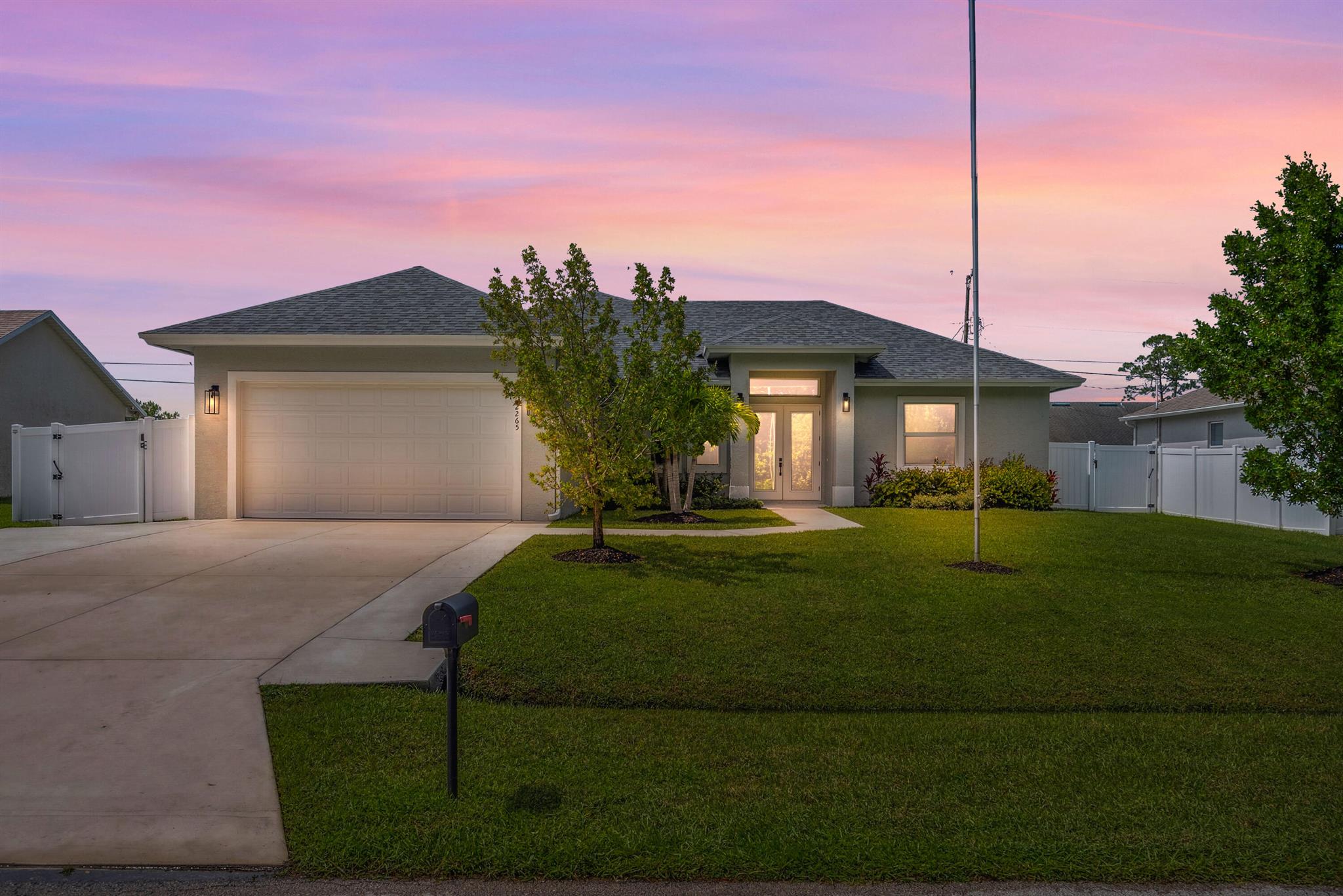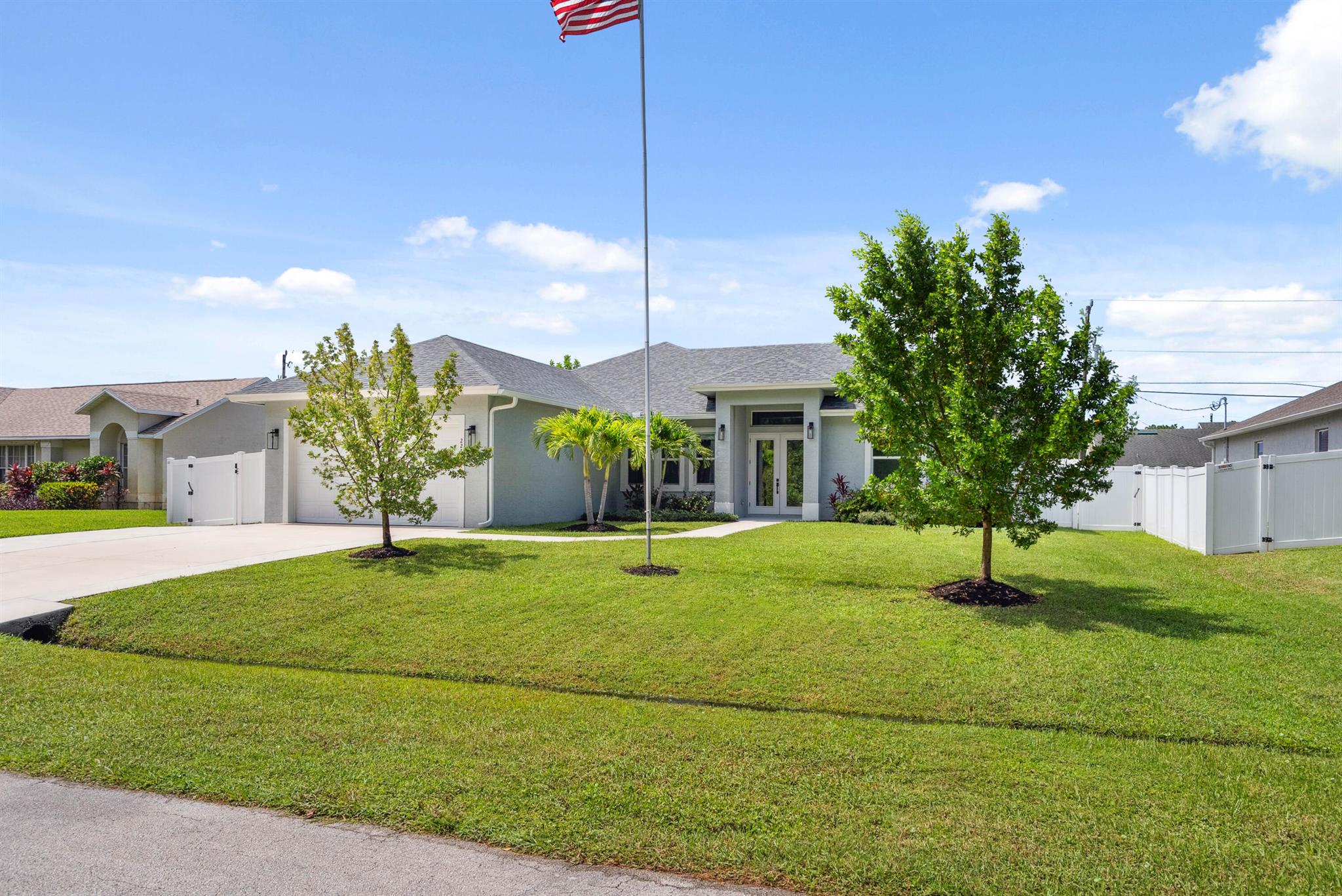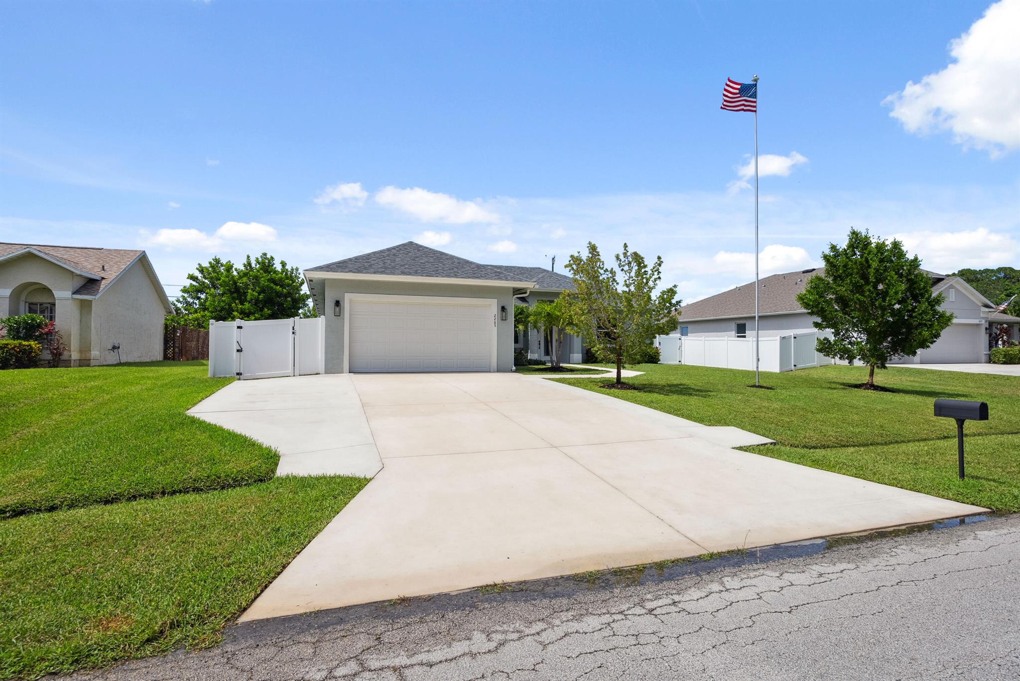 Pool home with a heated infinity spa! Fully fenced in yard for your pups! Only 1.4 miles to Tradition Square without having to pay the HOA or additional taxes to live in Tradition & only 52 minutes to the WPB Airport, making it an easy commute for a potential second home. Walking distance to Starbucks. No HOA, so bring your boat/RV! ALL IMPACT windows & doors built in 2022. Upgraded porcelain tile throughout, zero carpet. Beautiful white shaker kitchen with quartz countertops that overlooks the living room adorned with a coffer ceiling and crown molding. 8ft interior doors. The backyard is perfect to spend all summer! Two featured pergolas, an outdoor shower, extended pool cool decking and covered patio that can be easily screened for indoor/outdoor living.