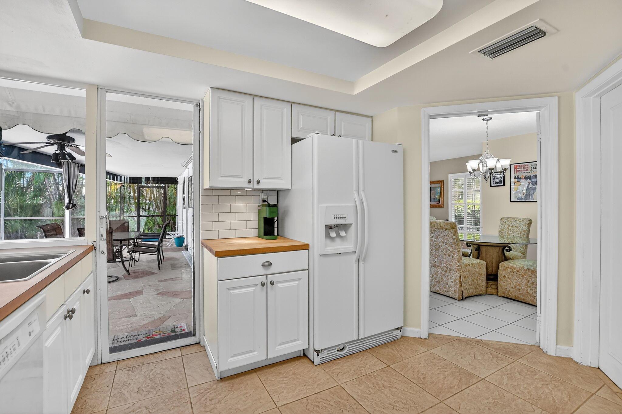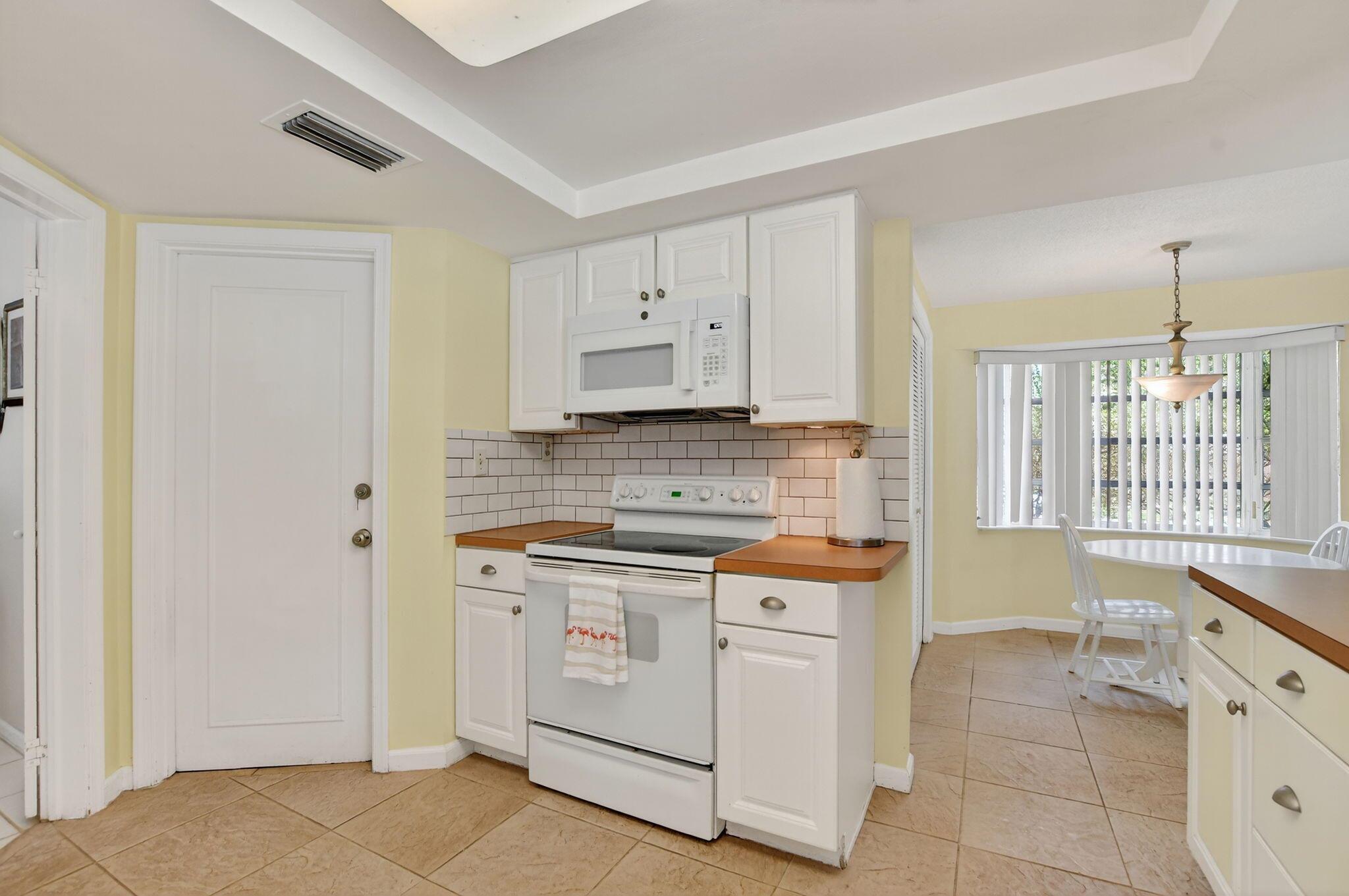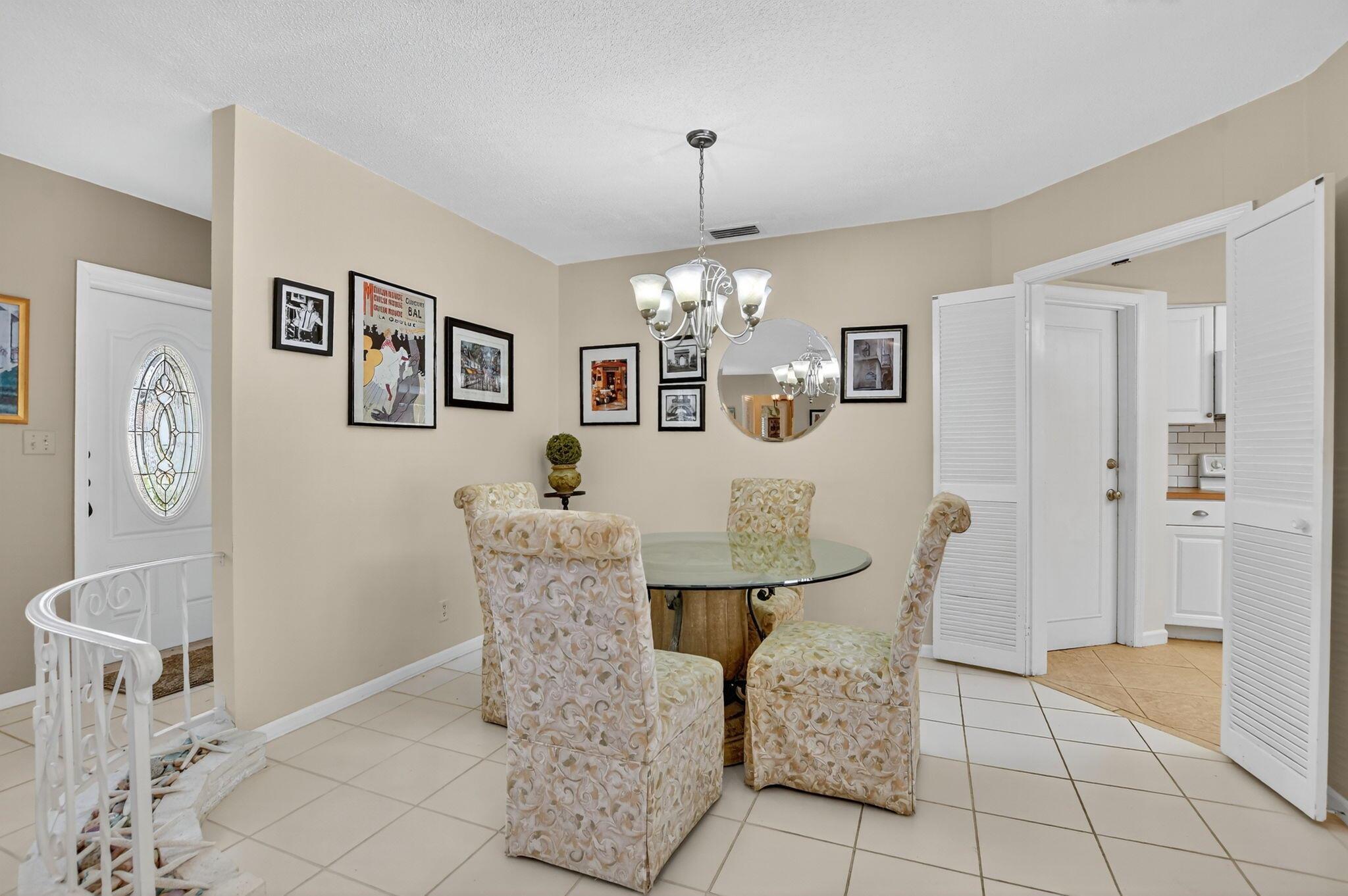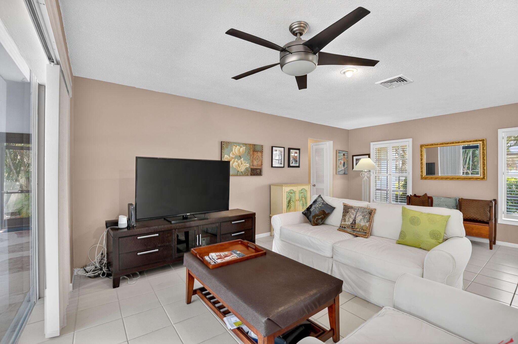 Step into PURE CHARM with this beautifully maintained two-bedroom corner-lot pool home, surrounded by lush tropical landscaping that sets the tone for a serene retreat. Nestled in one of the area's most desired neighborhoods, beautiful Paradise Palms. From the moment you arrive, the curb appeal shines-mature palm trees and vibrant greenery create a warm, welcoming entrance. Inside, the home feels light, bright and airy, with soft neutral tones, pastels and white brick, which compliments the natural sunlight pouring in through the elegant plantation shutters and sliding glass doors.