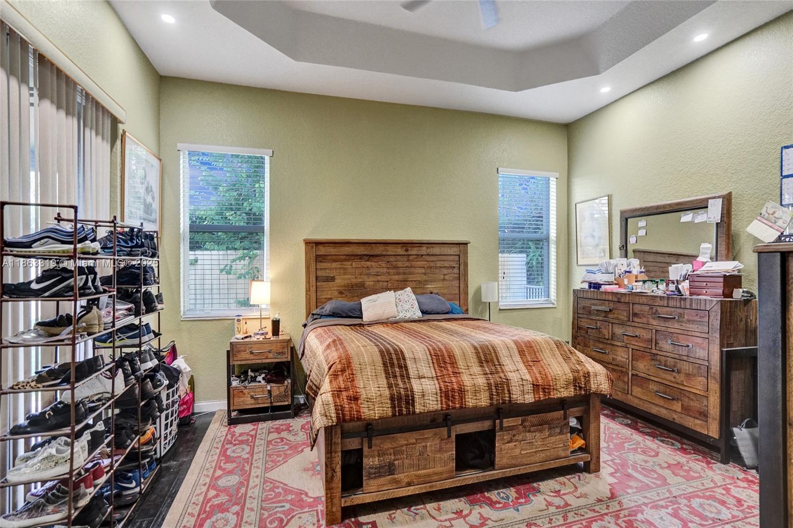 PRICED REDUCED on this 1 story Florencia model features 4 bedrooms, 2.5 bathrooms and a 3 car garage. One garage has been converted to a room that can be used in many ways. Large and spacious with a split stack bedroom plan, double door entry into a foyer overlooking a large living room and formal dining room, volume ceilings throughout. The kitchen has an overabundance of storage, breakfast area, wood cabinetry and granite countertops. Off the kitchen is a family/game room great for family fun nights. Enter the oversized master suite through a double door entry. Large walk in closet. Master bathroom has dual sinks, roman tub and a separate shower. All the closets have closet cabinetry. The home is quipped with accordion shutters for hurricane protection. Community pool and more.