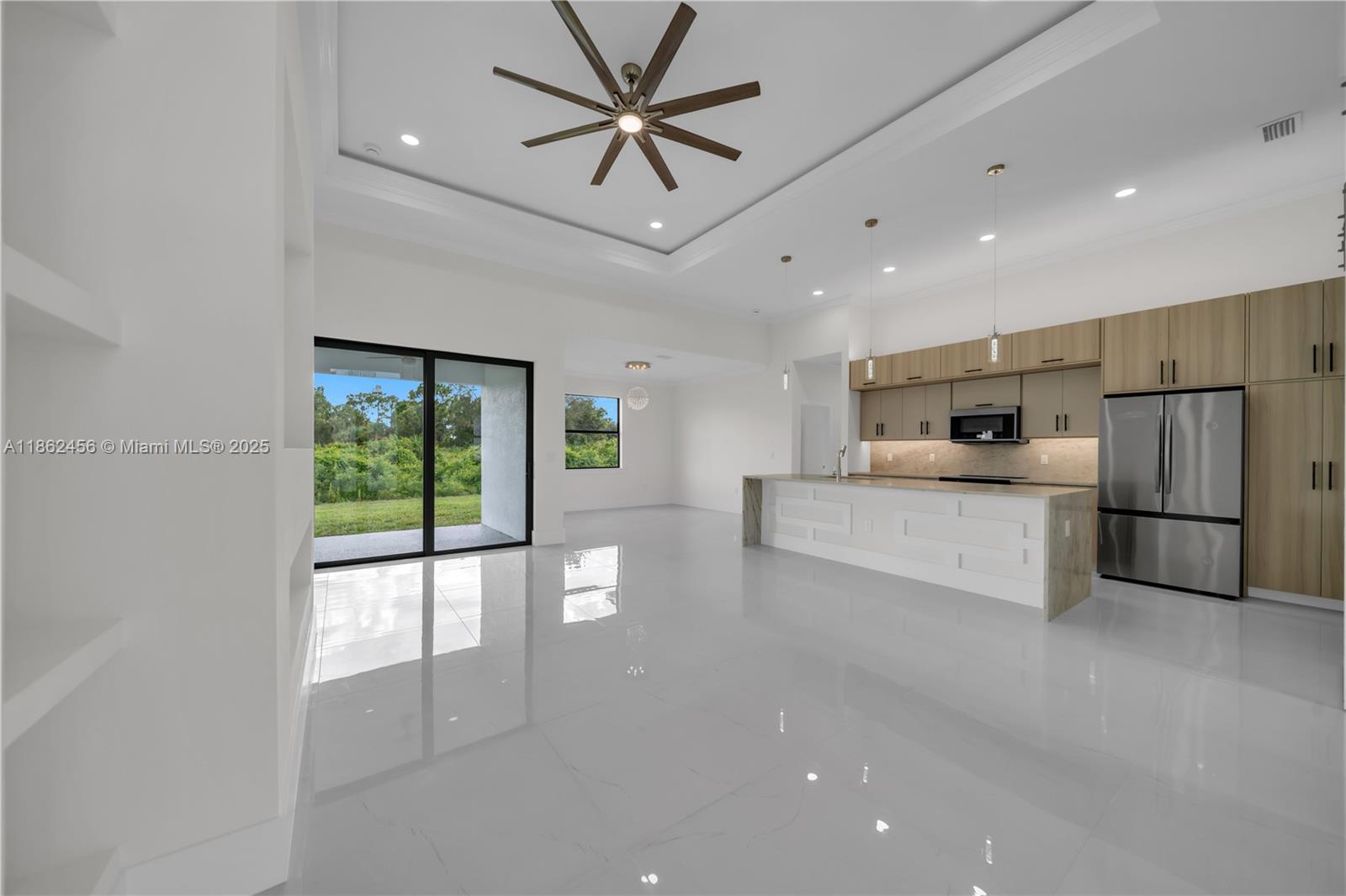 This brand-new construction features 3 bedrooms plus a den and 3 full bathrooms, offering 1,868 sq. ft. of living space with a total of 2,637 sq. ft.. The open-concept design highlights a modern kitchen with a quartz waterfall island, custom cabinetry, stainless steel appliances, and elegant pendant lighting. Large-format porcelain tile floors, soaring ceilings, and impact-resistant windows and doors provide comfort, safety, and style. Enjoy an expansive lanai with a fully equipped outdoor kitchen, perfect for entertaining or relaxing. Don’t miss this opportunity—schedule your showing today!