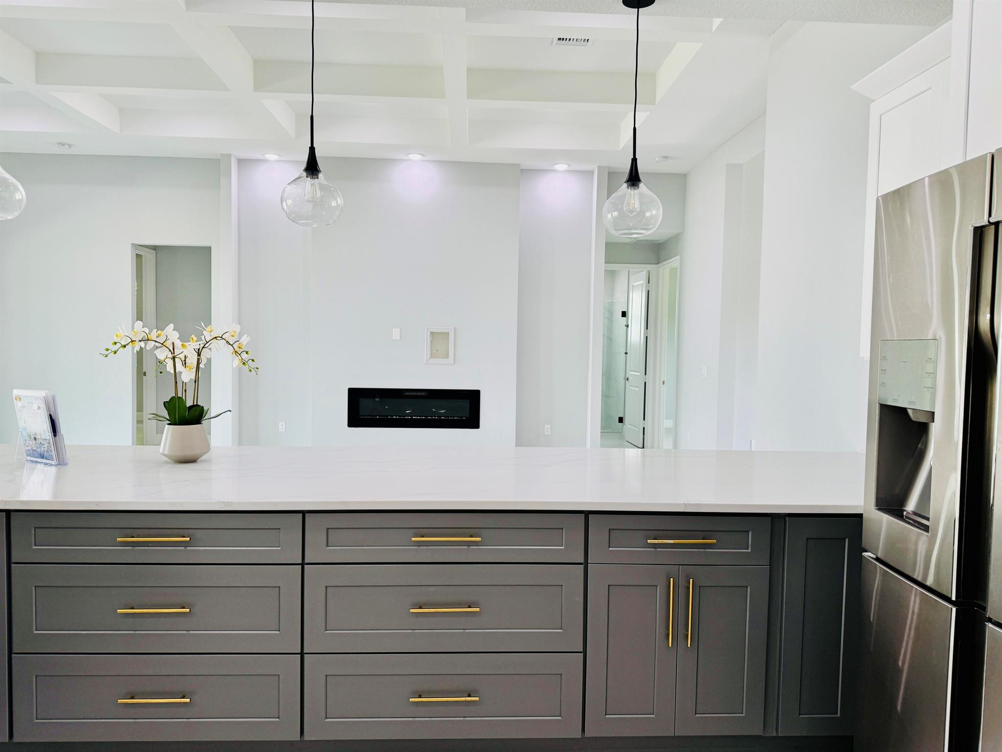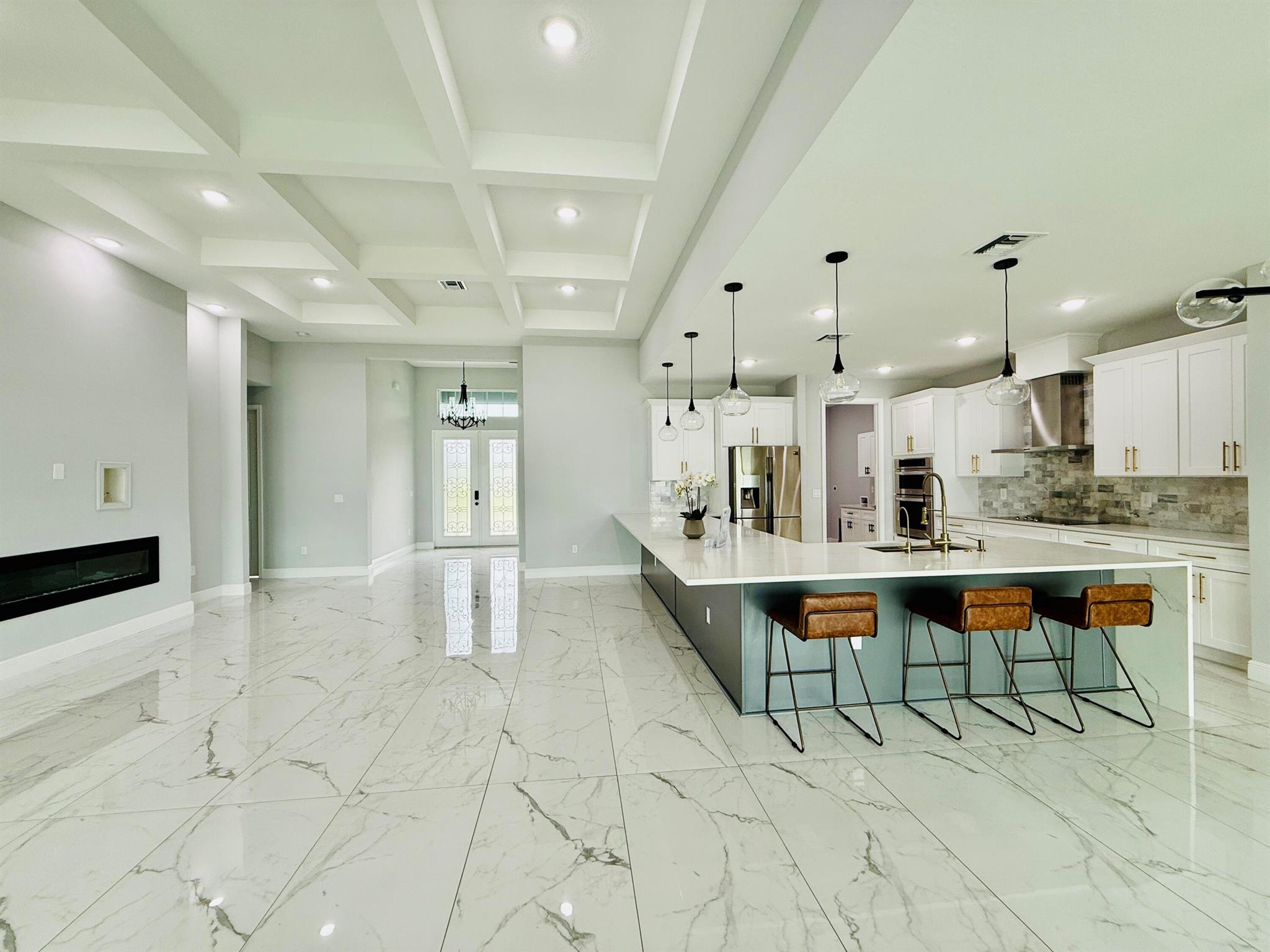 Stunning 2023 Custom -Build Home - Corner in Port Saint Lucie.Welcome to 2092 SW Airoso Blvd, a beautifully designed custom home, this move in ready residence offers 4 Spacious Bedrooms a dedicated Office /Studio and 3 Full Bathrooms,12ft in main living areas. Metal Roof, Impact Resistant Windows.The open concept living area is adorned with Large Porcelain title flooring. 2 Car Garage, Sprinkler system..Chef-style Kitchen featuring Massive Center Island. A cozy fireplace. Patio with Pavers and Gutters.. Located just minutes from shopping center, schools, parks, and Beach.Schedule your private tour today-