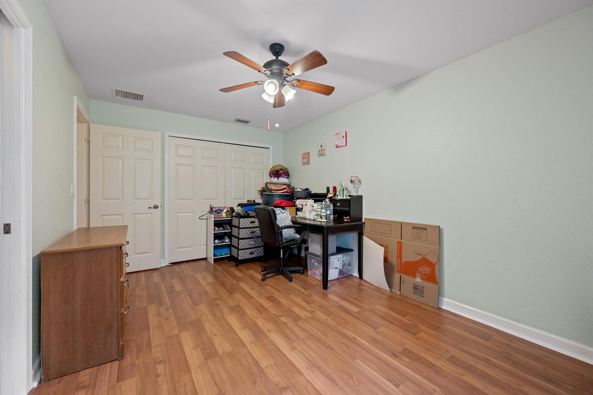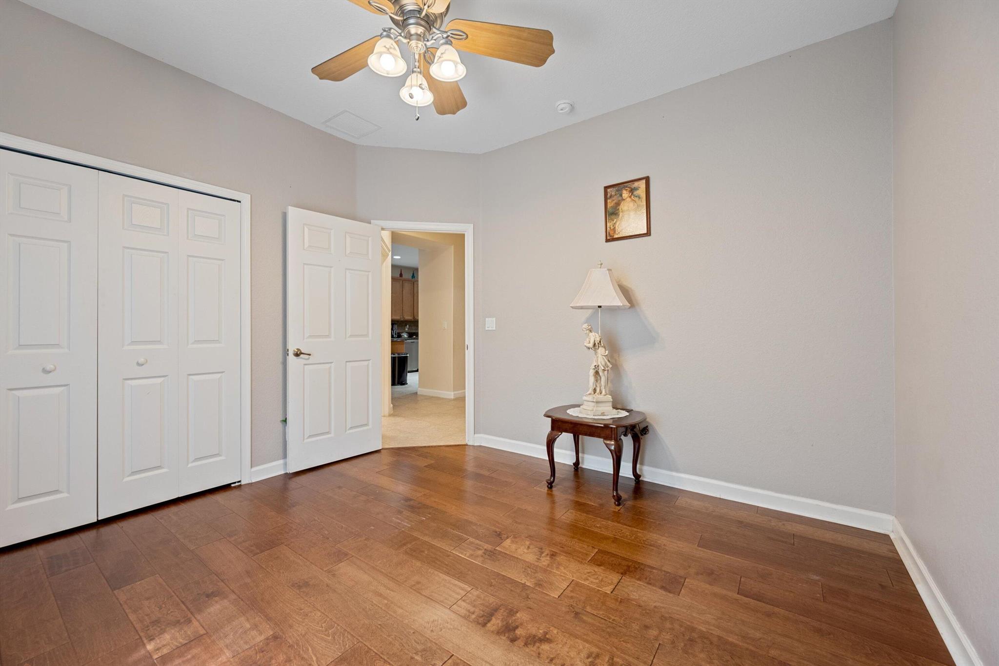 This stunning 5 bedroom, 4 bathroom home is located in a desirable gated community and offers both elegance and functionality. Step inside to soaring tray ceilings, architectural arches, and an abundance of natural light that creates a warm and inviting atmosphere. The spacious living areas flow seamlessly, perfect for entertaining family and friends. The gourmet kitchen features granite countertops, wood cabinetry, a center island, and brand-new stainless steel appliances. Tile flooring runs throughout the main living spaces, and hardwood floors throughout second floor; combining easy maintenance with timeless style. Complete with accordion shutters for peace of mind, this thoughtfully designed home in a prime location is the perfect blend of comfort and sophistication