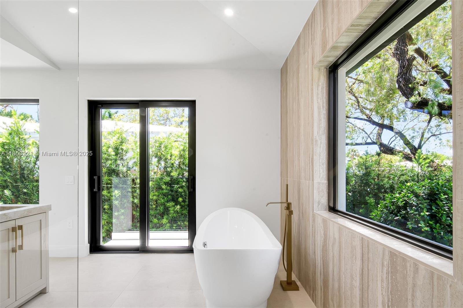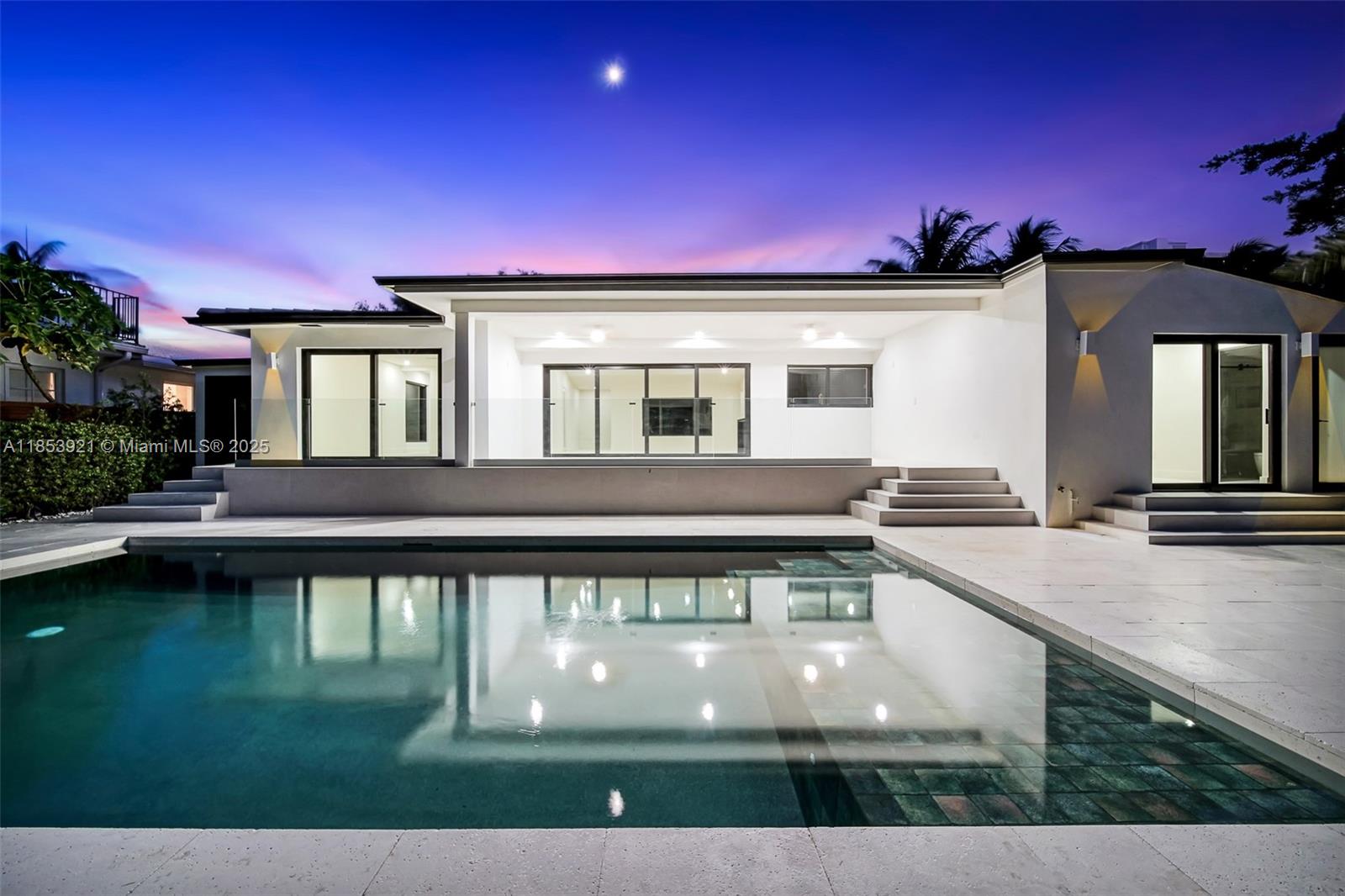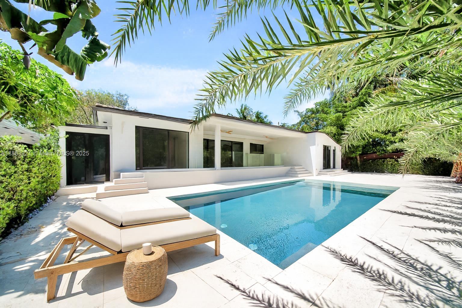 PRICE REDUCED. Stunningly renovated 4-bedroom, 3.5-bathroom Pool House nestled in Bayside Historic District. It blends timeless architecture with sleek, modern finishes, all just minutes from Miami’s most vibrant neighborhoods. Open-concept living spaces, soaring ceilings, and seamless indoor-outdoor flow. The chef’s kitchen is outfitted with custom dark wood cabinetry, luxury stone countertops, and brand new appliances, including a gas stove. Floor-to-ceiling sliding doors lead to a tropical private oasis featuring a brand-new pool, lush landscaping, and elegant palm-lined privacy. Every bathroom has natural stone. The primary suite features a walk-in closet with custom-lit built-ins, providing both storage and style. Outdoor storage. Elevated House with new roof and impact windows.