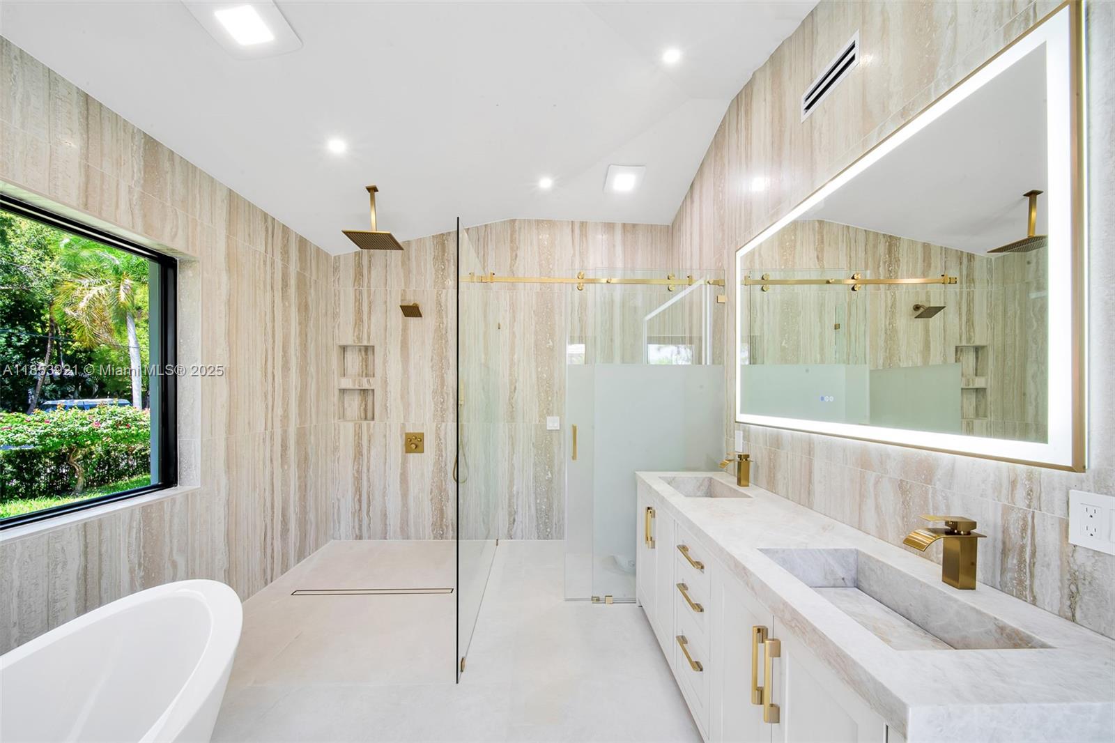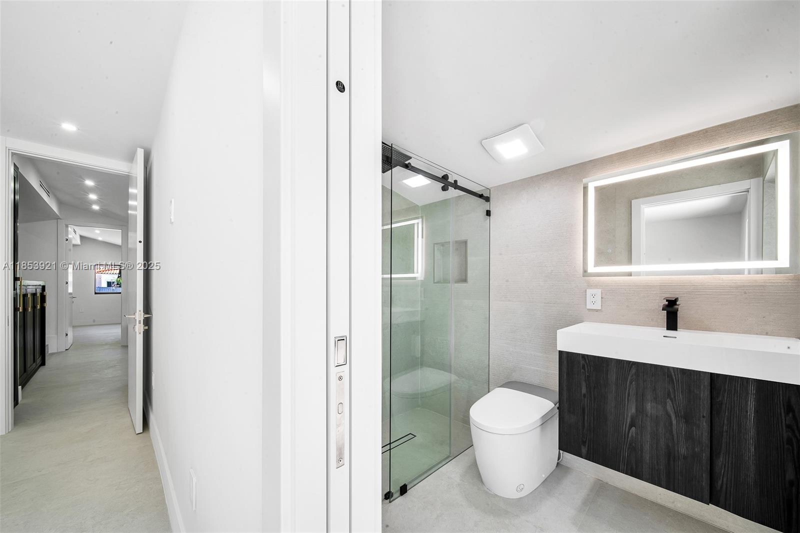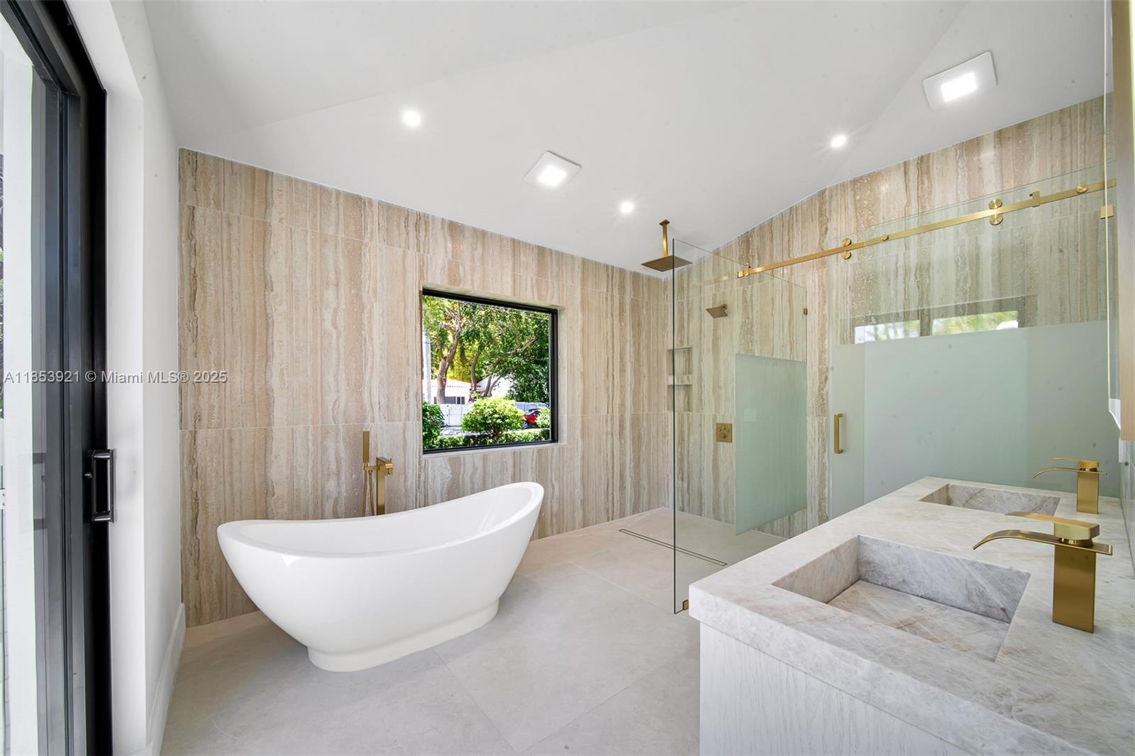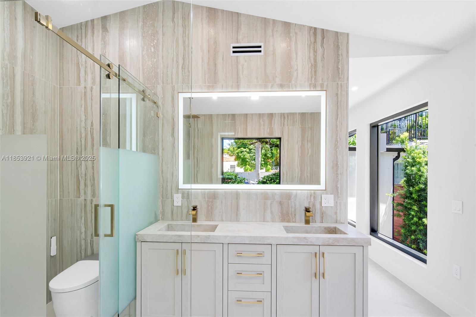 PRICE REDUCED. Stunningly renovated 4-bedroom, 3.5-bathroom Pool House nestled in Bayside Historic District. It blends timeless architecture with sleek, modern finishes, all just minutes from Miami’s most vibrant neighborhoods. Open-concept living spaces, soaring ceilings, and seamless indoor-outdoor flow. The chef’s kitchen is outfitted with custom dark wood cabinetry, luxury stone countertops, and brand new appliances, including a gas stove. Floor-to-ceiling sliding doors lead to a tropical private oasis featuring a brand-new pool, lush landscaping, and elegant palm-lined privacy. Every bathroom has natural stone. The primary suite features a walk-in closet with custom-lit built-ins, providing both storage and style. Outdoor storage. Elevated House with new roof and impact windows.