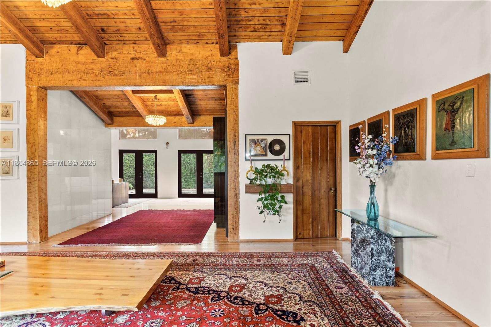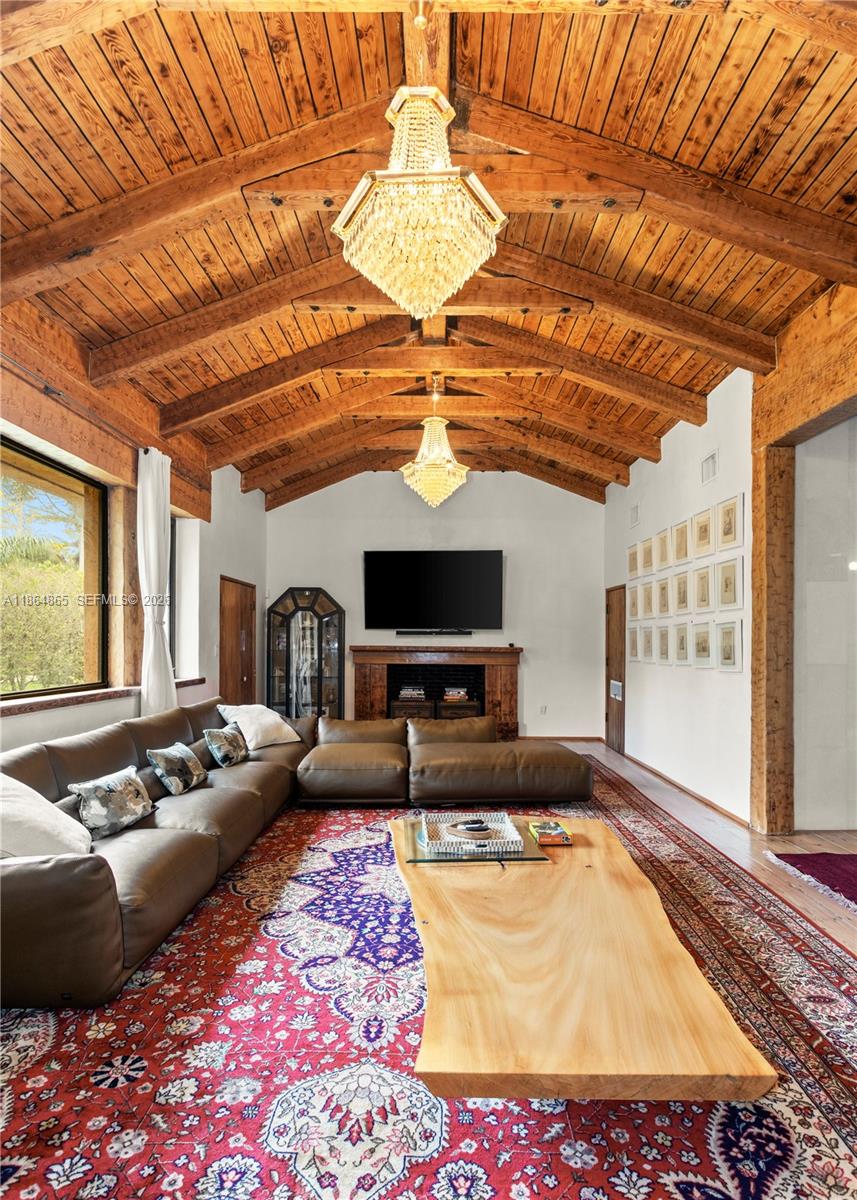Experience refined sophistication at this exclusive Pine Tree residence, featuring exposed beams and 13-foot vaulted ceilings that blend modern design with timeless charm. The expansive kitchen overlooks a pristine pool and lush garden, creating an elegant setting for both relaxation and entertaining. The home offers three bedrooms plus a maid’s quarters with a full bath, for a total of four bedrooms and four bathrooms. Situated on a large 11,616 SF lot with only two neighboring properties, the home enjoys exceptional privacy. Located directly across from a newly renovated children’s park and set on one of Miami’s most exclusive addresses, just one block from La Gorce and North Bay Road. New roof and new impact windows in the process of being installed.