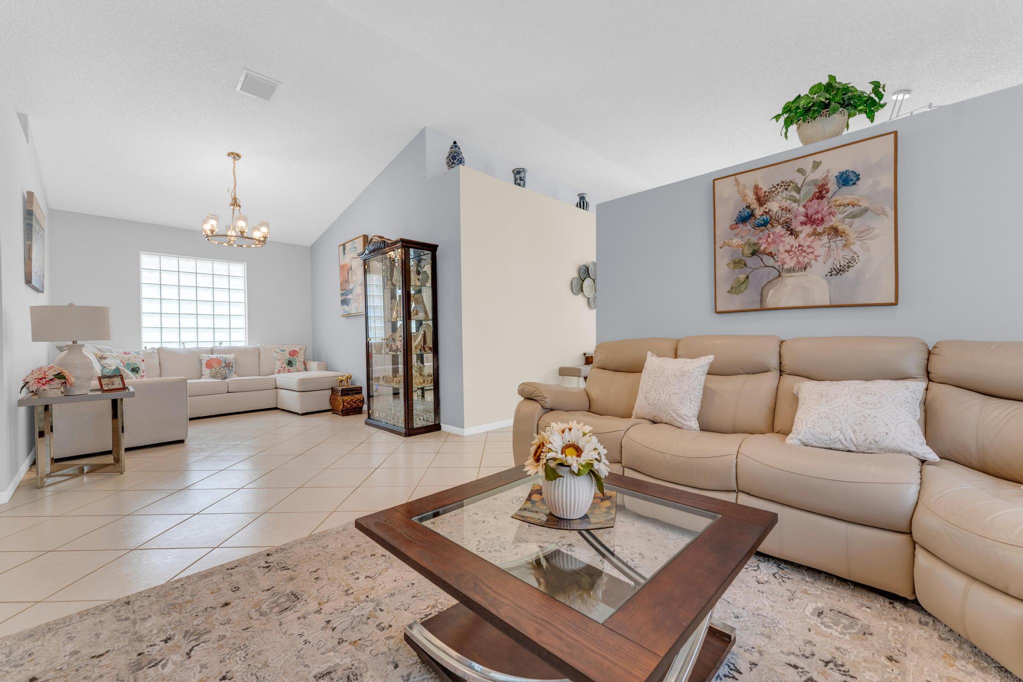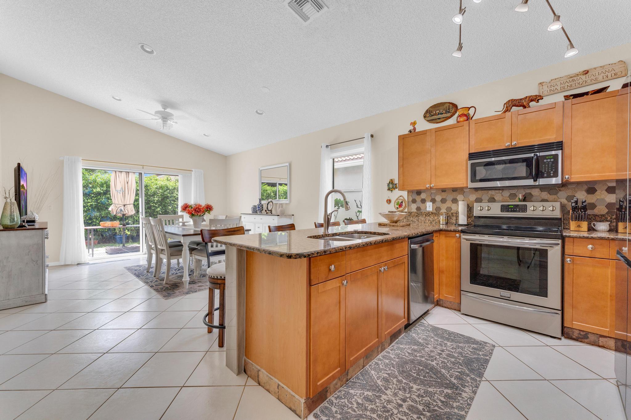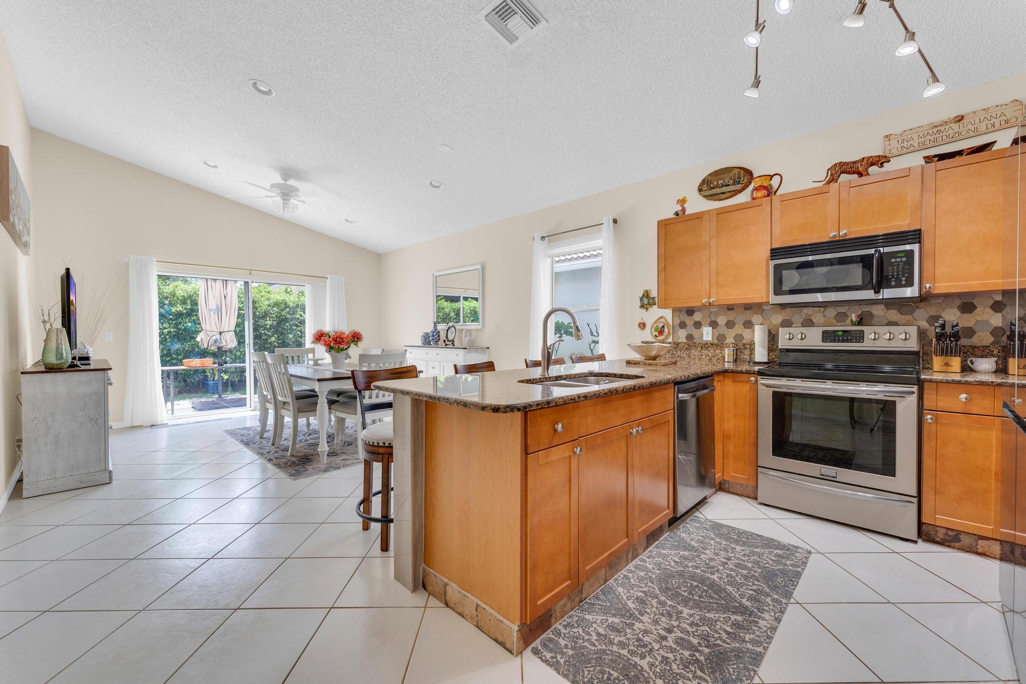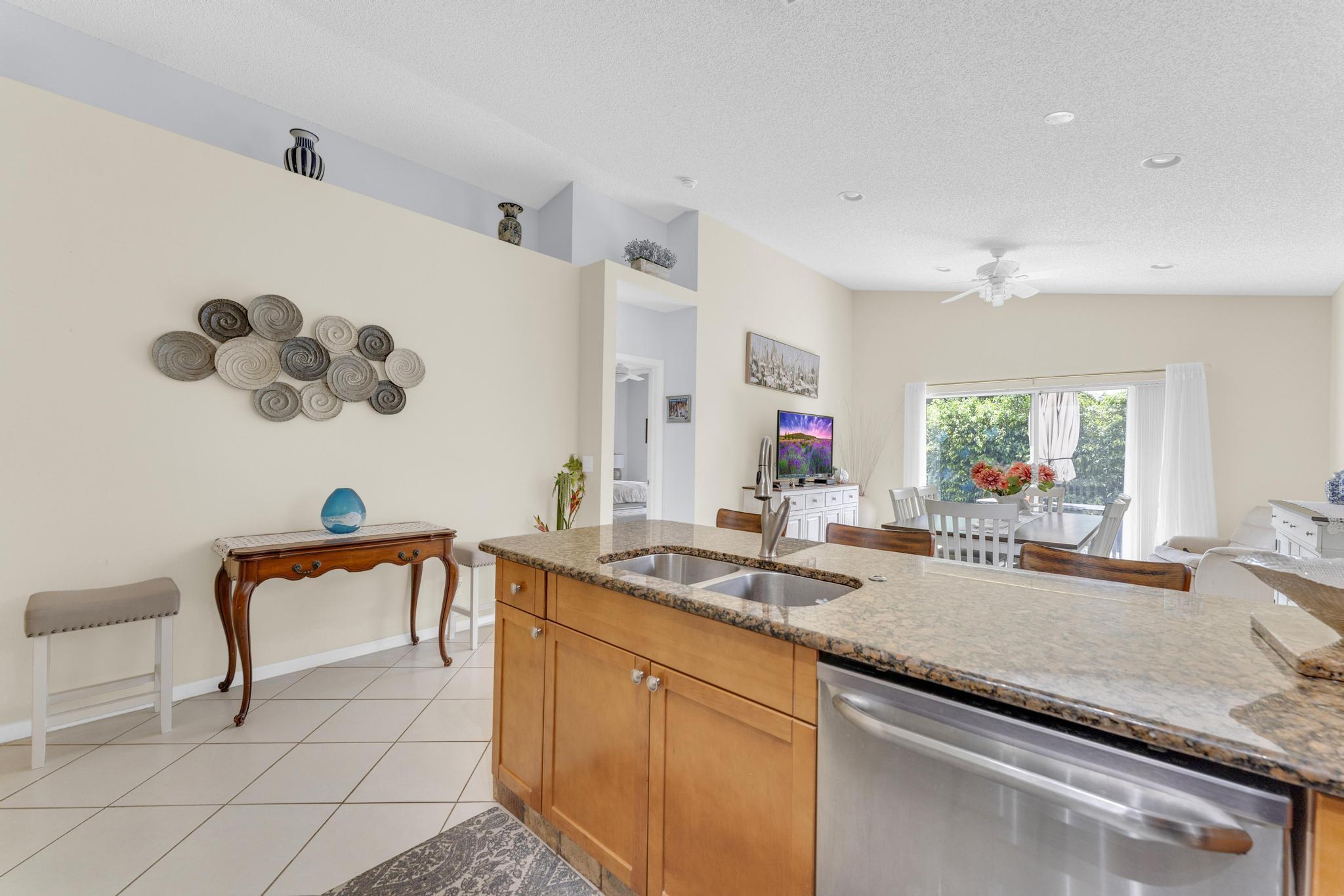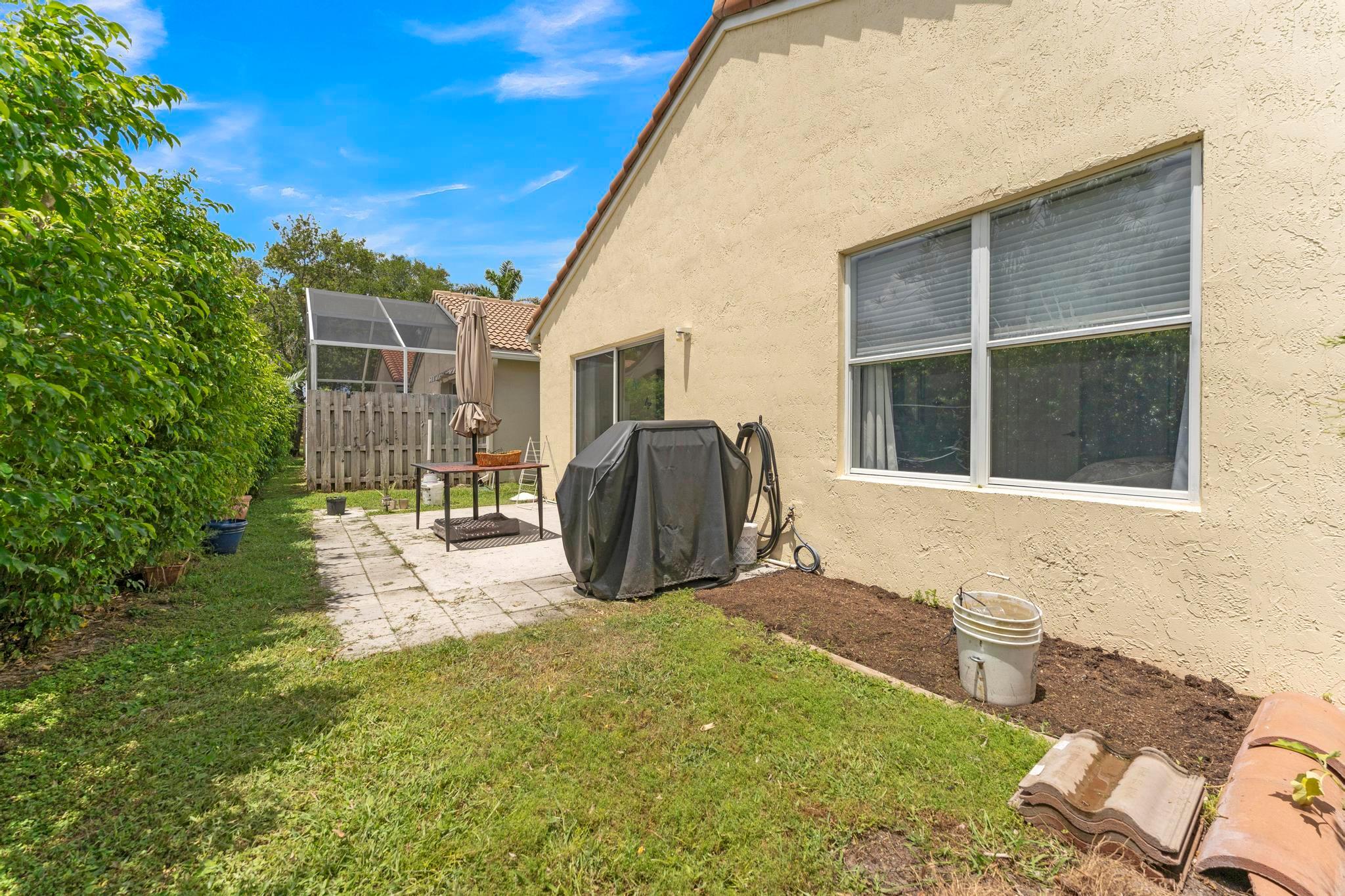 Welcome to The Grove, one of Boynton Beach's most sought-after active communities! Enjoy a newly remodeled clubhouse with nonstop activities--shows, clubs, fitness, cards, arts & crafts, pickleball, tennis, bocce, putting green & an Olympic-size pool. The community is beautifully landscaped & perfectly located near West Boynton Hospital, Town Commons, and Whole Foods. This 3-bedroom, 2-bathroom home with a den features spacious living areas, an updated kitchen with stainless steel appliances, granite countertops, volume ceilings, and a screened patio overlooking a private garden just steps away from the Clubhouse.