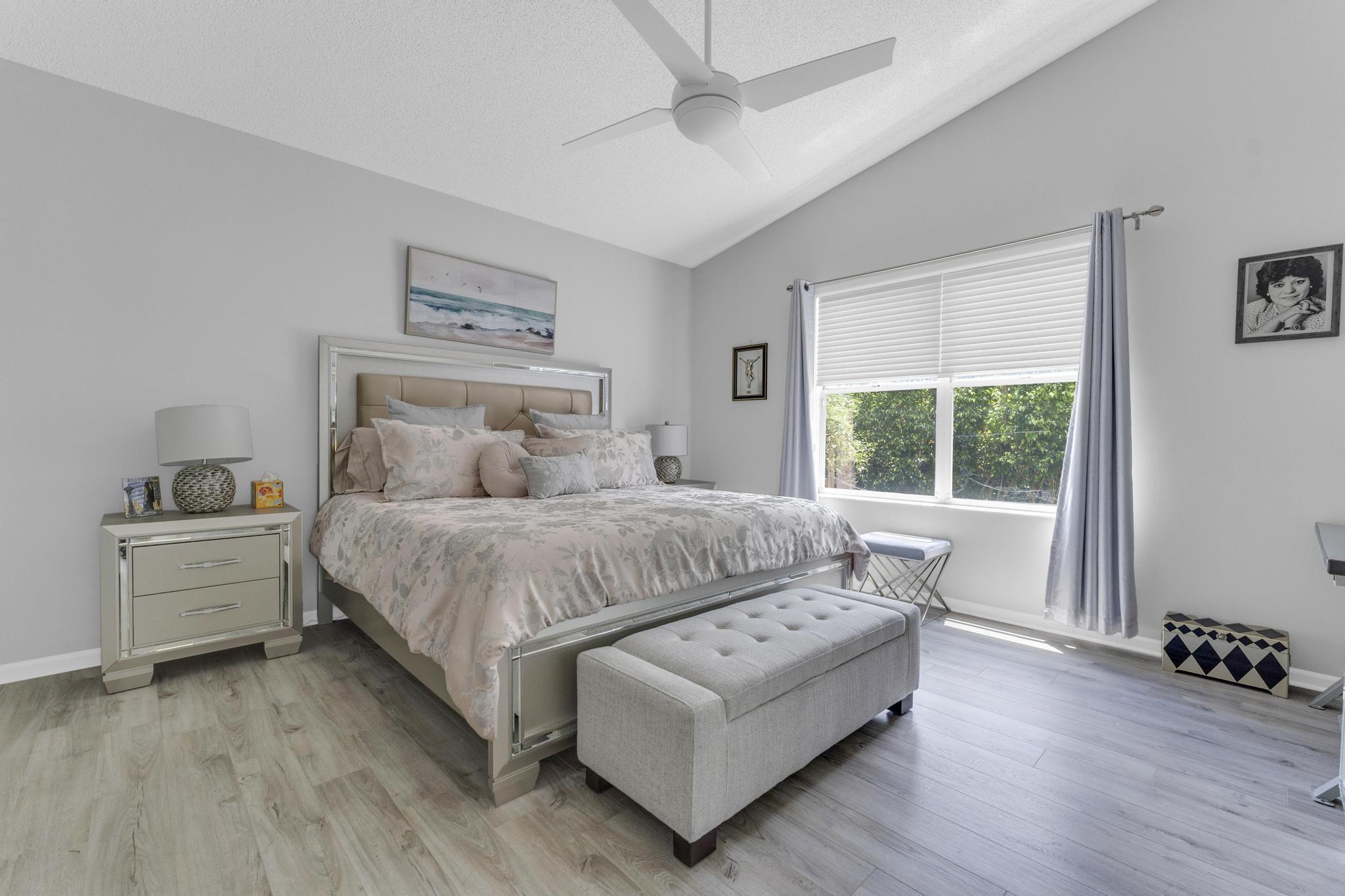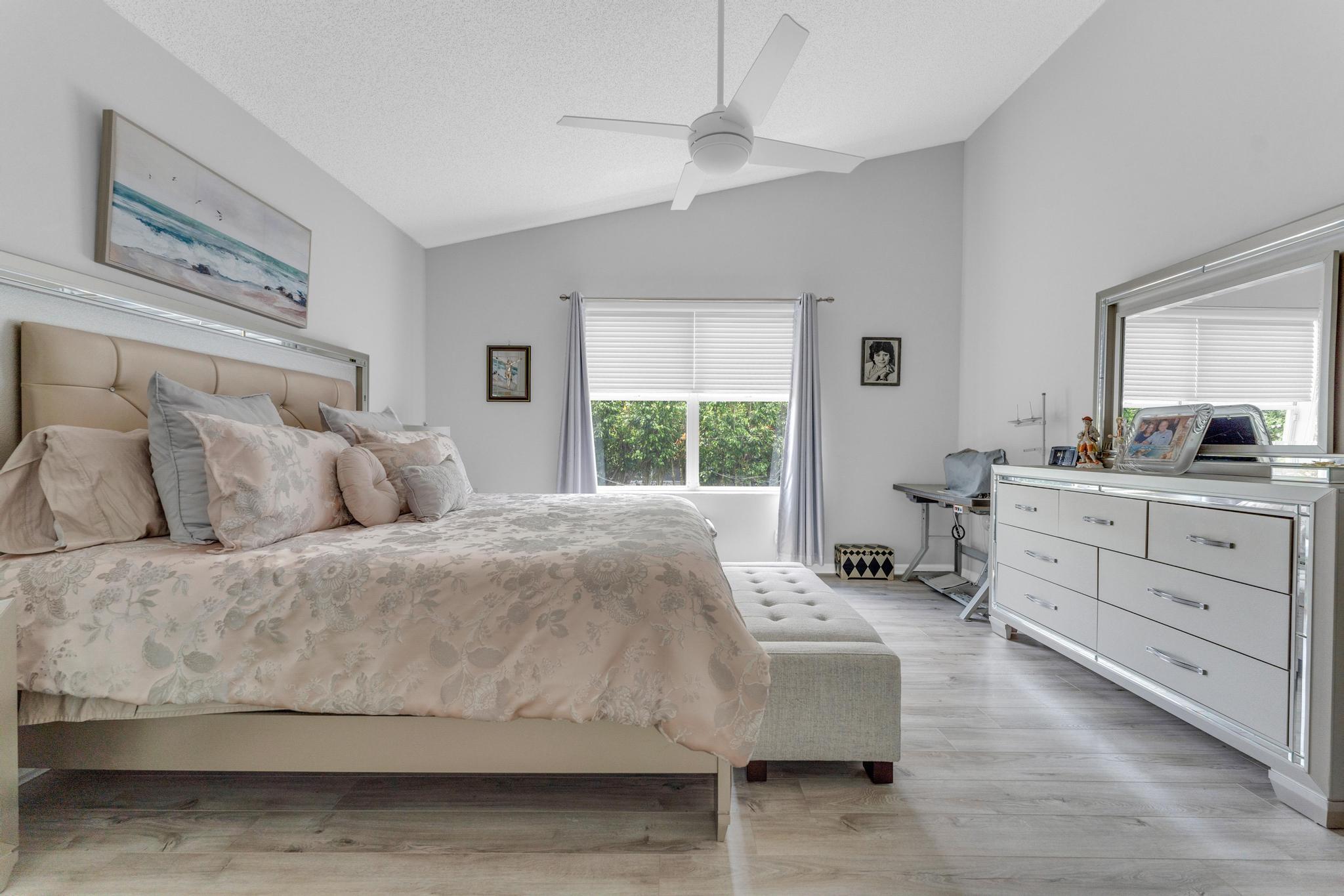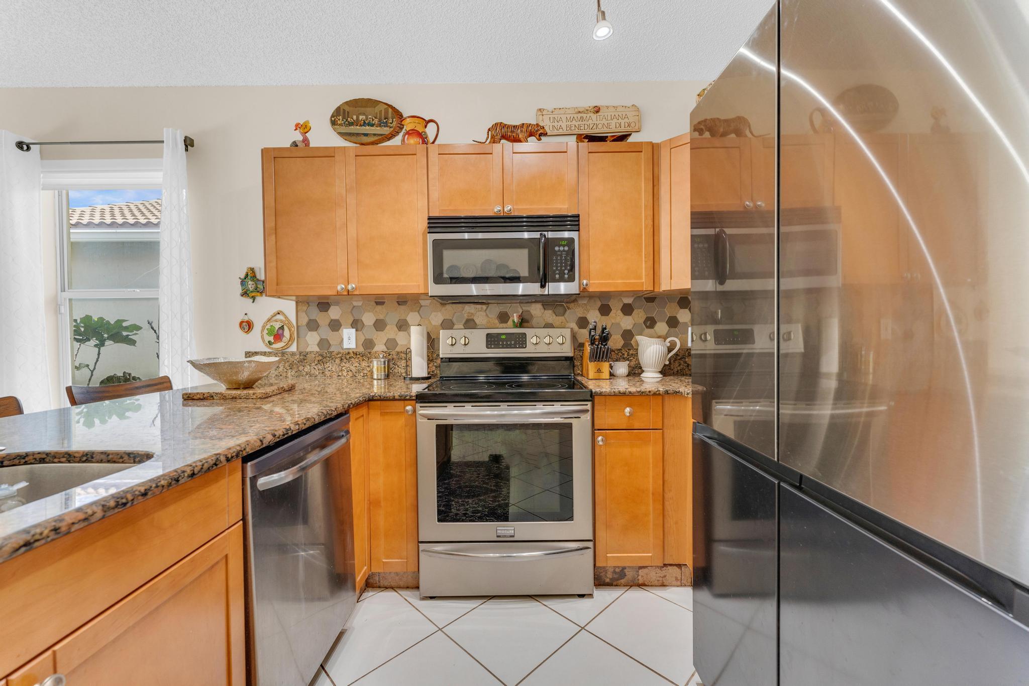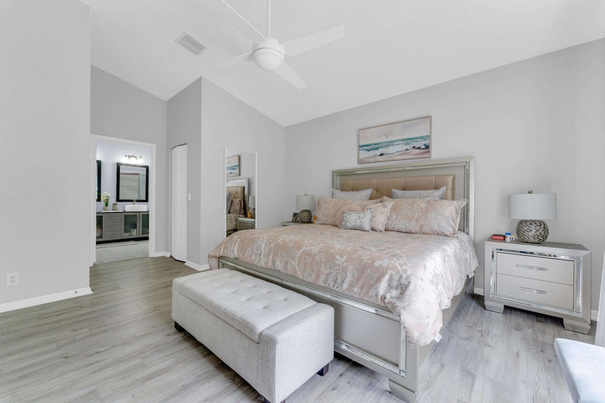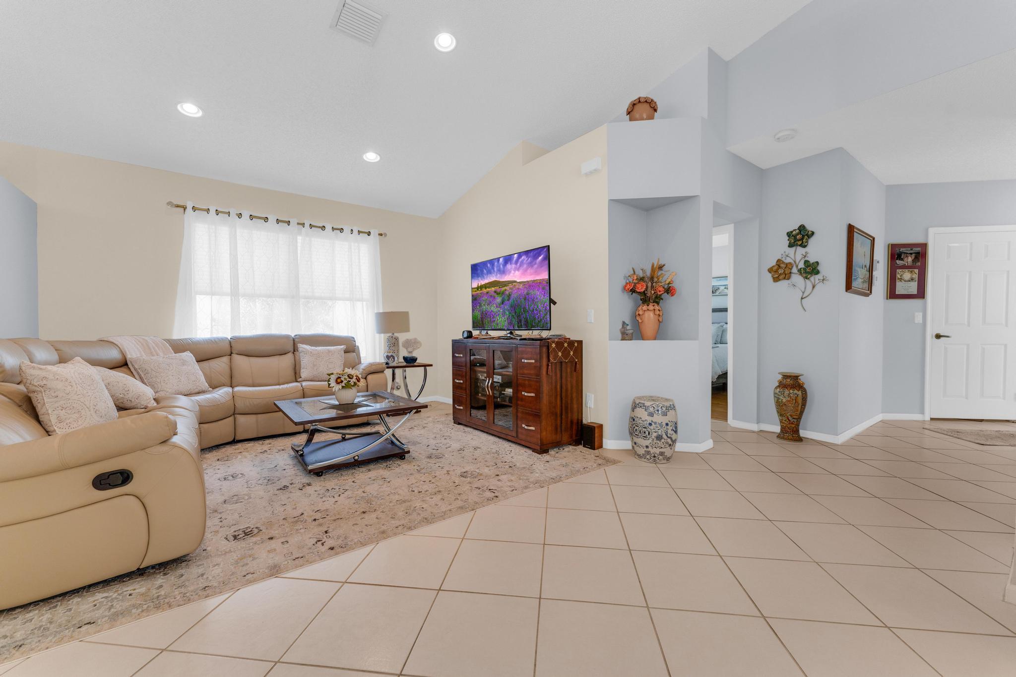 Welcome to The Grove, one of Boynton Beach's most sought-after active communities! Enjoy a newly remodeled clubhouse with nonstop activities--shows, clubs, fitness, cards, arts & crafts, pickleball, tennis, bocce, putting green & an Olympic-size pool. The community is beautifully landscaped & perfectly located near West Boynton Hospital, Town Commons, and Whole Foods. This 3-bedroom, 2-bathroom home with a den features spacious living areas, an updated kitchen with stainless steel appliances, granite countertops, volume ceilings, and a screened patio overlooking a private garden just steps away from the Clubhouse.
