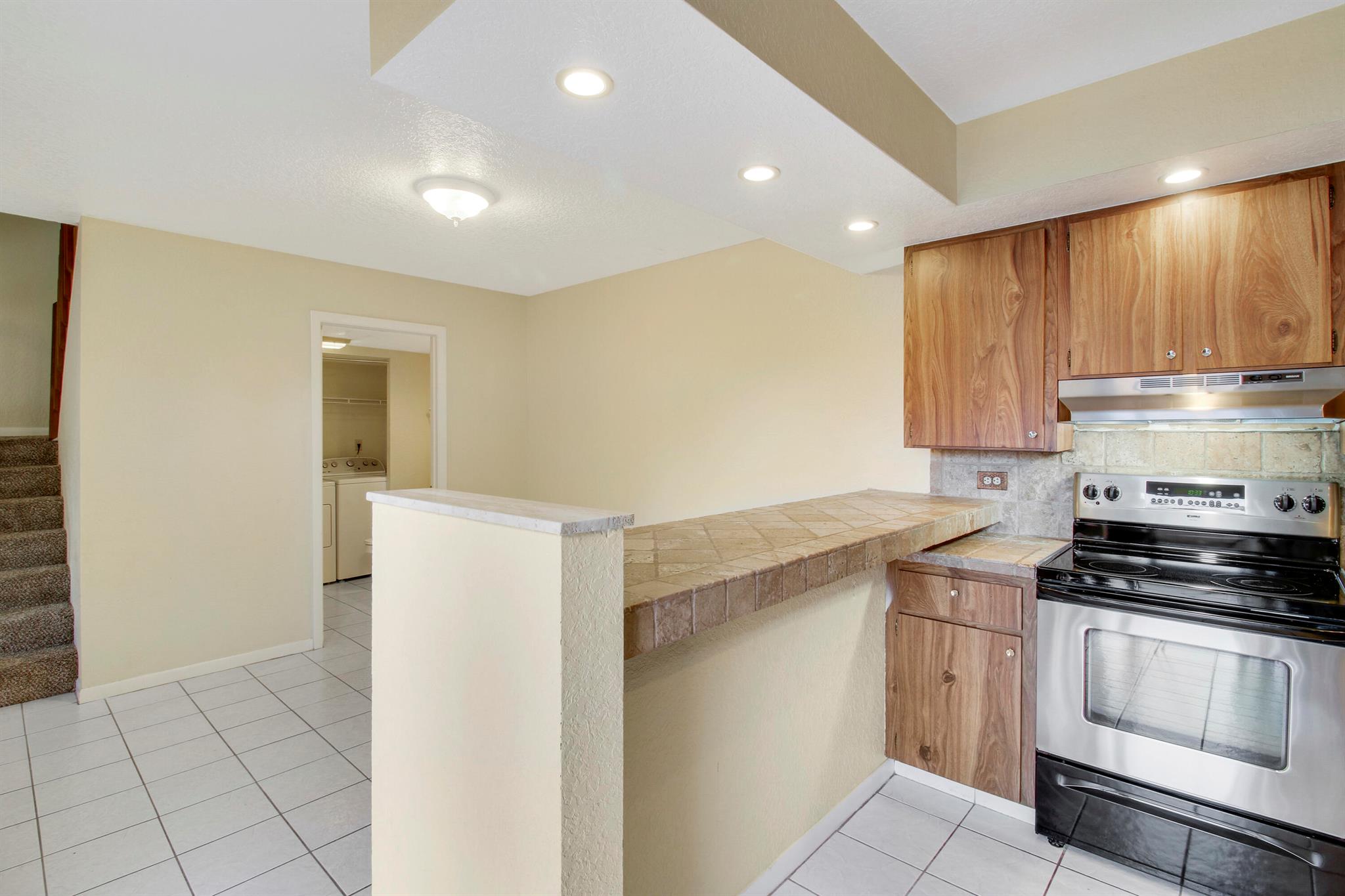 Welcome home to this cozy 2bed/2.5bath townhouse in the Tequesta Hills community. This unit is light and bright, clean, and ready for new owners!! Currently rented till April 2026. Newer roof. Tile throughout the downstairs living areas, huge living room, updated kitchen with new stainless-steel appliances. A half bath with a full size washer and dryer off the dining area. LVP flooring up the stairs and into both upstairs bedrooms. Walk in closets, and stand up shower in the master. Both bedrooms have slider doors with open air balconies. This unit is perfect for entertaining and guests with your very own private, fenced in courtyard/patio area! Located close to the pool and just minutes to the park. Accordion shutters complete. 2 assigned parking spaces. Investors welcome! Dont miss