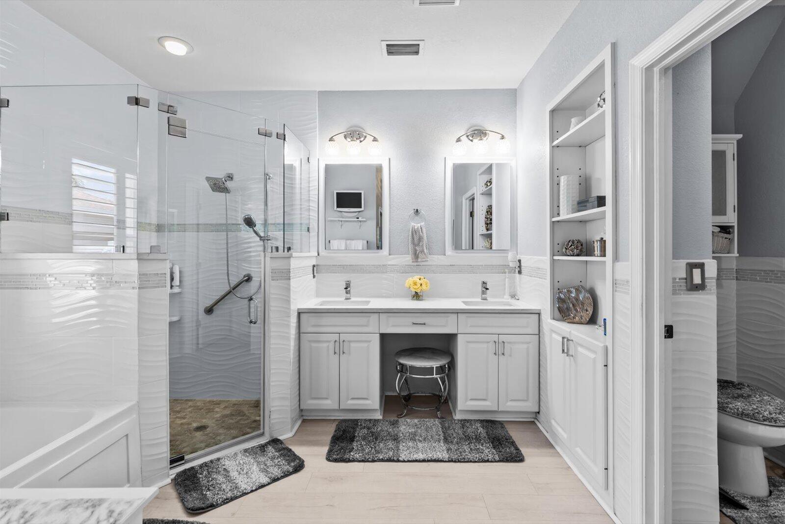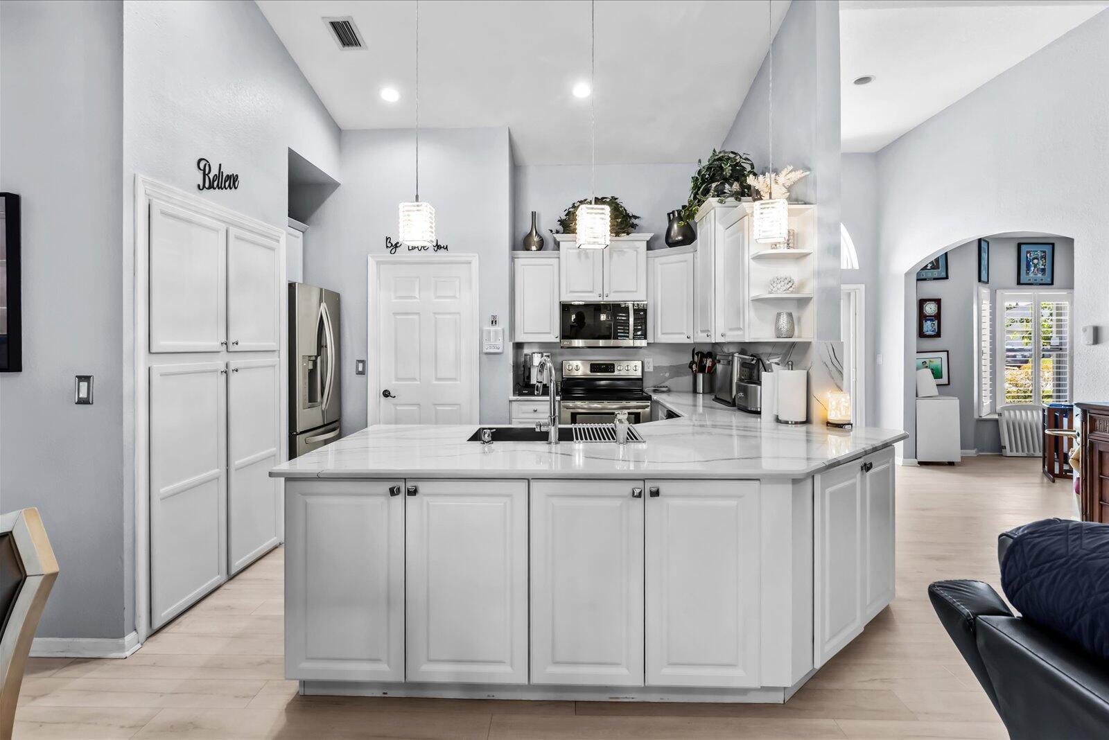 Welcome to this beautifully upgraded 3BR/2BA, 2,043 sq ft home with 2-car garage. Enjoy peace of mind with a new roof (2023), new A/C (2025), remodeled kitchen & baths with an oversized sink, newer deluxe waterproof vinyl flooring throughout, accordion storm shutters, and elegant plantation shutters inside. Step outside to your own tropical backyard oasis with a private pool (2025), pool cage, new pump & filter, new solar panels (2025), updated sprinklers (2023), exterior spotlights, and a storage shed. House is pre-plumbed for generator connection, camera & alarm systems, water softener (2023), instant hot water, and a mini A/C in the garage. An oversized attic provides extra storage. Centrally located near all the great Tradition restaurants & close to the Turnpike & I-95.