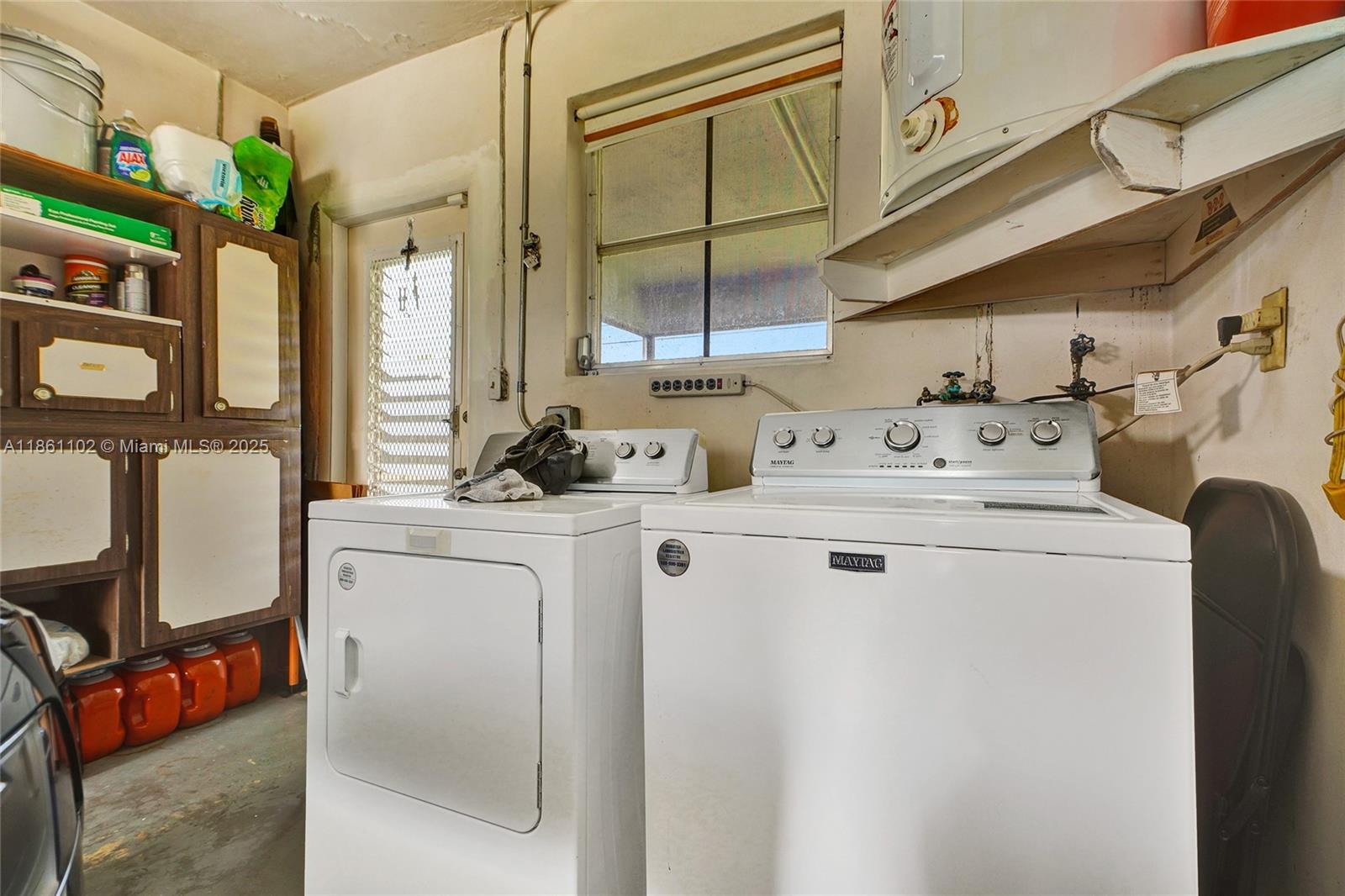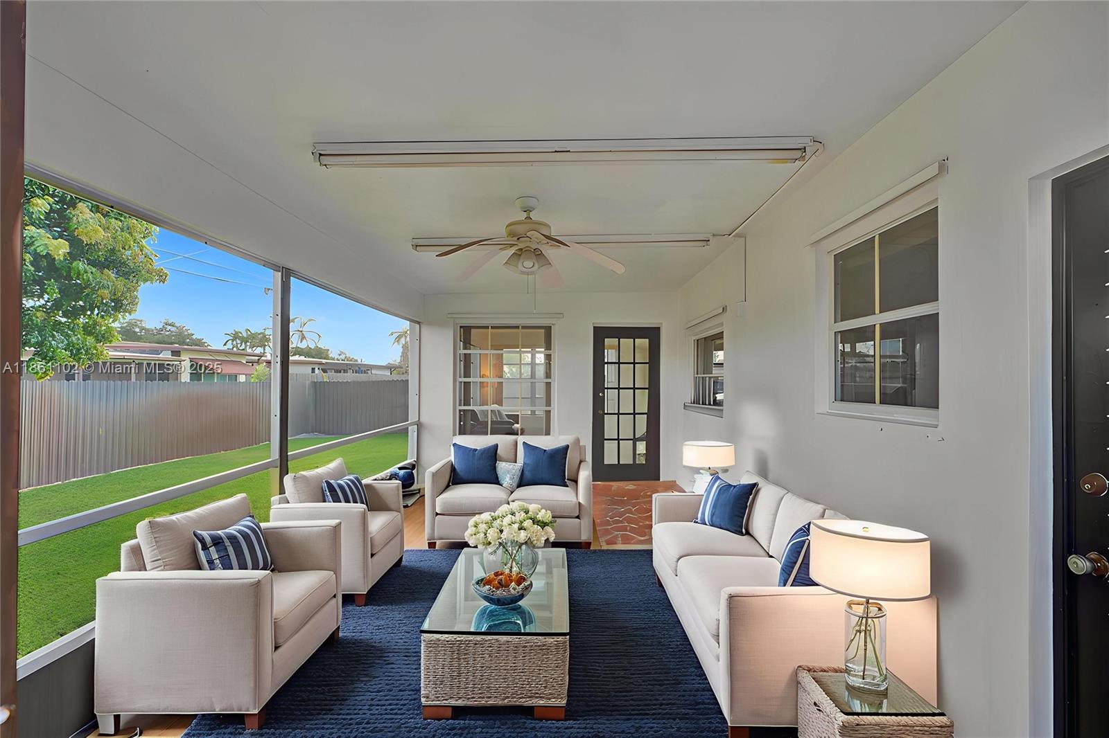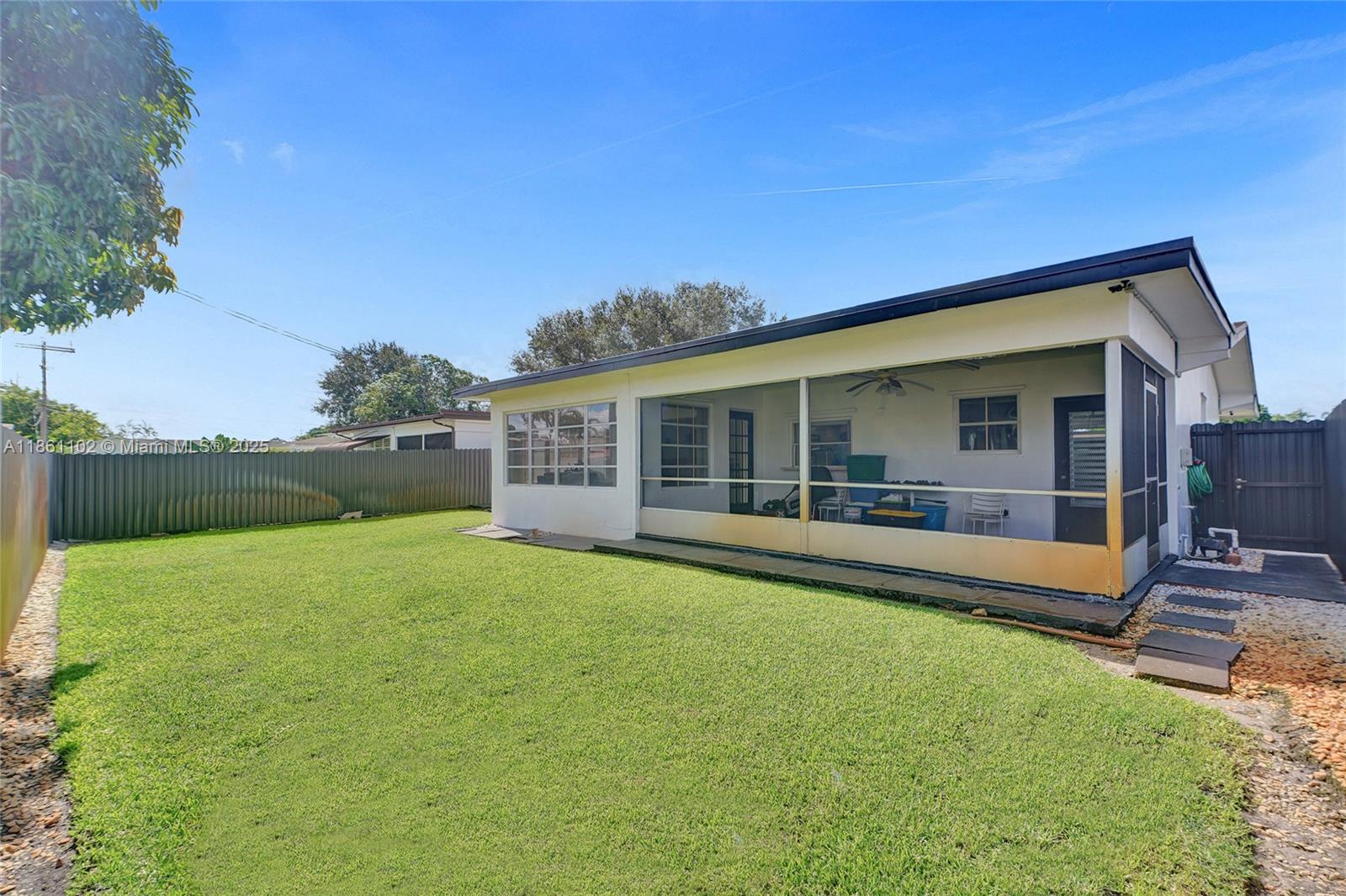 You will fall in love with this home as soon as you admire the curb appeal up close! 2 BR, 2 bath home features a freshly painted exterior & sealed stamped concrete black driveway with room for 5 cars, boat, or RV, plus a 1-car garage. Renovations include roof, AC, & electric all updated since 2016! Beautiful landscaping with palm trees in the front yard creates a warm, tropical feel. Inside offers a spacious free-flowing open layout with living, dining, and Florida room, updated baths, & a cozy eat-in kitchen with new appliances including refrigerator, washer, & dryer. The covered, screened-in patio with Mexican tile can also be transformed into a party room or potential third bedroom. Newly fenced 7-foot yard with space for a pool. Excellent location close to parks, shopping, and malls.