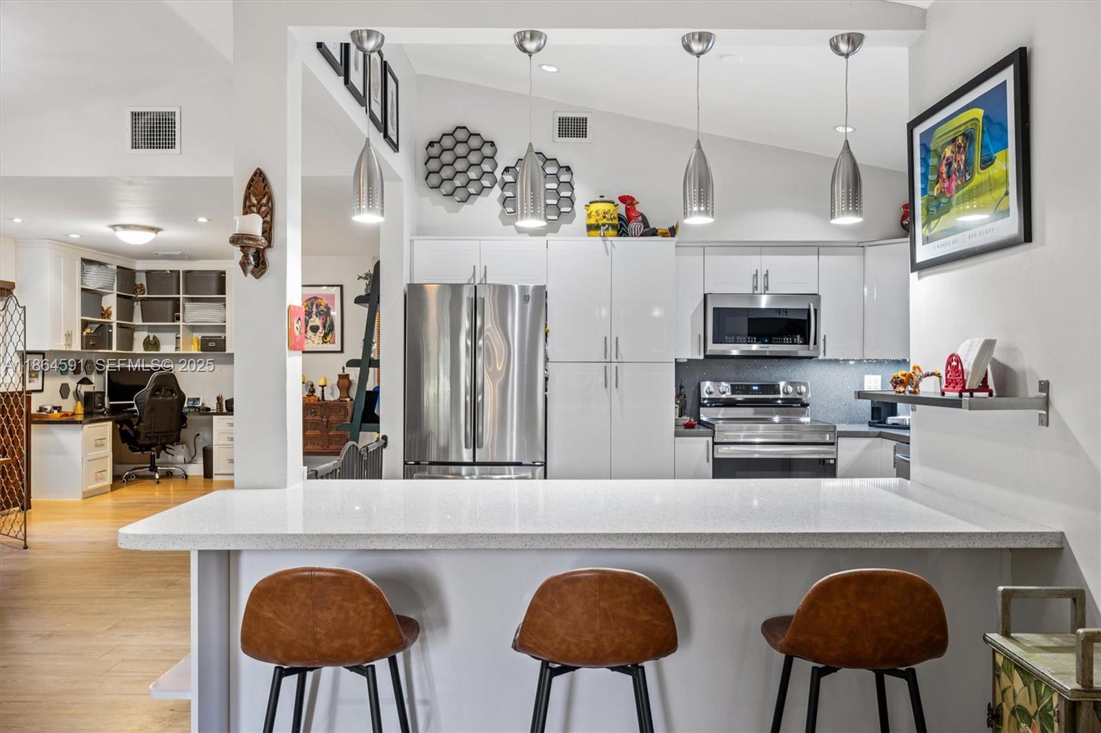 No HOA, Low Taxes to start! Not Flood Zone/Elevation 13 Ft. Tropical Garden Paradise over 1/2 acre lot (25,200 sqft). Beautiful 1-story house, 3 bedr., 2 bath, plus independent 1 Bedr./1 Bath Guest House (In-Law Quarters/Rental Income). 3rd bedr. currently used as open office layout but easy to convert back before Closing. 2019: New PVC Pipes, Main House Metal Roof w/Solar Panels (owned/not leased) & Flat Roof Guest House. FPL Bill Ranges $46-$123). Gorgeous kitchen w/cathedral ceiling, quartz counter tops, SS appliances. Built around 6' screened Saltwater & Heated Pool w/outdoor sitting & quartz counter from kitchen to pool. 2 garage, auto sprinkler, well irrigation, double protection in main house with impact windows & accordion storm shutters. Accordions also in guest house/garage/laundry. Gorgeous wood carved front door. 2-A/C's: Main house(2022)/Guest House(2025). Over 1/2 acre is perfect for all size Boats, RVs, and future additions. Gardeners dream with trees like Mango, Avocado, Lychee, Longan, Soursop, etc... Great Schools, Near Palmetto Golf Course & Palmetto Bay Park.