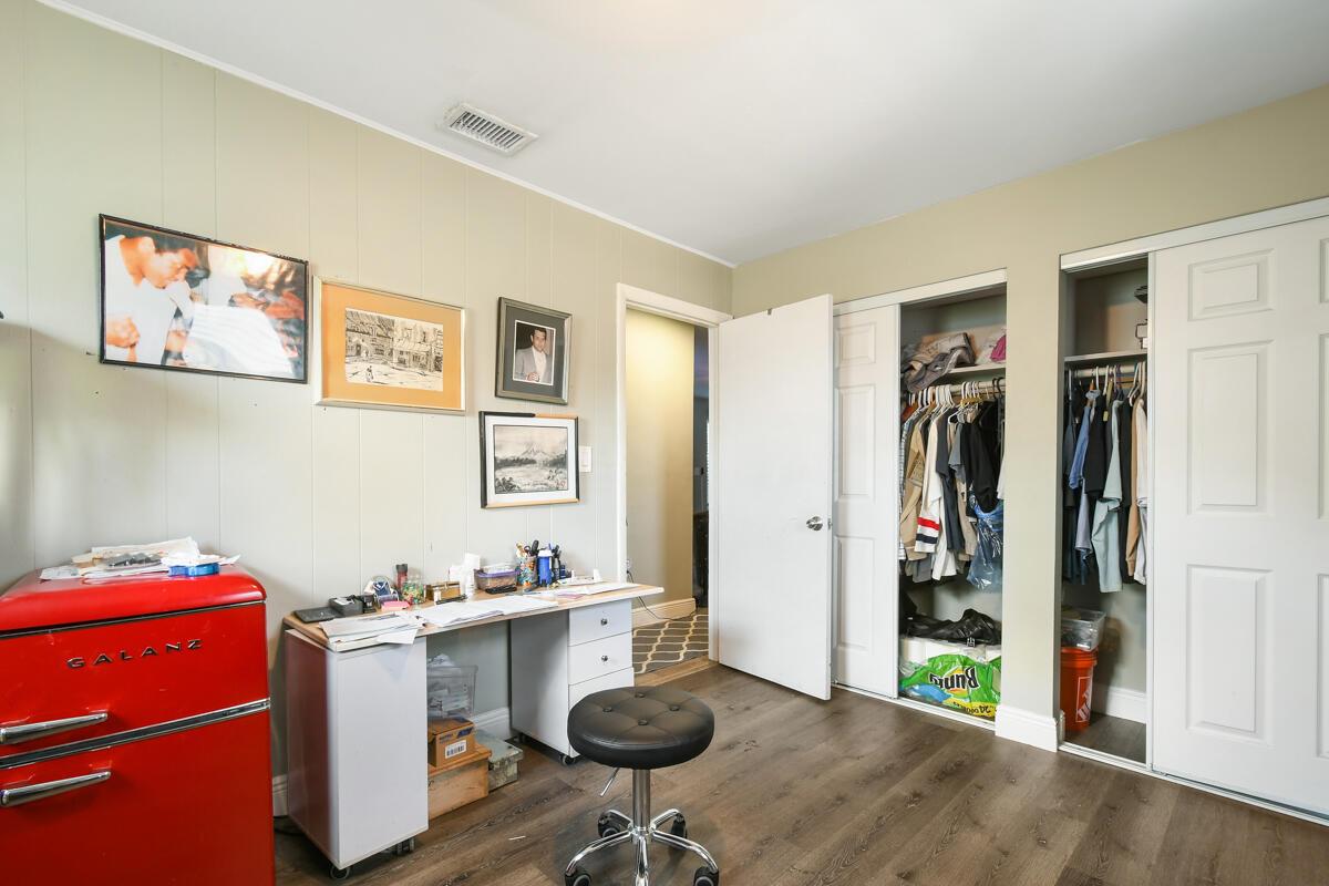 Enjoy comfortable living in this cozy home featuring a stylish kitchen with quartz counter tops & ample cabinetry, modern updated bathrooms, a large family/dining room, laminate flooring throughout, metal roof, impact windows and a newer a/c. Plus a separate laundry room, a covered, screened patio and the property is completely fenced. Third bedroom has no closet. No HOA. Ideally located in Palm Beach Gardens close to shopping, restaurants and freeways.