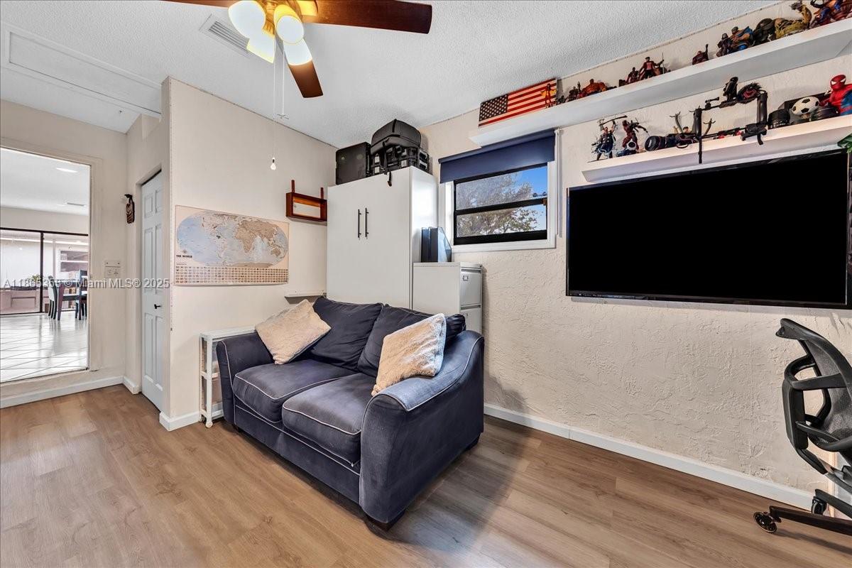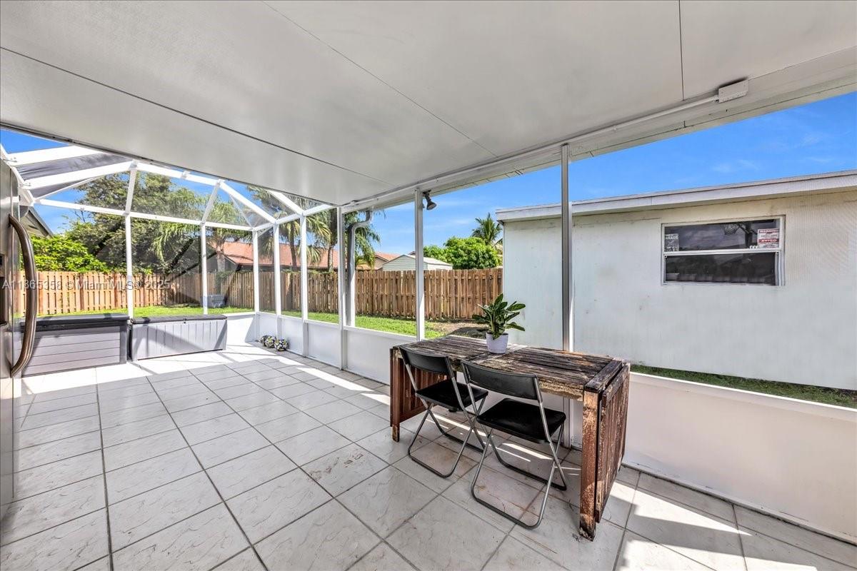 Cozy 3BR/2BA/1CG home nestled in a Cul-de-Sac at the desirable Springtree @Sunrise. This bright and charming residence features BRAND NEW ROOF (2025) vaulted ceilings, an open-concept design, and garage converted in an office space or game room. The remodeled kitchen offers granite countertops, wood cabinetry, and stainless steel appliances, while both bathrooms have been tastefully updated. Enjoy comfortable bedrooms with custom closets,a private screened patio overlooking a huge fully fenced backyard perfect for gatherings and outdoor living. Low HOA ($35 monthly) includes a community pool. Prime location near Restaurants, schools, beaches, shopping. THIS IS A MUST SEE!