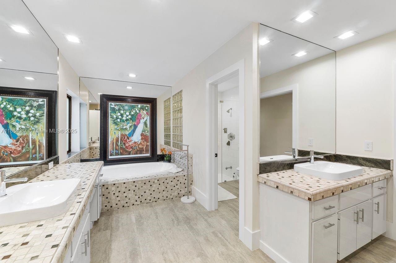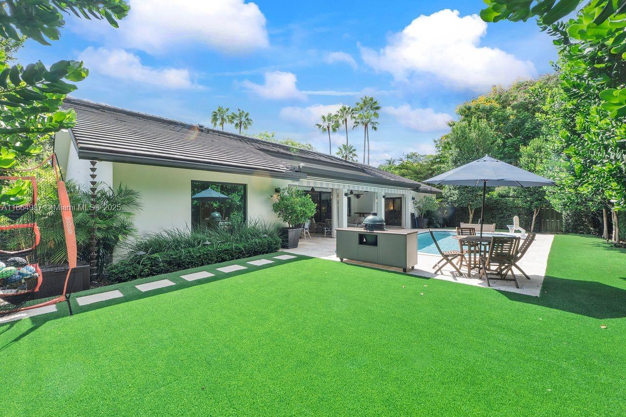Privacy is the ultimate luxury. Enter Arabesque, a walled community of only 18 homes in Pinecrest, developed in 1990 by one of south Florida’s renowned builders. This 3,254 SF, 4 bed/3 bath corner home was elegantly updated in 2019 to the most discerning standards. Plenty of natural light flows through impact windows and doors. The split floor plan offers a tranquil primary suite with his/hers closets, access to outdoor living area, and views of the pool and garden on one side, and three large bedrooms and two baths on the other. The main living area, with updated kitchen, breakfast space, and family room, open to a large covered patio and pool. Formal living and dining rooms flank the front entrance. The true two-car garage has plenty of built-in storage and epoxy floor. Perfect location.
