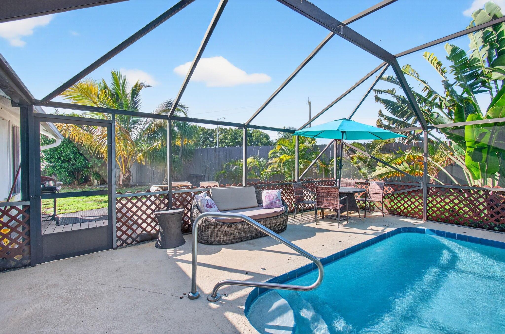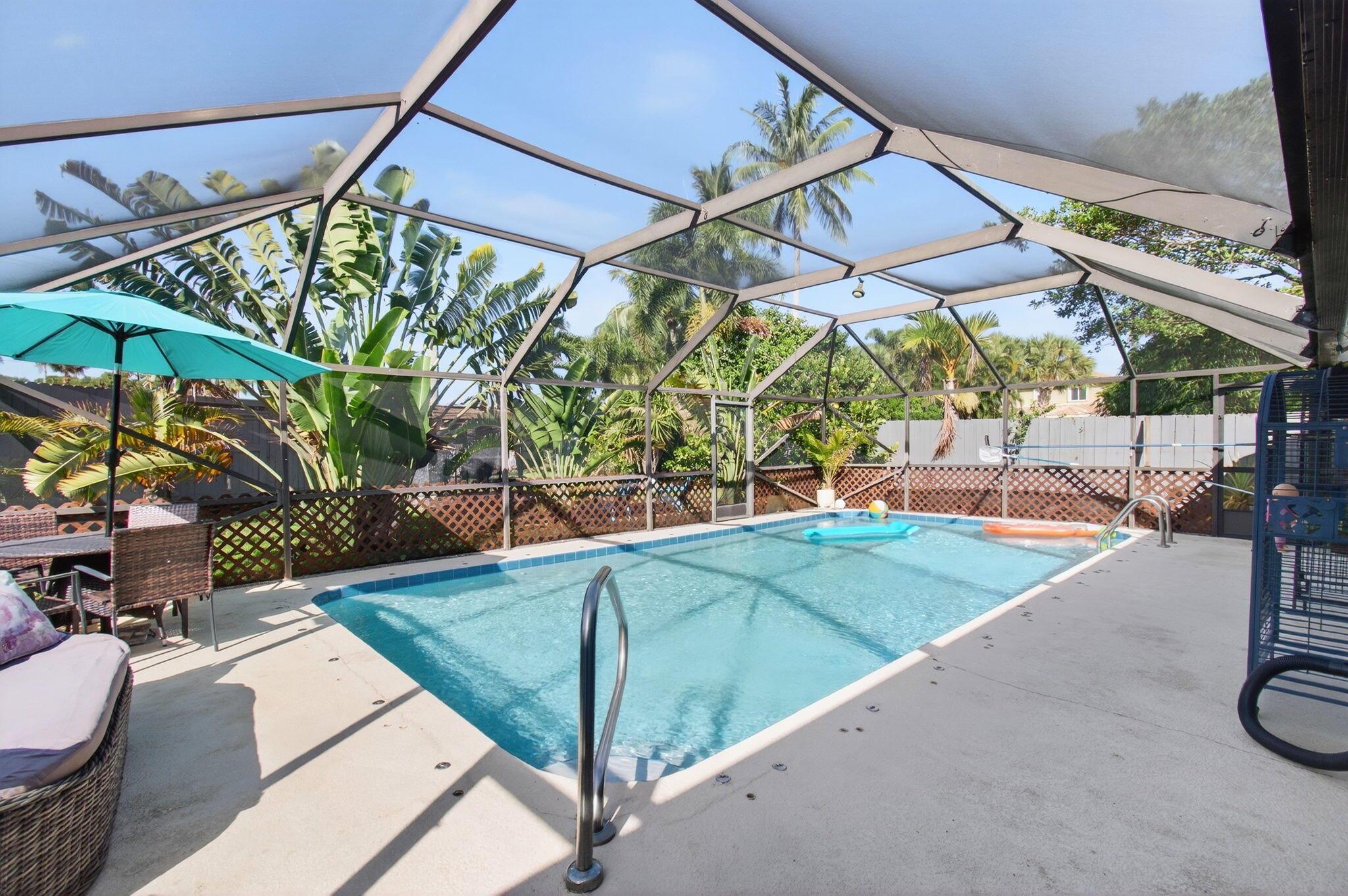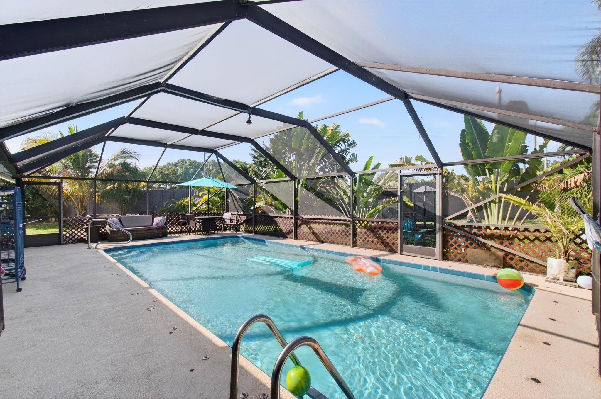 Enjoy life in this beautiful, completely remodeled pool home on a .27 acre premium lot! The spacious, open floor plan features a vaulted ceiling with a skylight providing plenty of soothing, natural light. The spacious kitchen features elegant quartz countertops, soft close cabinets with pull out drawers, and stainless steel appliances. The large fenced-in backyard is perfect for entertaining with a massive 15x30 foot screened pool and includes a large shed for extra storage. Enjoy the peace of mind of accordion shutters throughout for complete storm protection. The third and fourth bedrooms have been combined into one large bedroom but could easily be converted back to a four bedroom home.