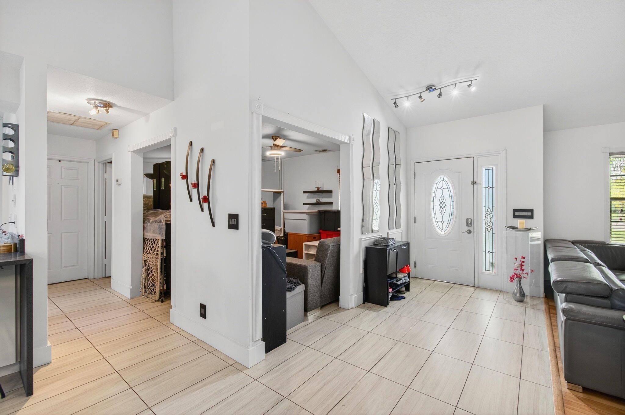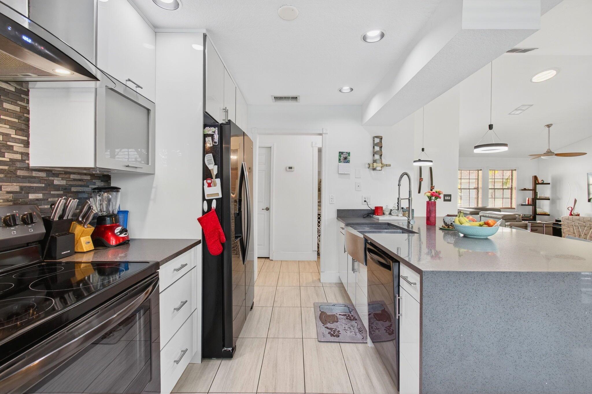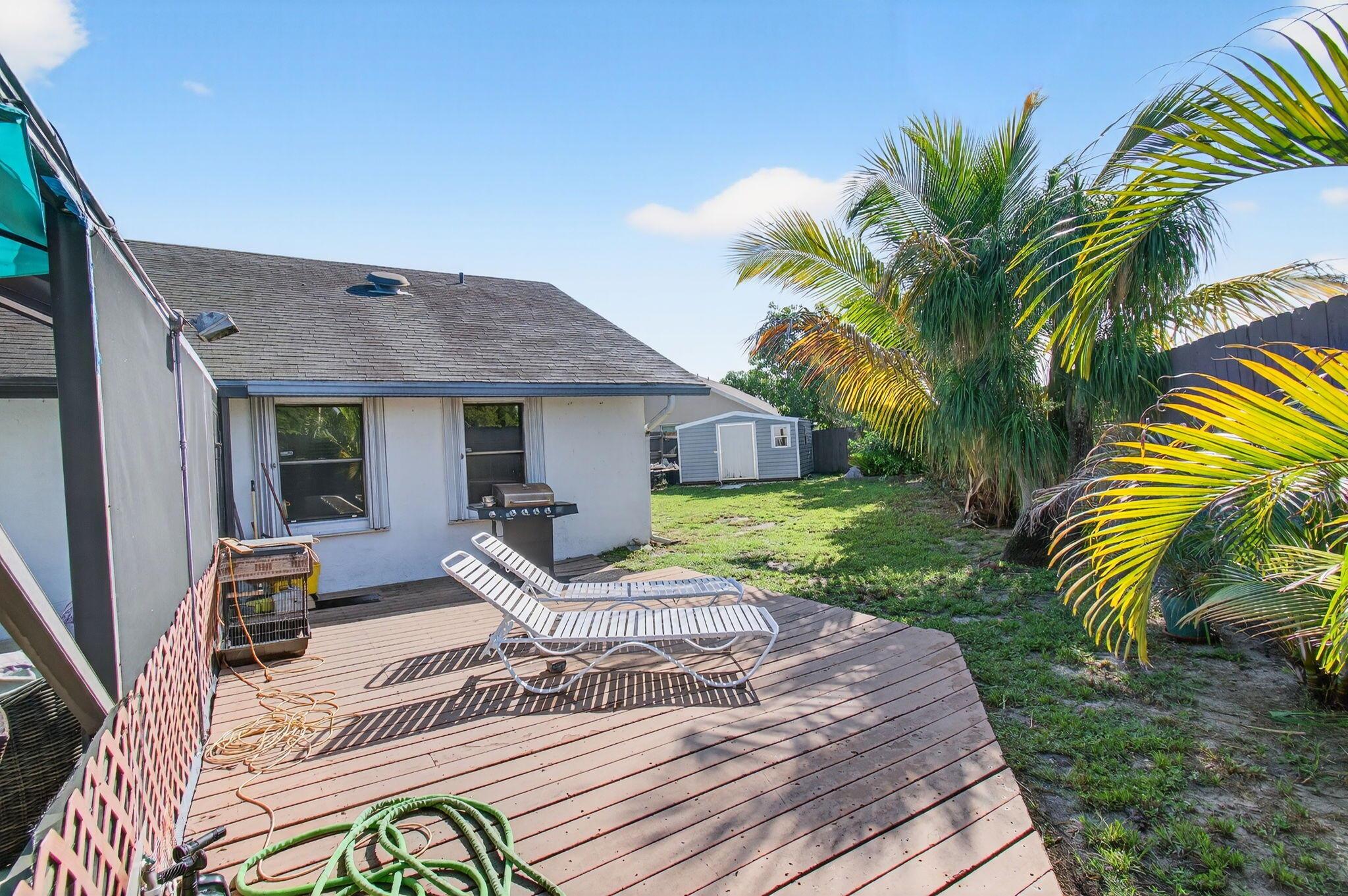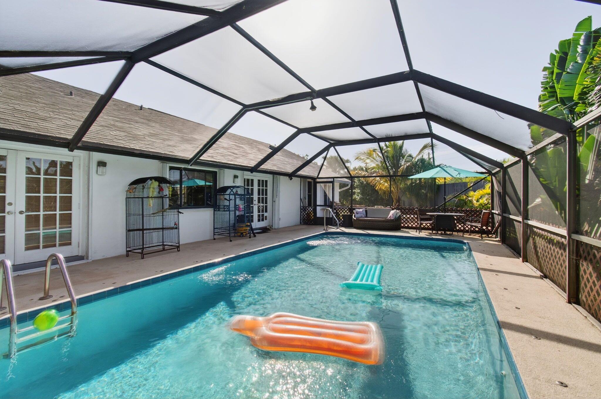 Enjoy life in this beautiful, completely remodeled pool home on a .27 acre premium lot! The spacious, open floor plan features a vaulted ceiling with a skylight providing plenty of soothing, natural light. The spacious kitchen features elegant quartz countertops, soft close cabinets with pull out drawers, and stainless steel appliances. The large fenced-in backyard is perfect for entertaining with a massive 15x30 foot screened pool and includes a large shed for extra storage. Enjoy the peace of mind of accordion shutters throughout for complete storm protection. The third and fourth bedrooms have been combined into one large bedroom but could easily be converted back to a four bedroom home.