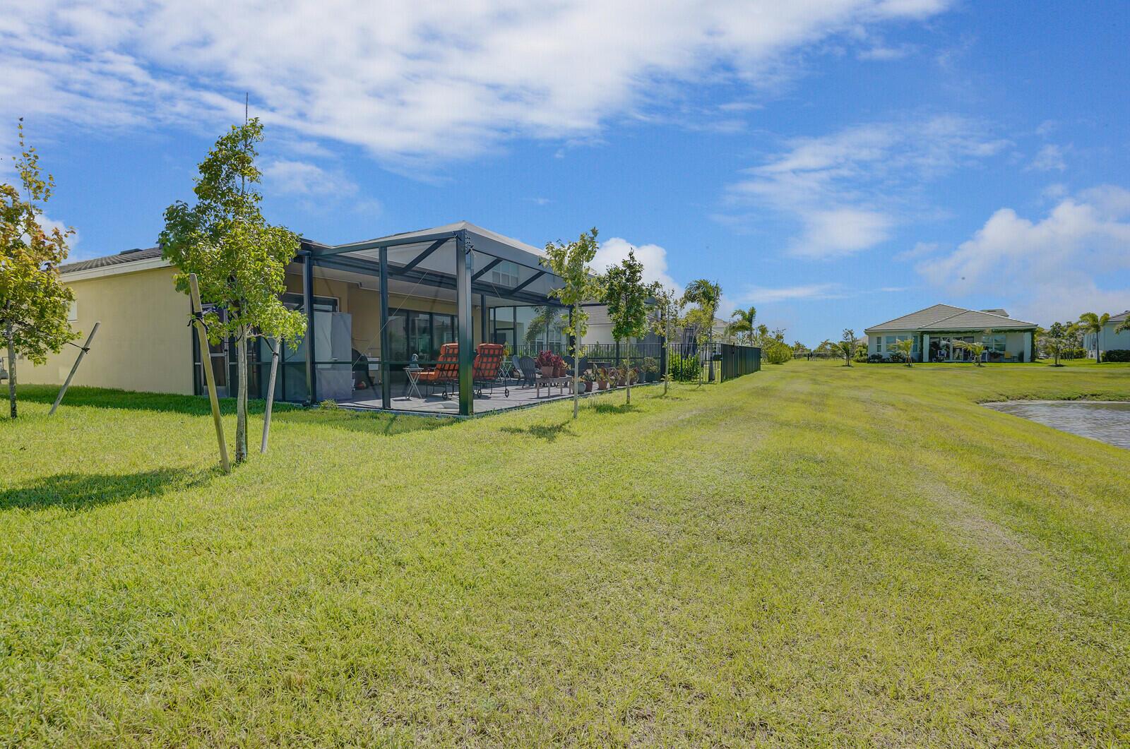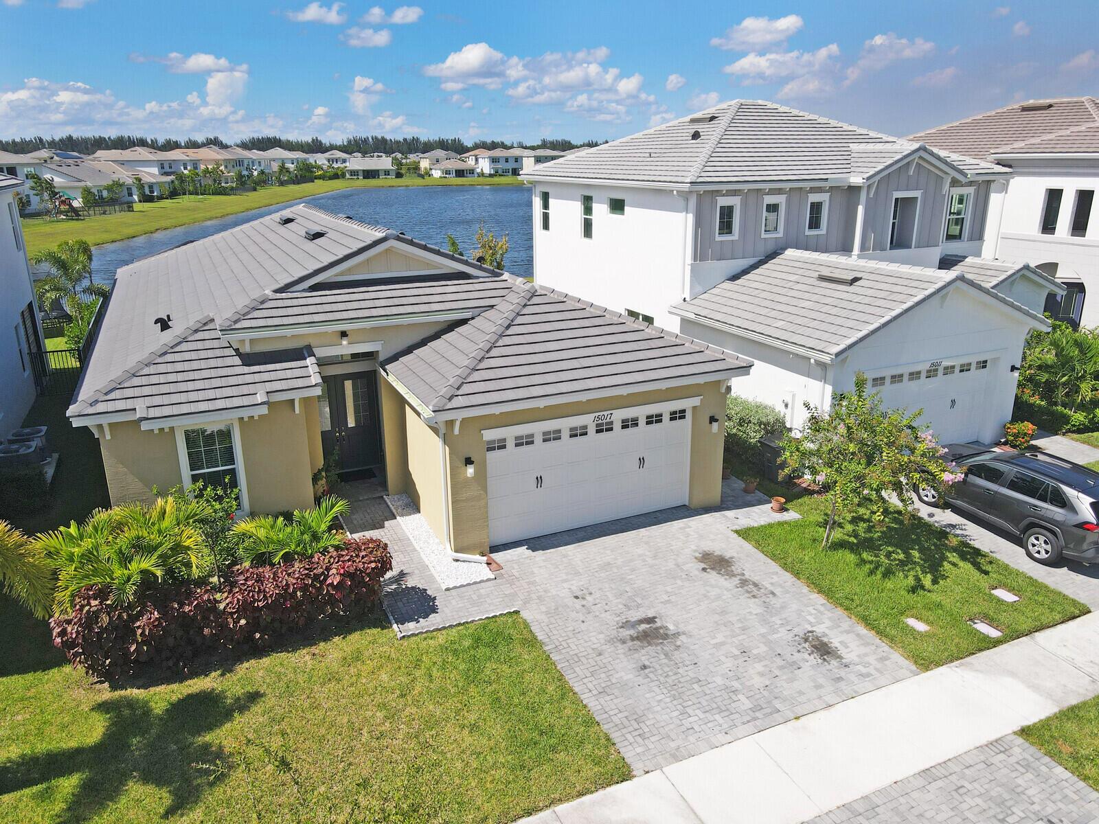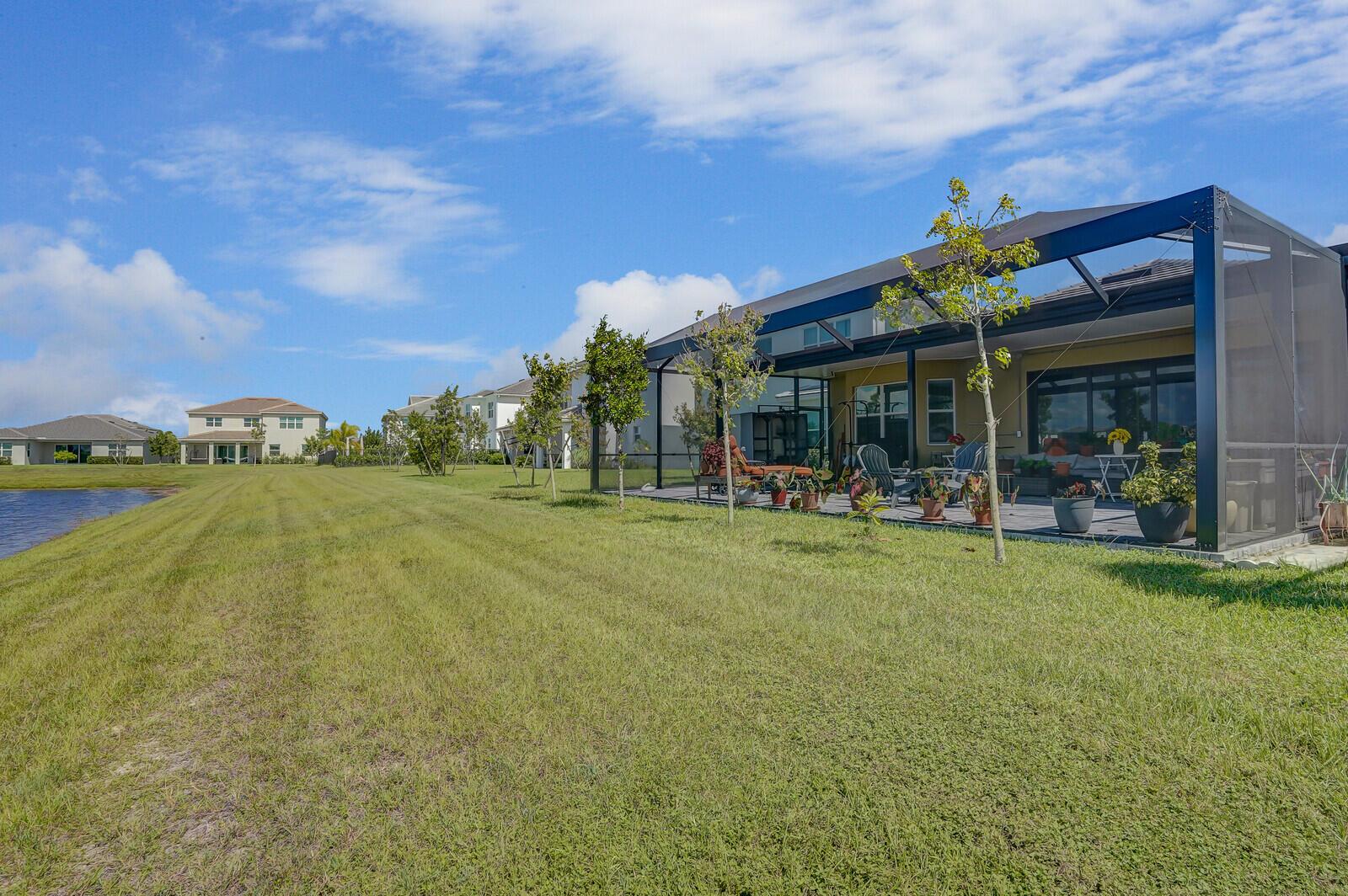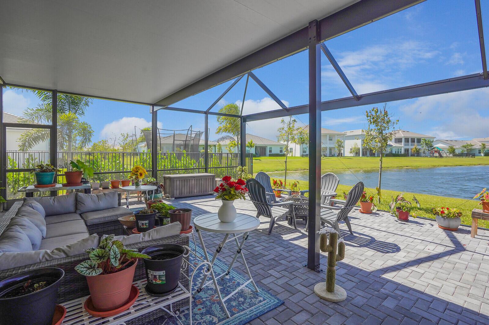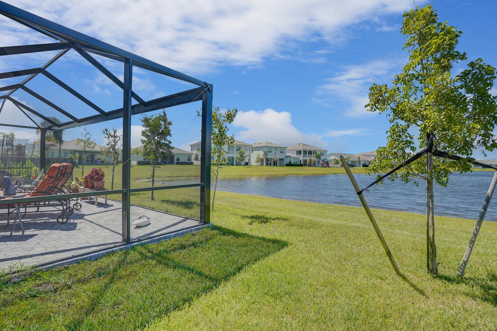 Newly built 3 bed, 3 bath waterfront home in the Orchards of Westlake, completed in 2024. After construction, the owners enhanced the property with a rare built-out kitchen extension and a large screened-in patio, creating exceptional indoor and outdoor living spaces. The extended kitchen provides abundant room for cooking, entertaining, and storage, while the expansive patio overlooks the tranquil lake and is ideal for gatherings year-round. Inside, the open floor plan flows through the living and dining areas, and the primary suite features beautiful lake views and a relaxing retreat. Secondary bedrooms and bathrooms provide comfort for family or guests. Westlake residents enjoy resort-style amenities including a lagoon pool, splash park, playgrounds, sports courts, and trails.
