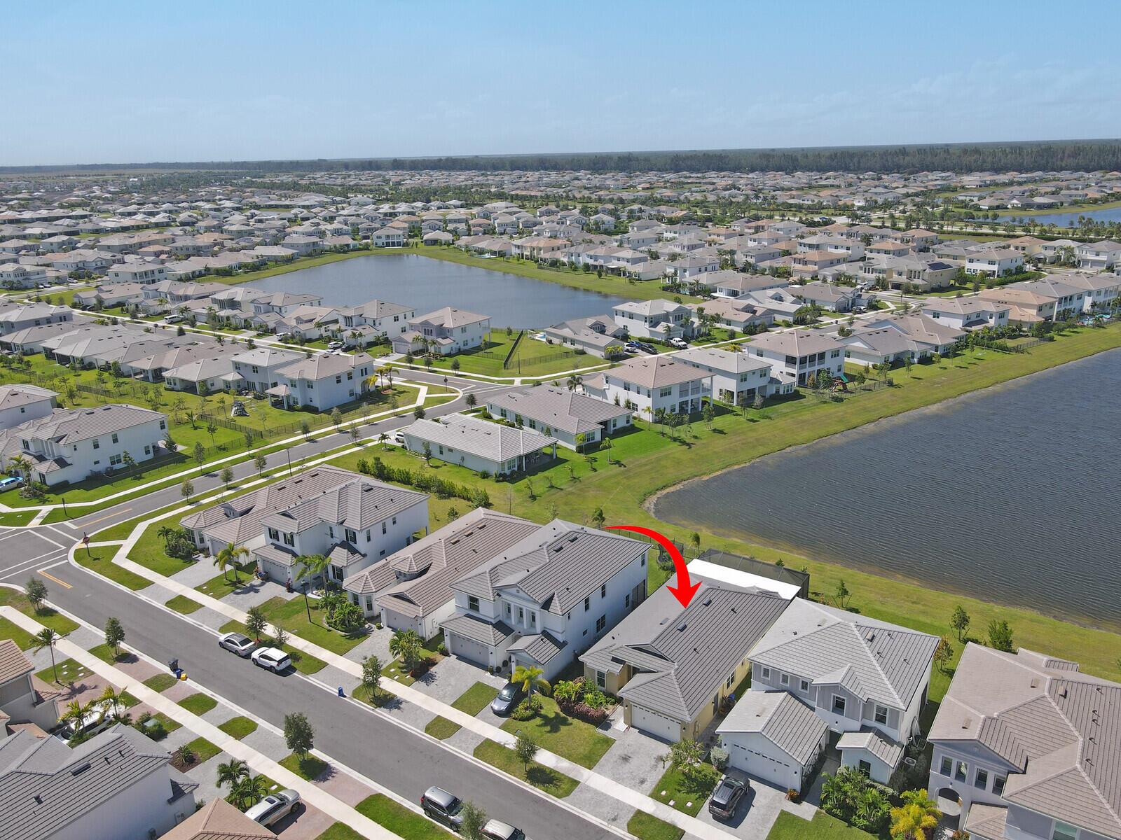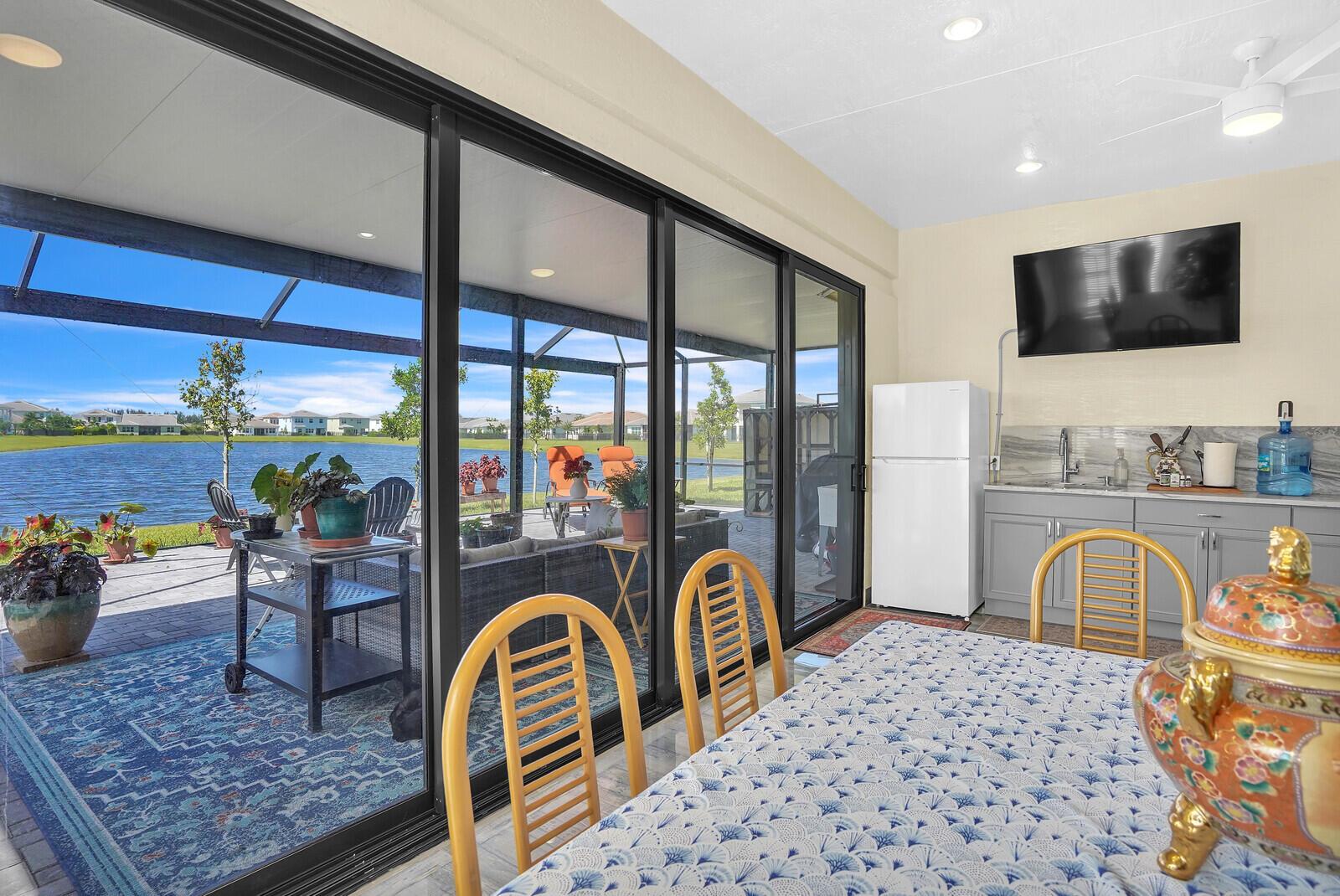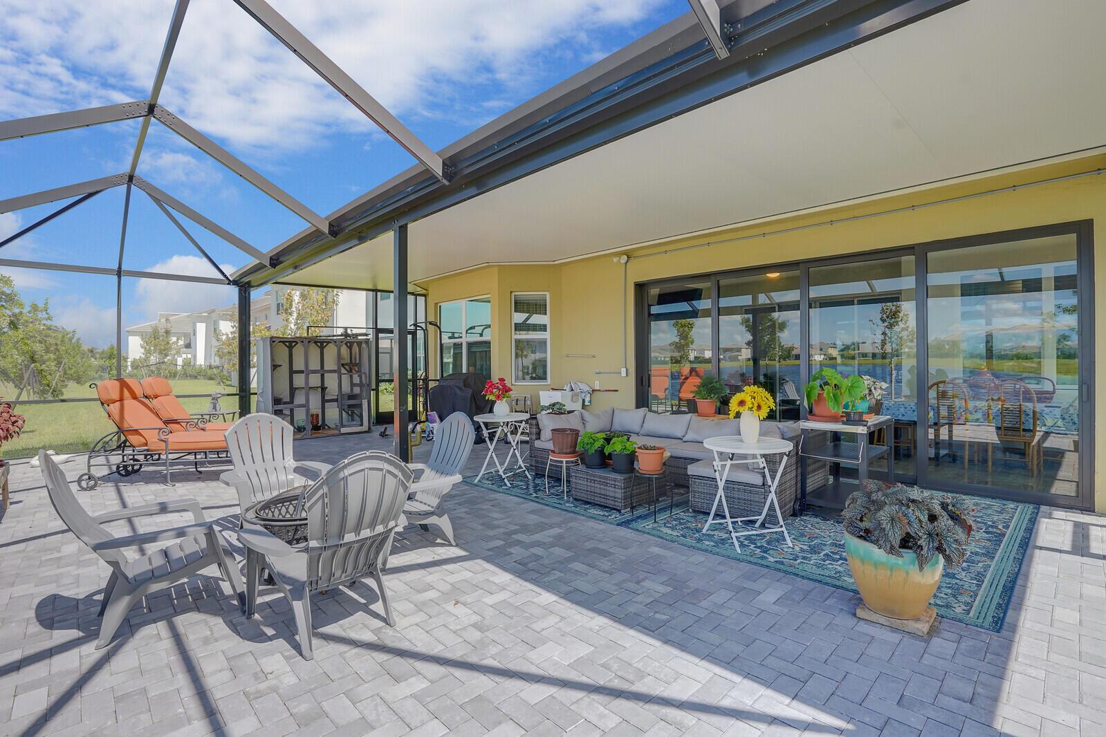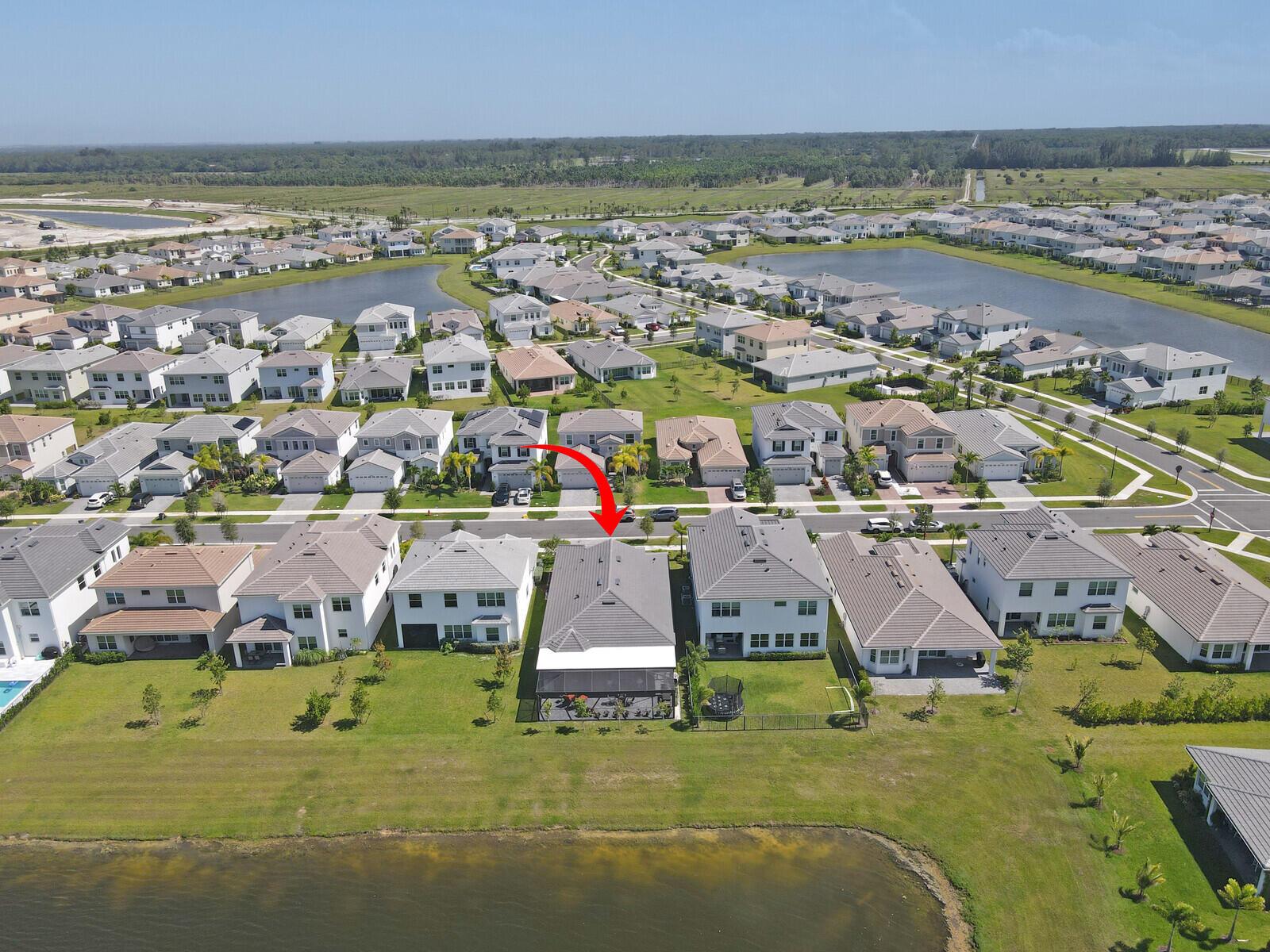 Newly built 3 bed, 3 bath waterfront home in the Orchards of Westlake, completed in 2024. After construction, the owners enhanced the property with a rare built-out kitchen extension and a large screened-in patio, creating exceptional indoor and outdoor living spaces. The extended kitchen provides abundant room for cooking, entertaining, and storage, while the expansive patio overlooks the tranquil lake and is ideal for gatherings year-round. Inside, the open floor plan flows through the living and dining areas, and the primary suite features beautiful lake views and a relaxing retreat. Secondary bedrooms and bathrooms provide comfort for family or guests. Westlake residents enjoy resort-style amenities including a lagoon pool, splash park, playgrounds, sports courts, and trails.