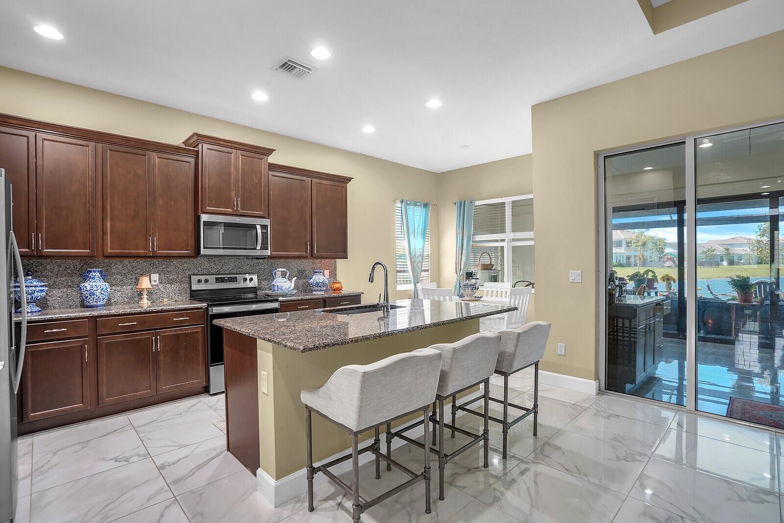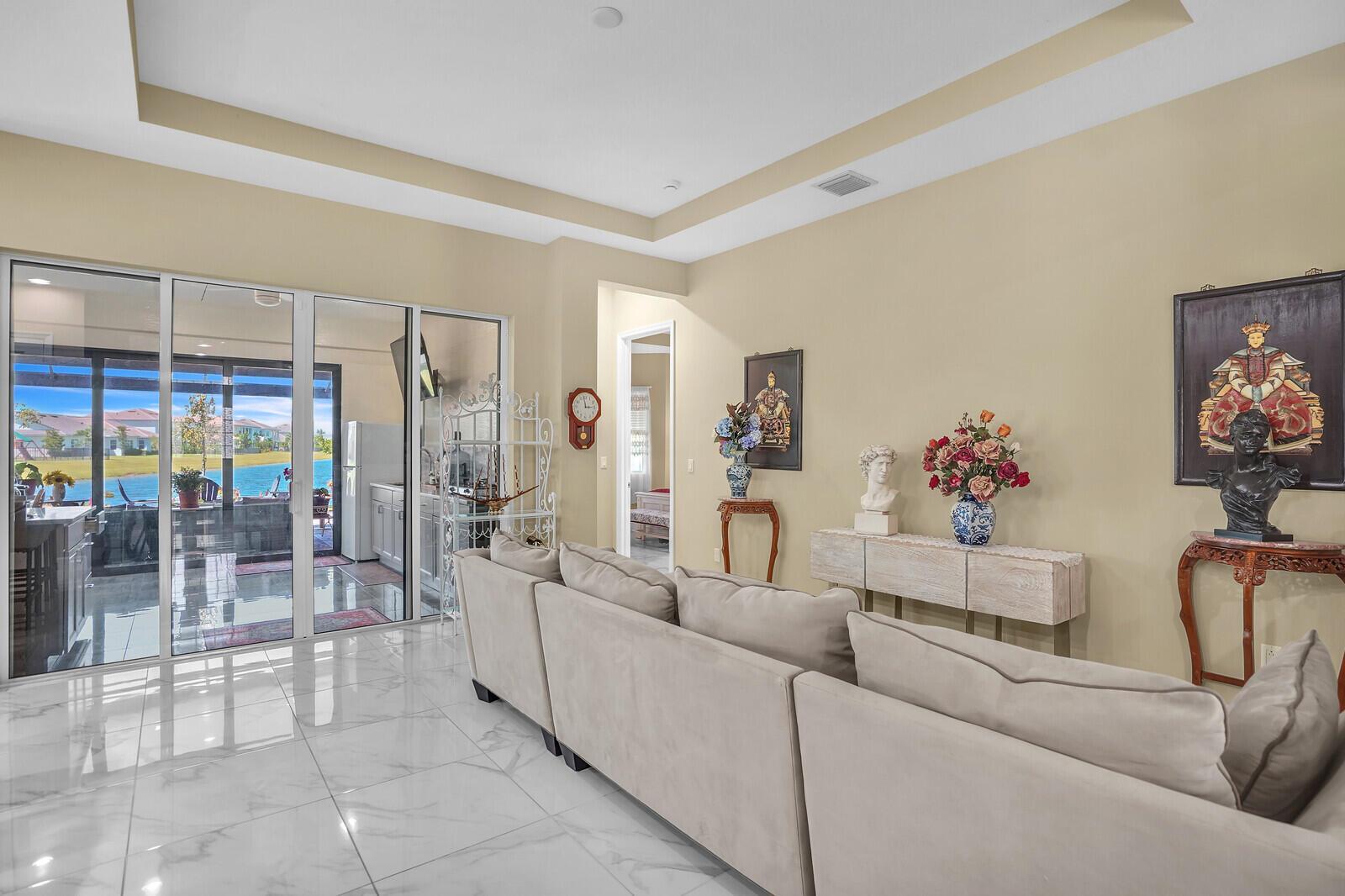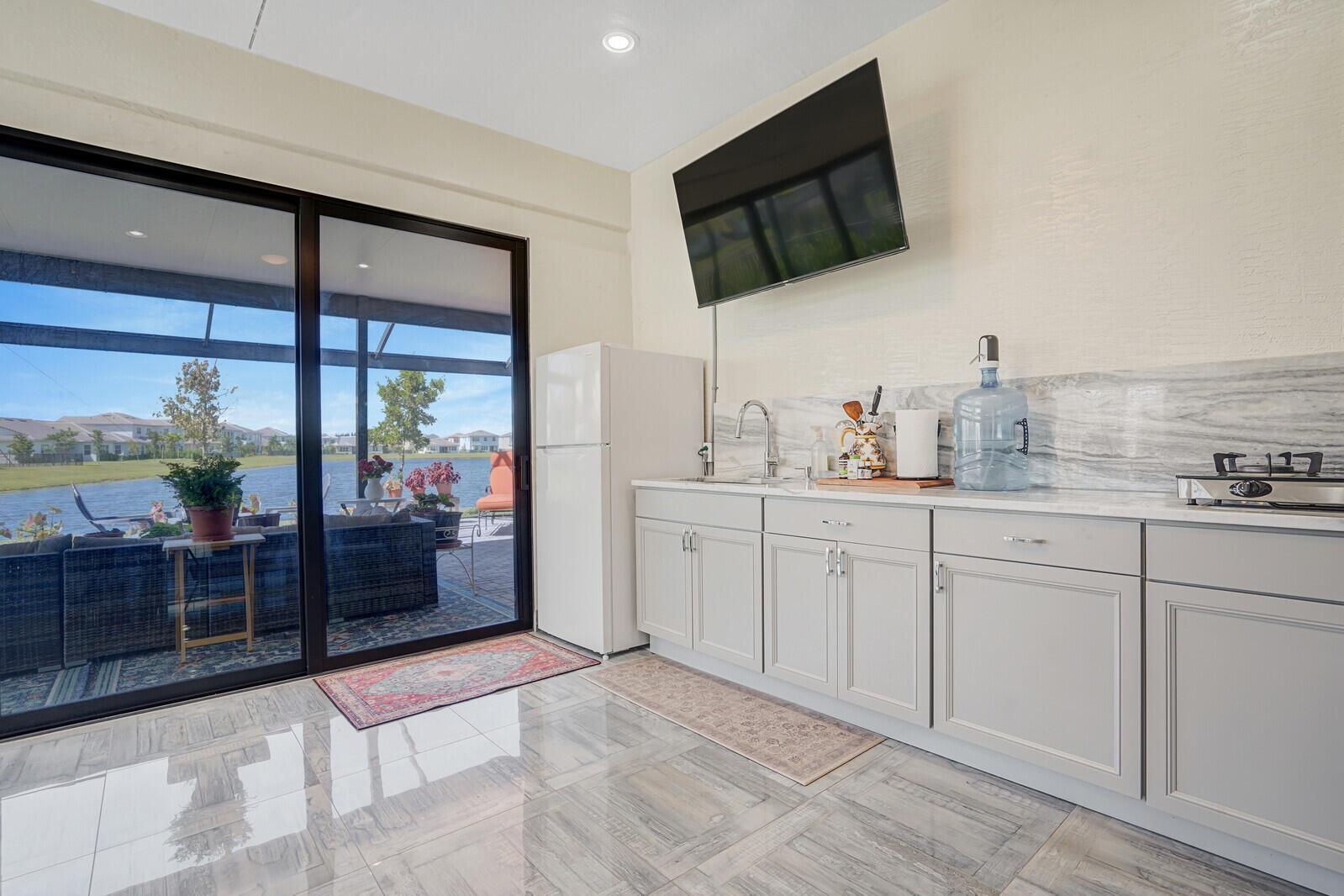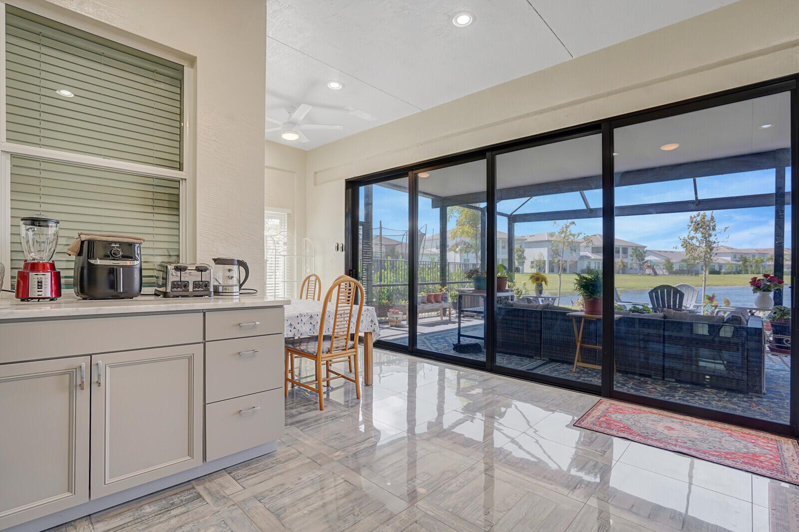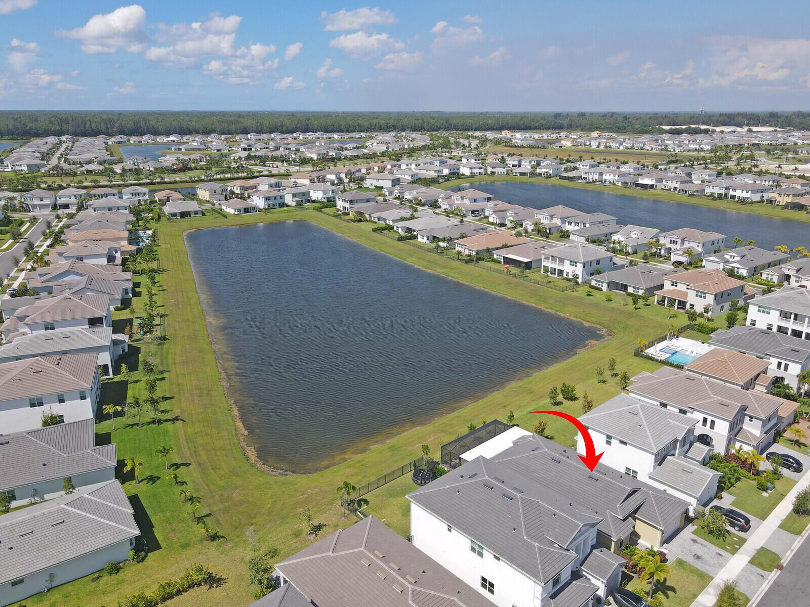 Newly built 3 bed, 3 bath waterfront home in the Orchards of Westlake, completed in 2024. After construction, the owners enhanced the property with a rare built-out kitchen extension and a large screened-in patio, creating exceptional indoor and outdoor living spaces. The extended kitchen provides abundant room for cooking, entertaining, and storage, while the expansive patio overlooks the tranquil lake and is ideal for gatherings year-round. Inside, the open floor plan flows through the living and dining areas, and the primary suite features beautiful lake views and a relaxing retreat. Secondary bedrooms and bathrooms provide comfort for family or guests. Westlake residents enjoy resort-style amenities including a lagoon pool, splash park, playgrounds, sports courts, and trails.
