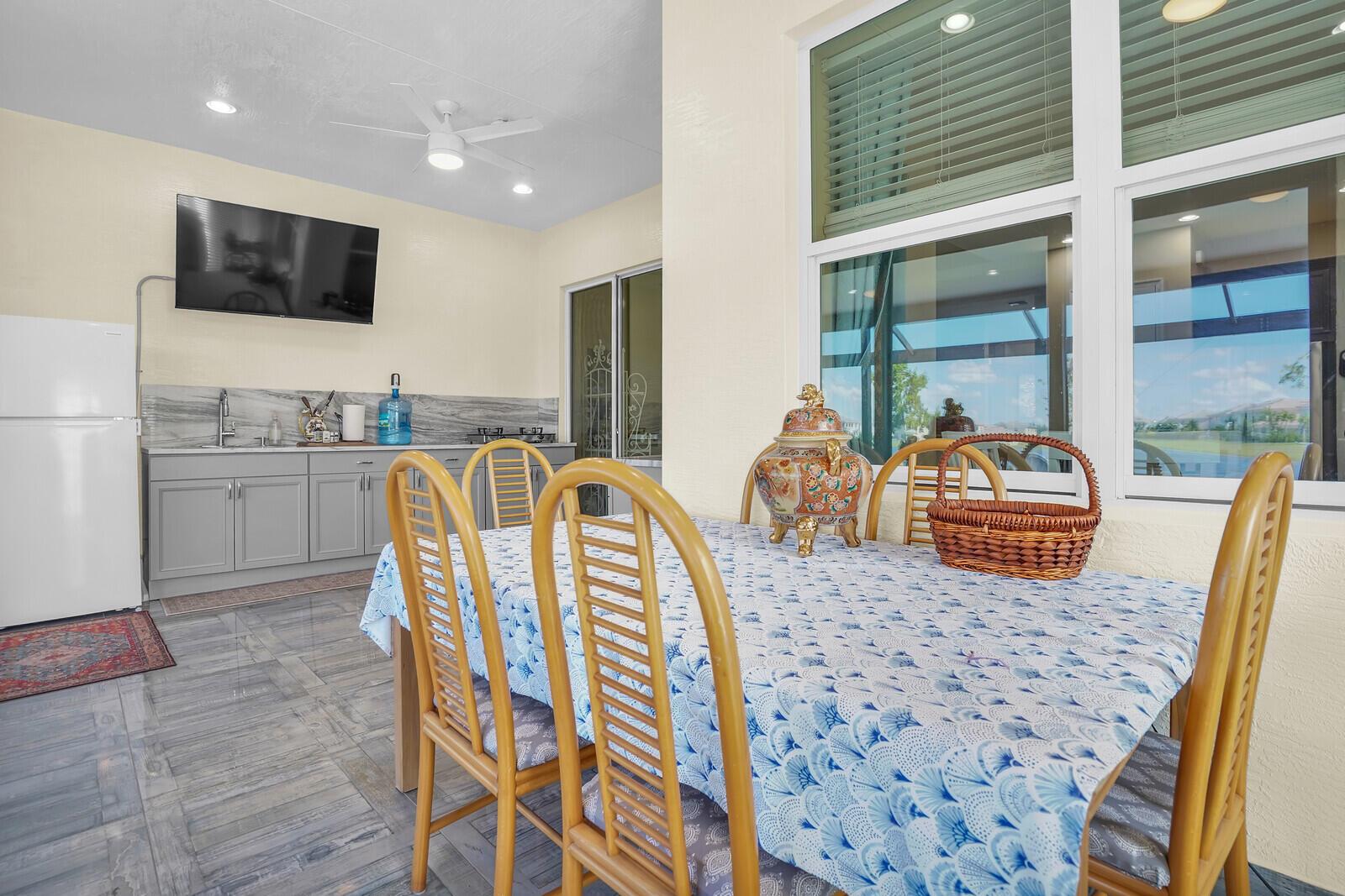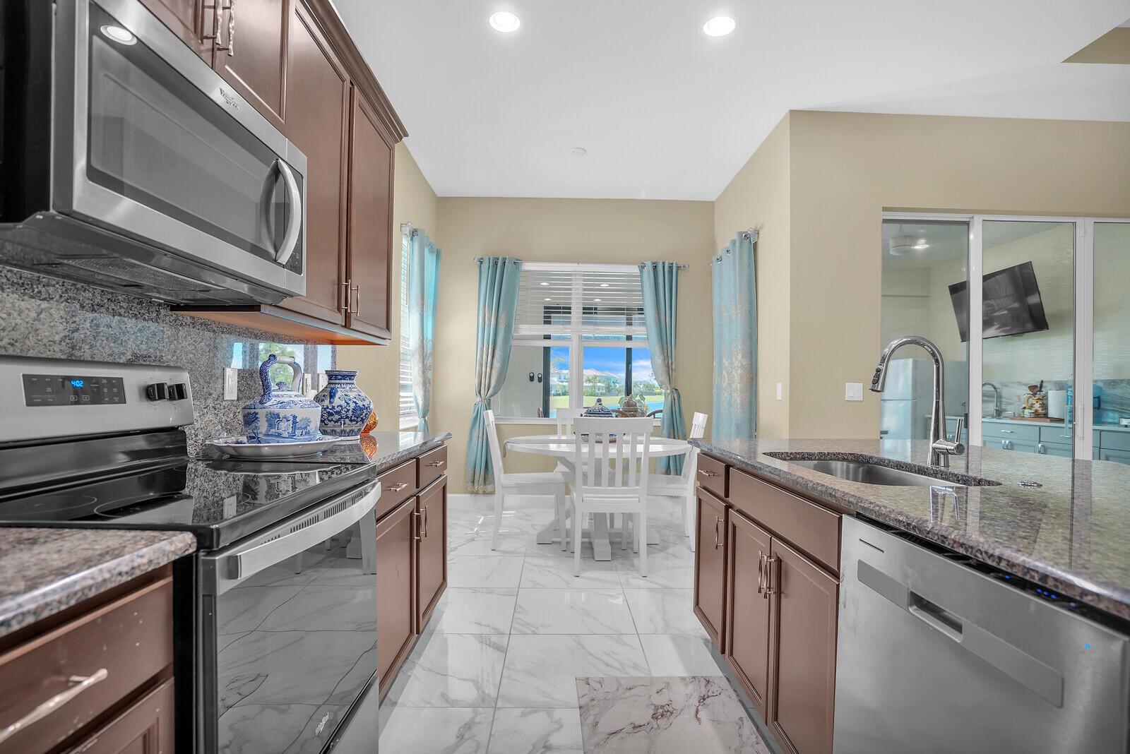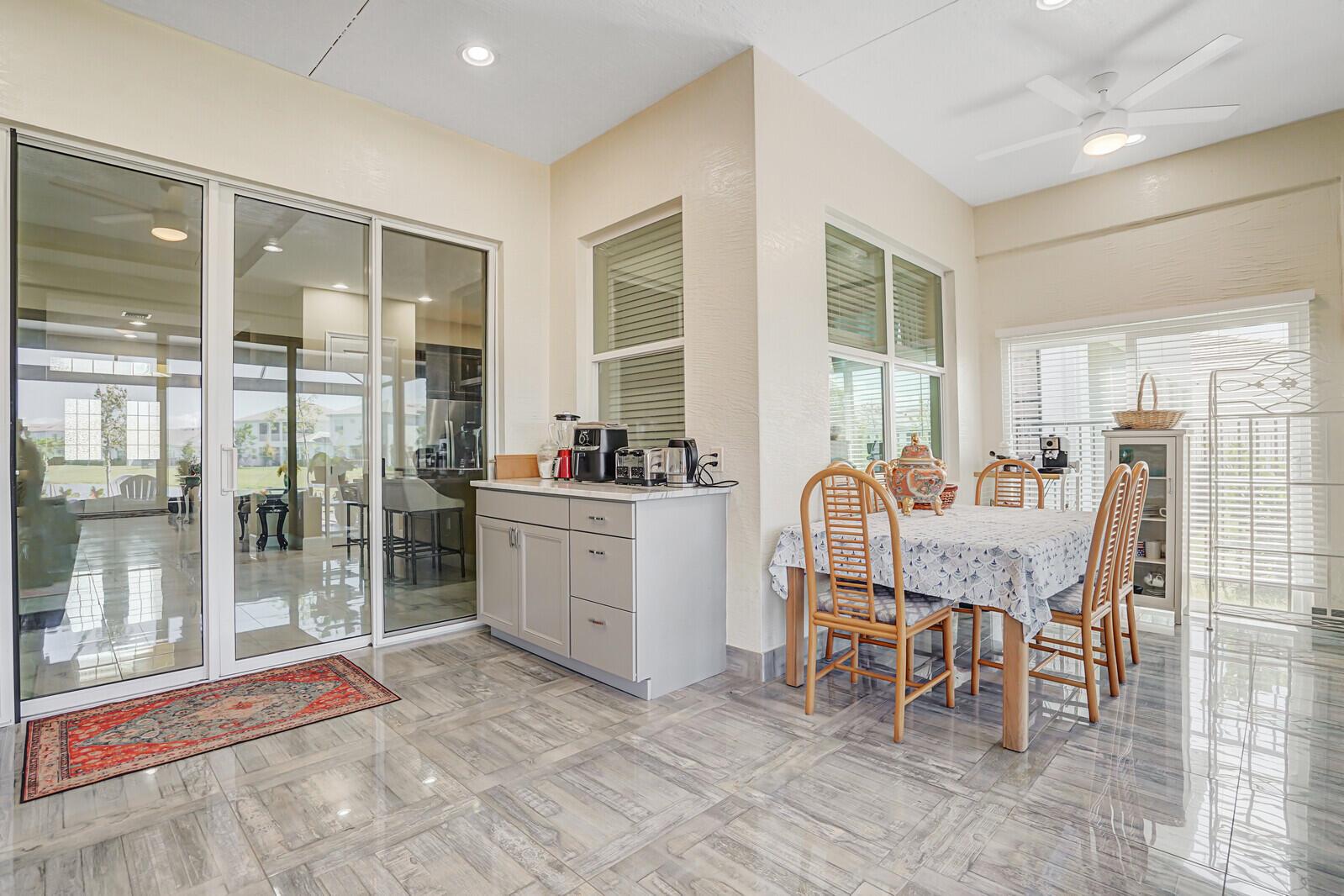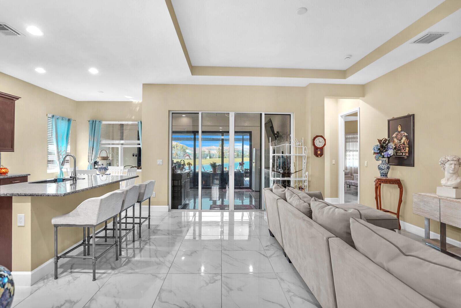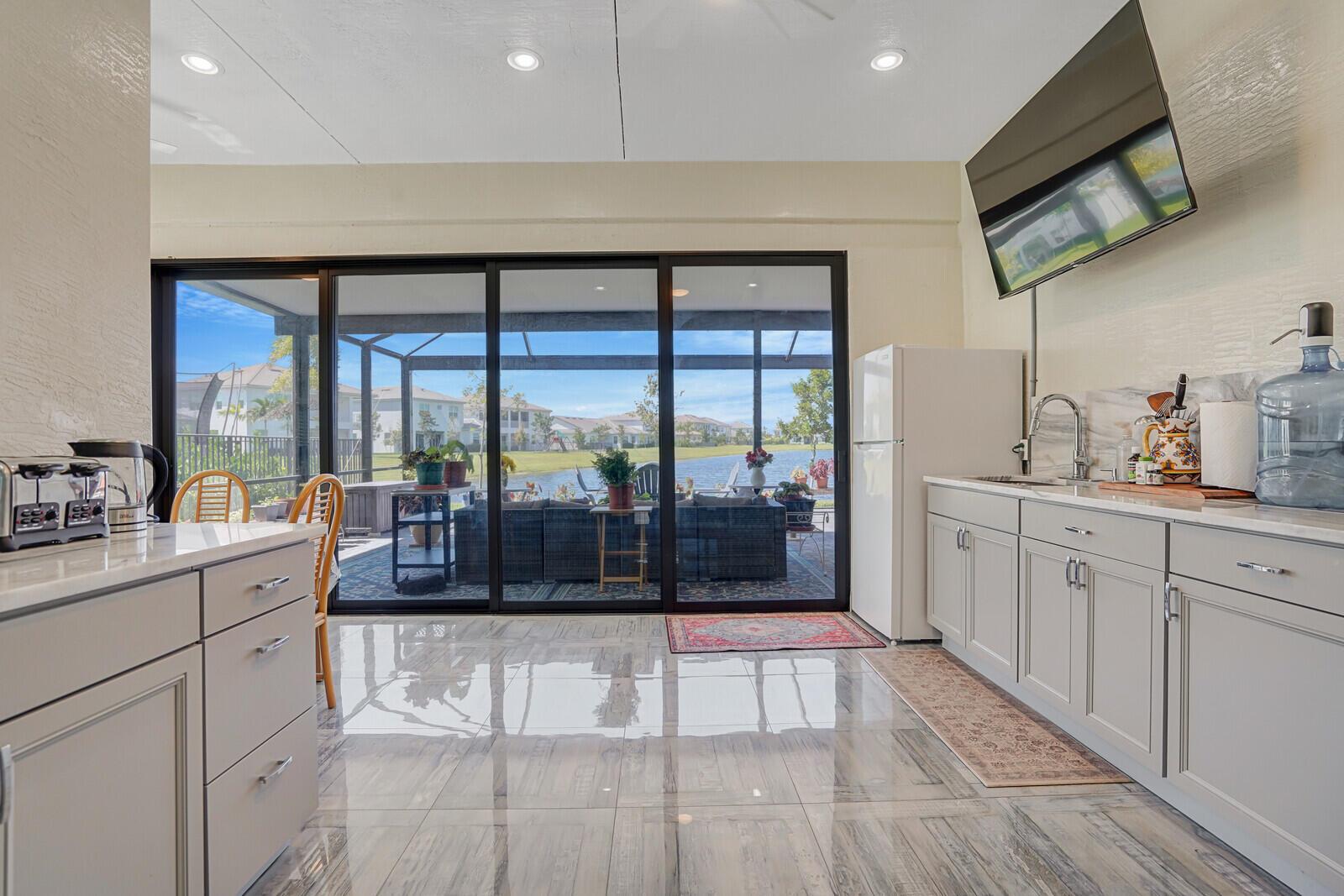 Newly built 3 bed, 3 bath waterfront home in the Orchards of Westlake, completed in 2024. After construction, the owners enhanced the property with a rare built-out kitchen extension and a large screened-in patio, creating exceptional indoor and outdoor living spaces. The extended kitchen provides abundant room for cooking, entertaining, and storage, while the expansive patio overlooks the tranquil lake and is ideal for gatherings year-round. Inside, the open floor plan flows through the living and dining areas, and the primary suite features beautiful lake views and a relaxing retreat. Secondary bedrooms and bathrooms provide comfort for family or guests. Westlake residents enjoy resort-style amenities including a lagoon pool, splash park, playgrounds, sports courts, and trails.