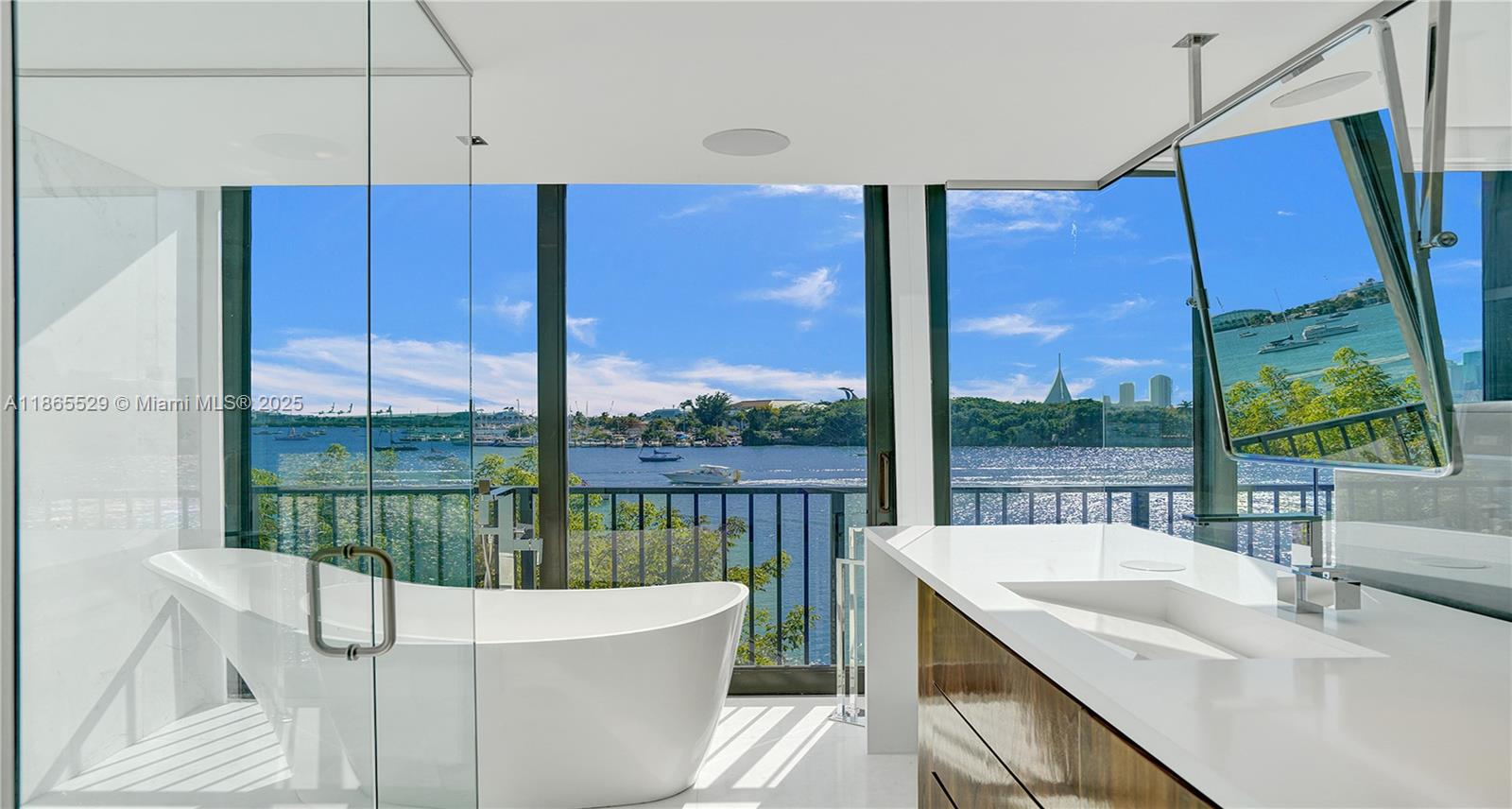 Stunning modern turnkey technology enabled home. Newly renovated. 4 bed/3.5 bath w/ 35ft high natural lit foyer. Elevator, 3 spaces/Automated & EV fast chargers. Abundance of upgrades, inc: Carrera marble flooring throughout, Museum reveal walls, Frameless doors, App controlled LED lighting, Toto toilets, Water filtration system, Waterfall vanities. Kitchen inc. 45 inch workstation sink, Dual dishwashers, Top of the line dual Bosch Wi-Fi controlled oven, Speed microwaves, Warming drawers. 4th floor rooftops w/large jacuzzi, Daybed seating, BBQ w/ Dining area, 65" outdoor TV w/ speakers. Incredible water/City views. Perfect tech home for owners who travel. Perfect tech home for owners who travel. From phone app control of lighting to the water supply!