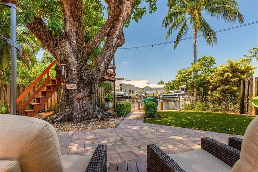 Welcome to your private tropical oasis! A waterfront pool home featuring 4 bedrooms 2 baths on a spacious 9,548 sq ft corner lot. This home offers multiple living spaces including a separate living room, dining room, & den, with an open-concept kitchen that flows seamlessly into the main living & dining areas -perfect for entertaining. Enjoy vaulted exposed beam ceilings, a built-in bar & a one-of-a-kind tree house deck ideal for morning coffee or evening cocktails with serene water views. Park your boat at your dock & enjoy the waterways with no fixed bridges Expansive patio for outdoor gatherings, & a beautiful setting inside & out. Tucked in the east corner of the neighborhood surrounded by riverfront estates, Shady Banks is just minutes to downtown, Las Olas, the Airport & the Beach