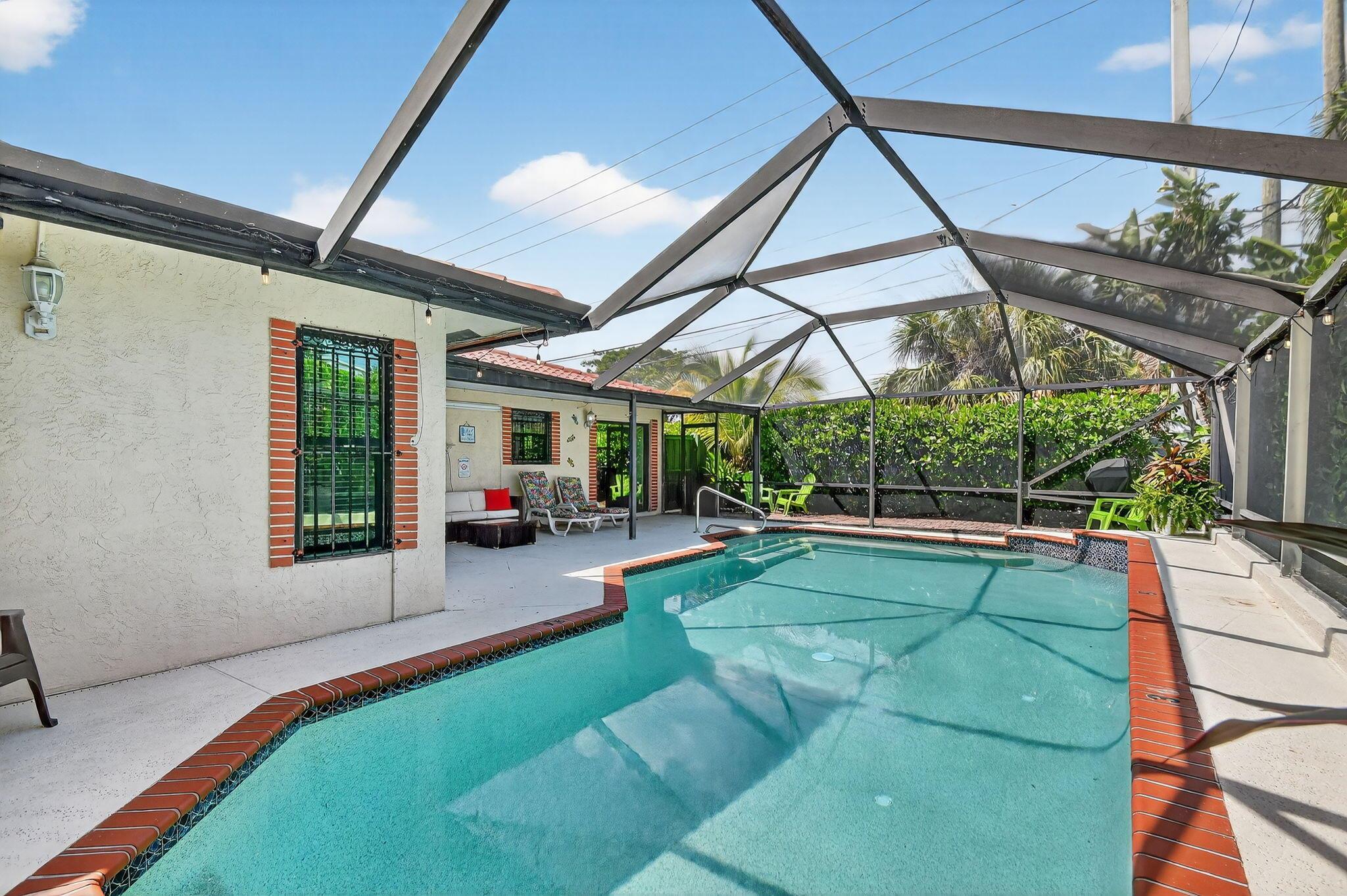 Turnkey vacation rental or family home at the end of the street, no through traffic, next to Dreher Park. A new roof (2022), new water heater, and impact windows, all tile floors home is move-in ready and built for peace of mind. The open-concept layout offers a bright and airy feel, with a large eat-in island kitchen showcasing granite countertops and stainless steel appliances. The split-bedroom floor plan ensures privacy, while the master suite includes a generous walk-in closet and a large bathroom. Sliding impact-glass doors provide direct access to the screened, heated pool w/seating, a waterfall, fenced yard clusia hedges!