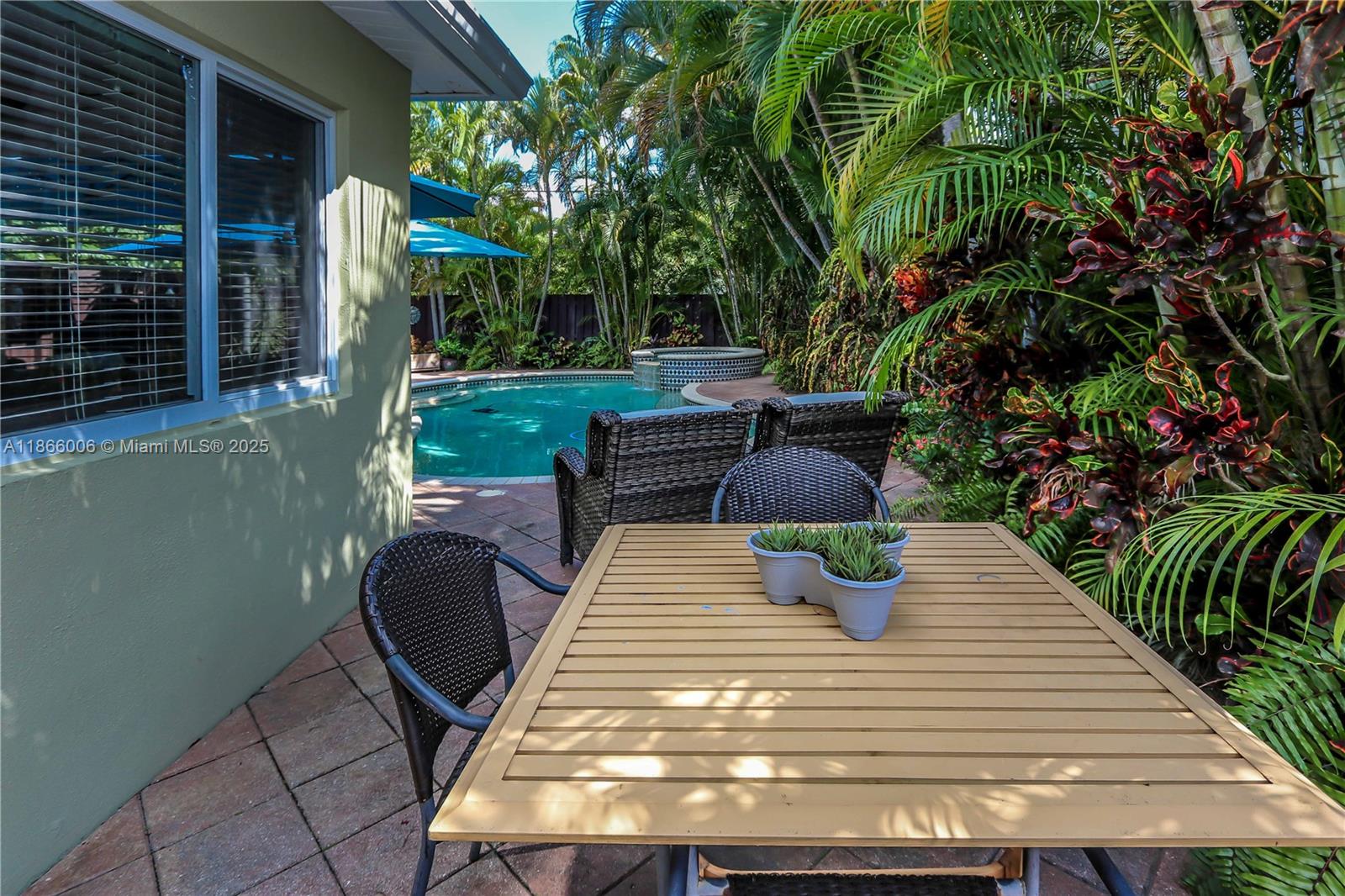 Charming 2 bed/2 bath POOL home with flexible 3rd bedroom! Prime Hollywood Lakes location. Walk to beach/town. Kitchen features white cabinets, black granite counters, newer stainless steel appliances, gas stove, and farmers sink. Spacious layout includes living room and formal dining room. Versatile family room with closet to serve as a 3rd bedroom. Updated baths with marble mosaic flooring and rain showers. Guest bath has double sink and large two-person soaking tub. Step outside to a beautiful backyard oasis with solar-heated saltwater pool with built-in jacuzzi and waterfall, perfect for entertaining. Addit'l highlights: impact windows/doors, one-car garage, double driveway in front with extra rear parking, Newer elec water heater, lush landscaping, multiple outdoor entertaining areas.