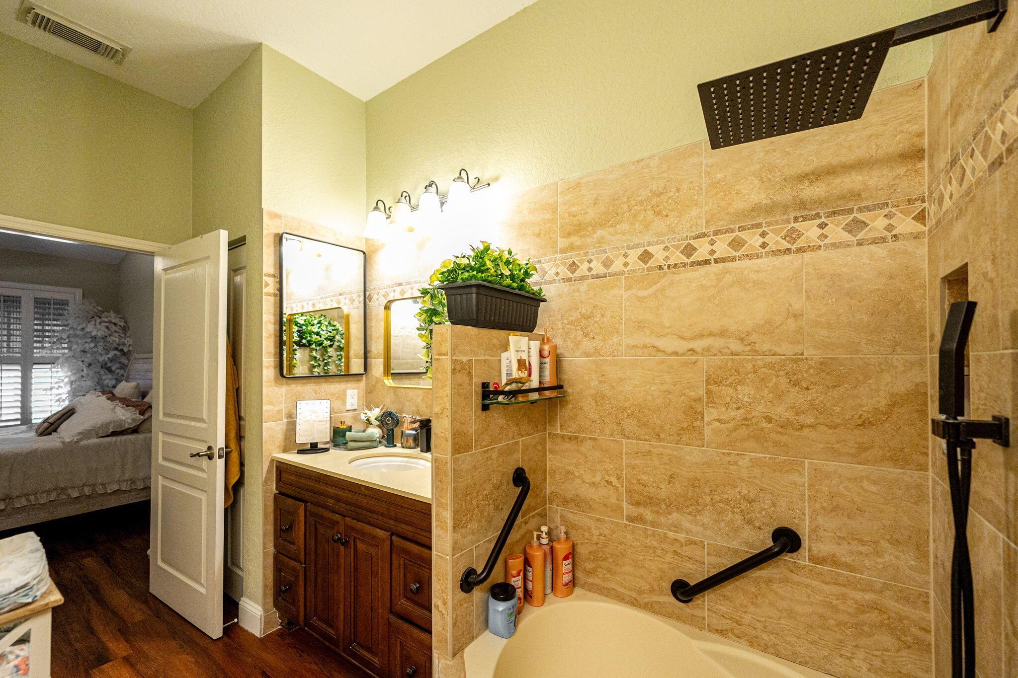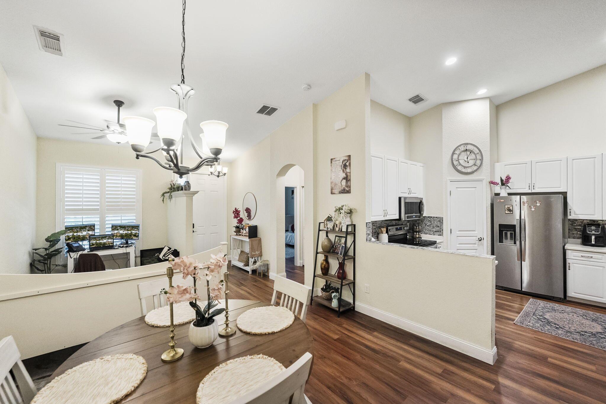 Welcome to a home that perfectly blends comfort, convenience, and style. Located just steps away from a major shopping center, top-rated restaurants, and scenic parks, this residence offers the ultimate in walkable urban living.Step inside to discover soaring vaulted ceilings that flood the space with natural light, creating an open and airy feel throughout. Enjoy peace of mind with impact glass windows, elegant plantation shutters, and updated lighting fixtures. The chef's kitchen is a dream, featuring ample storage, a spacious pantry, and modern appliances (2021) ideal for both everyday cooking and entertaining.Retreat to the generously sized master suite, complete with a walk-in closet and dual vanities for added comfort. Outside, unwind on your charming front porch.